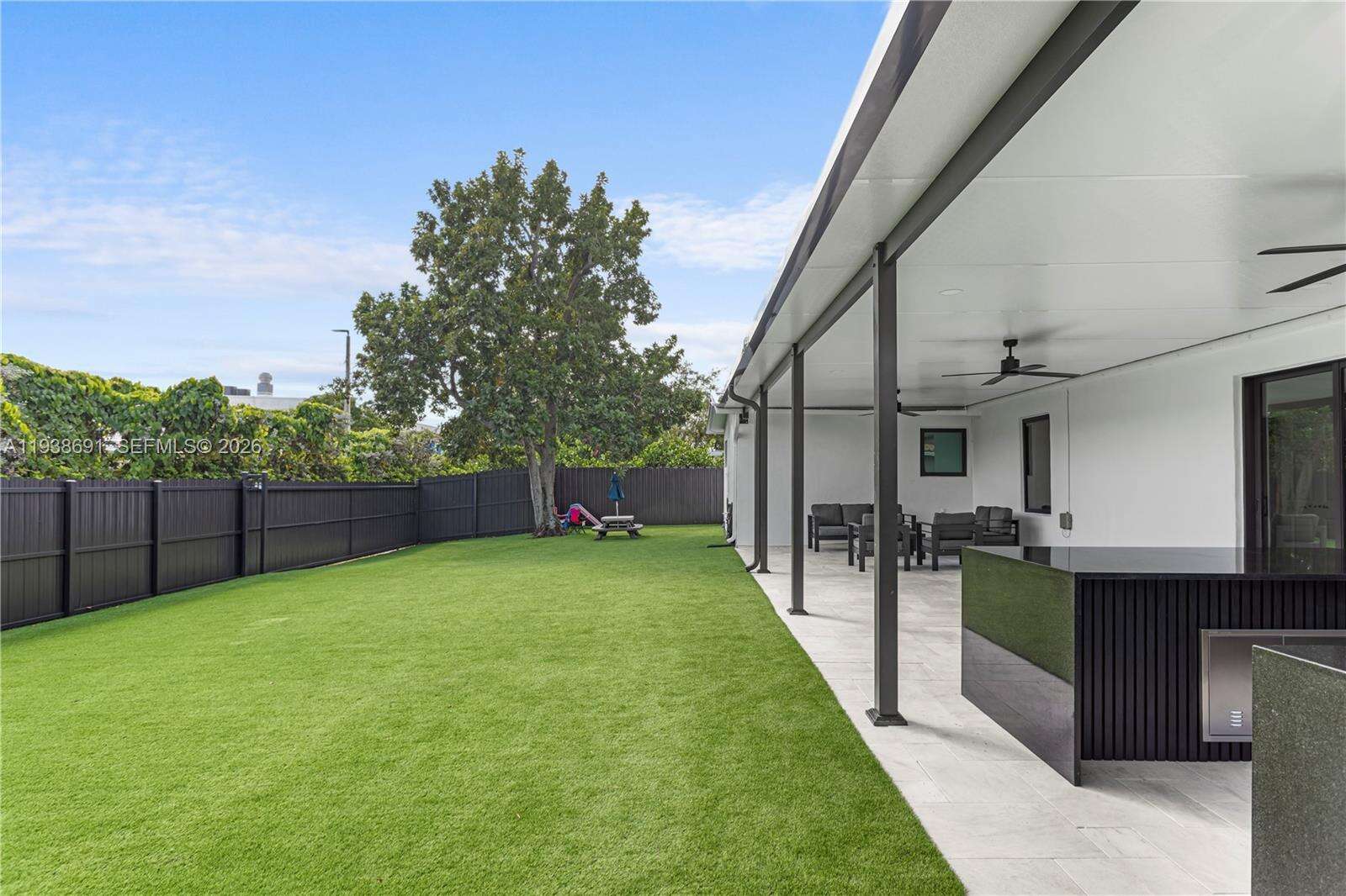 Your opportunity to own in one of South Florida’s most desirable neighborhoods — Hollywood Hills. This spacious 4-bedroom, 3-bath home offers nearly 2,300 sq. ft. of living space on an oversized lot. Brand new impact windows, an impact-rated garage door, kitchen appliances, metal roof, upgraded doors, new fencing, and a stylish pergola ensuring both peace of mind and energy efficiency. The seamless floor plan flows into spacious living and dining areas, perfect for entertaining or family gatherings. Step outside to your private backyard oasis complete with lush new turf, custom pavers, and a fully equipped outdoor kitchen featuring top-of-the-line grills and appliances. Just minutes from Downtown Hollywood, beaches, parks, major highways, and A-rated schools. *Can also be sold furnished.*pool in picture is virtual/rendering*