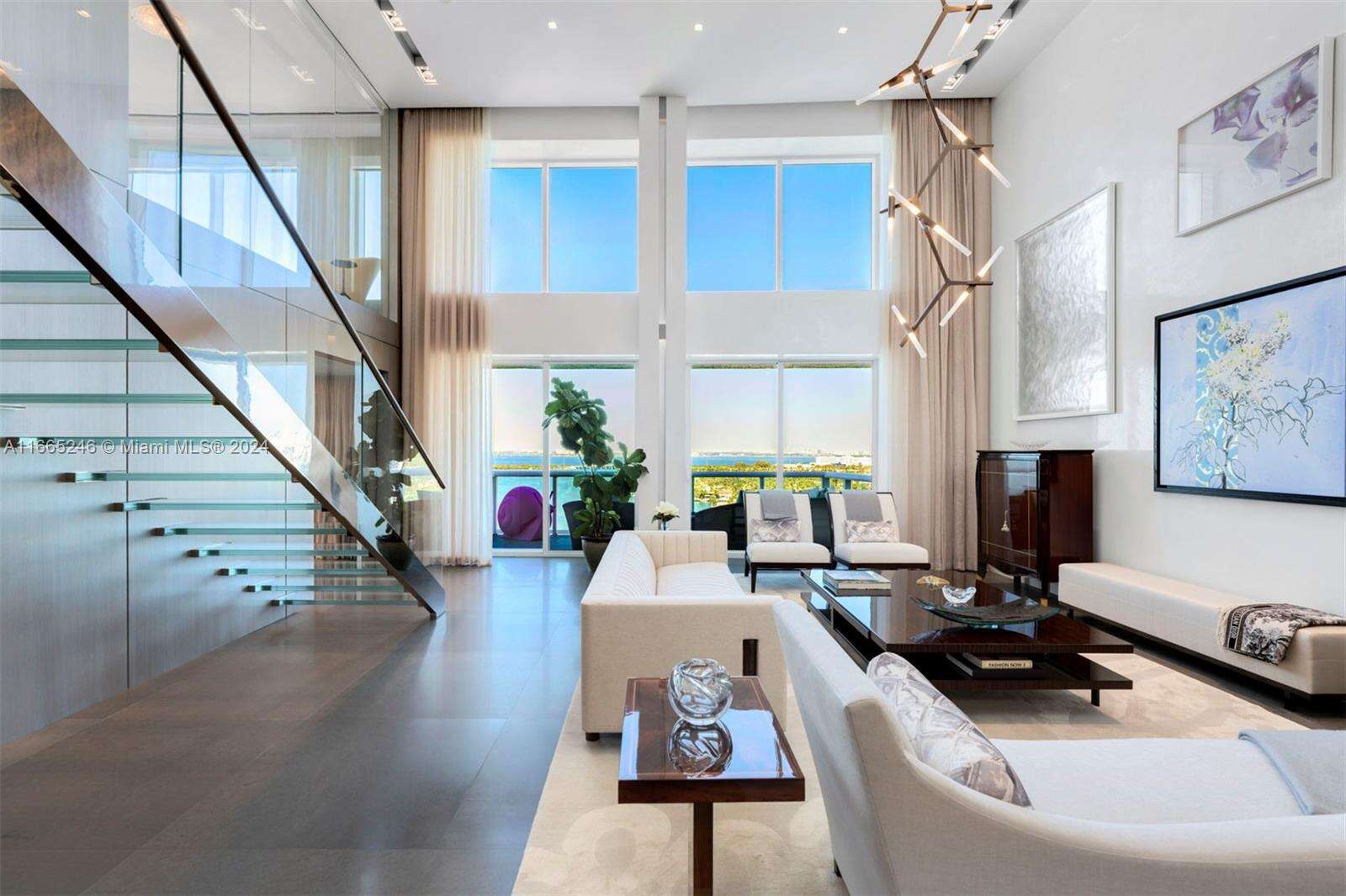 No expense was spared in this one-of-a kind 2 story home in the sky. Enjoy panoramic views of Biscayne Bay, downtown Miami & the ocean from this exquisitely designed & meticulously combined double PH. This 6BR/6BA 6,422sf masterpiece boasts top of the line finishes, 22’ ceilings, Savant smart home system, Kreon lighting, breathtaking glass staircase, open kitchen w/ custom cabinetry, Balsatina stone & wood flooring, 2 master suites w/ morning kitchens, Pneumatic elevator & 5 parking spaces. This exceptional residence offers the ultimate indoor-outdoor living w/3 private terraces & floor to ceiling windows throughout. Luxurious boutique building w/unrivaled amenities including brand new resort style pool w/outdoor kitchen, state of the art fitness center, tennis court & 24/7concierge.