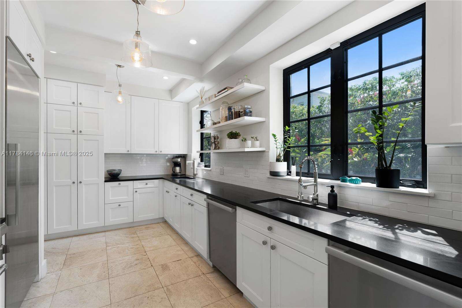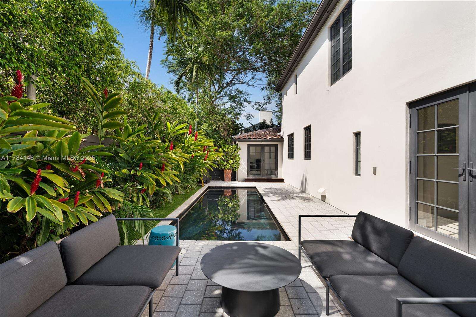 Timeless elegance meets modern comfort in this beautiful 4-bedroom, 4.5-bath two-story residence located on a corner lot in Miami’s exclusive Venetian Islands. Gated and surrounded by lush landscaping, this home offers privacy and charm with classic Mediterranean architecture. Inside, enjoy a light-filled living area, formal dining room, and chef’s kitchen with black stone counters and custom cabinetry. French doors open to a tropical backyard retreat with a sleek lap pool and lounge area—perfect for entertaining. Upstairs, the spacious primary suite features hardwood floors and garden views. A two-car garage and generous driveway provide ample parking. Minutes from Sunset Harbour, the Design District, and the beach.