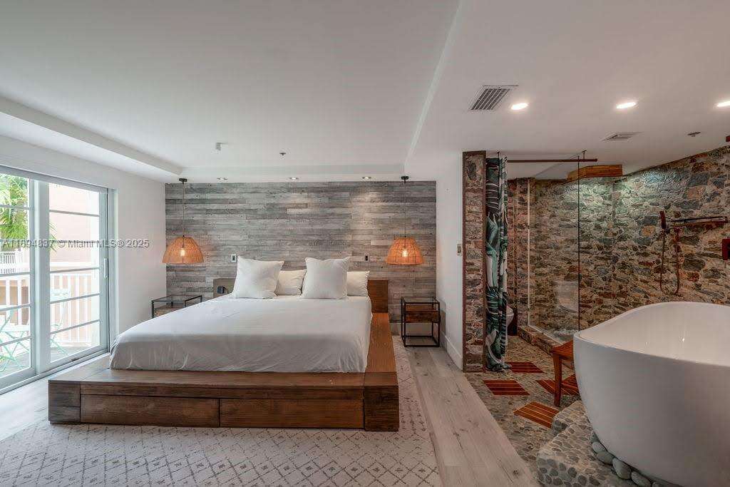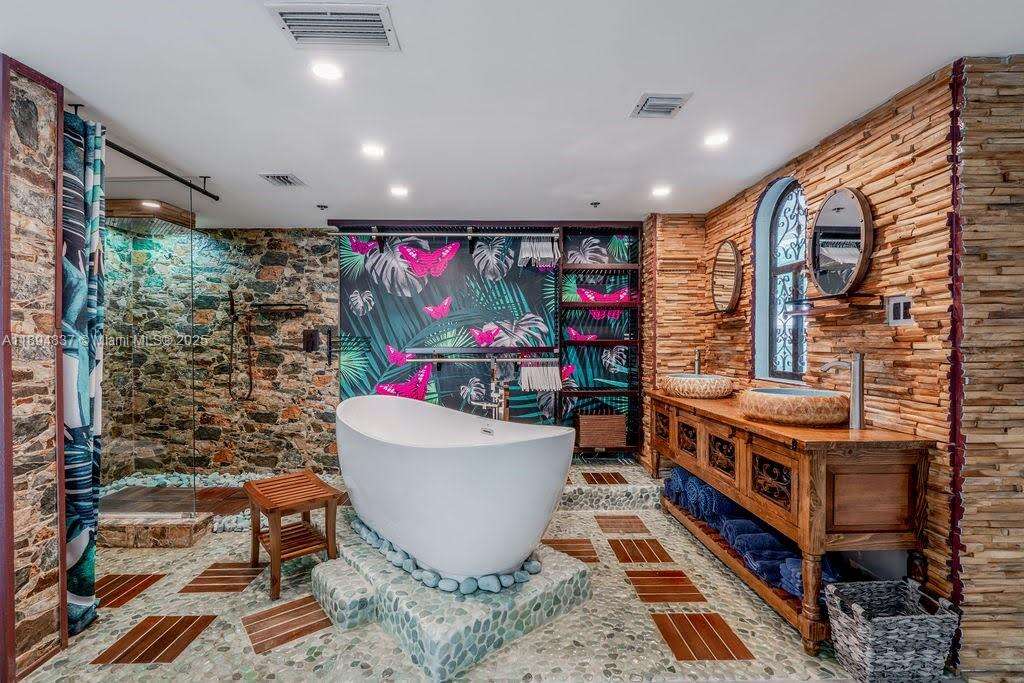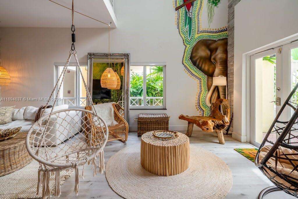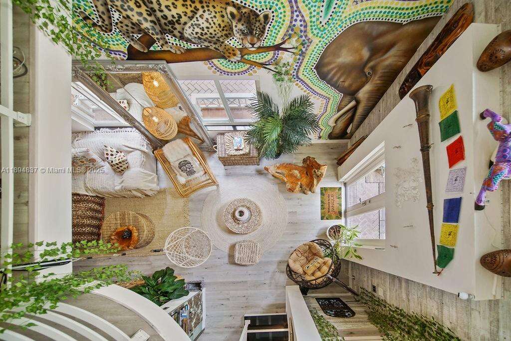 A RARE GEM THE JUNGLE TOWNHOUSE w/ PRIVATE 2 CAR GARAGE at The Courts in South Of Fifth, Miami’s #1 neighborhood. 2285 Square feet total w/ 3 full beds/3 full baths & half bath, office, & formal dining room. Feel like you are a Tulum Chic RESORT in this BOHO CHIC TULUM masterpiece! Light wood floors throughout, hand painted mural on 20 ft ceilings living room, custom designed Master bedroom w/ open bathroom with soaking bathtub & shower. PRIVATE separate entrance street level and a private 2 car garage w/ plenty of storage and outdoor terrace space. Home feeling w/ amenities of condo, 24 hour gated security, 1 Olympic sized pool, 1 pool at gym with sauna, party room, lavish grounds landscaping. Vacant & easy to show! All assessments have been paid off by seller