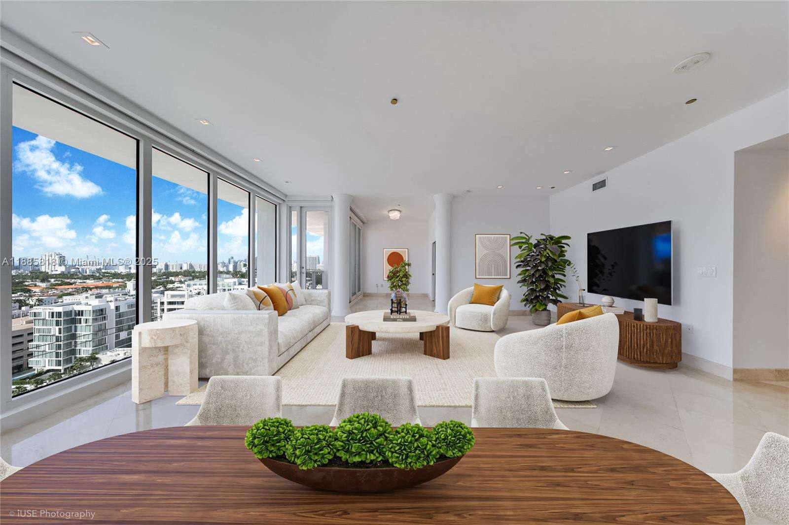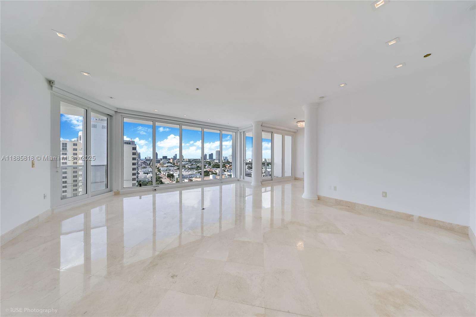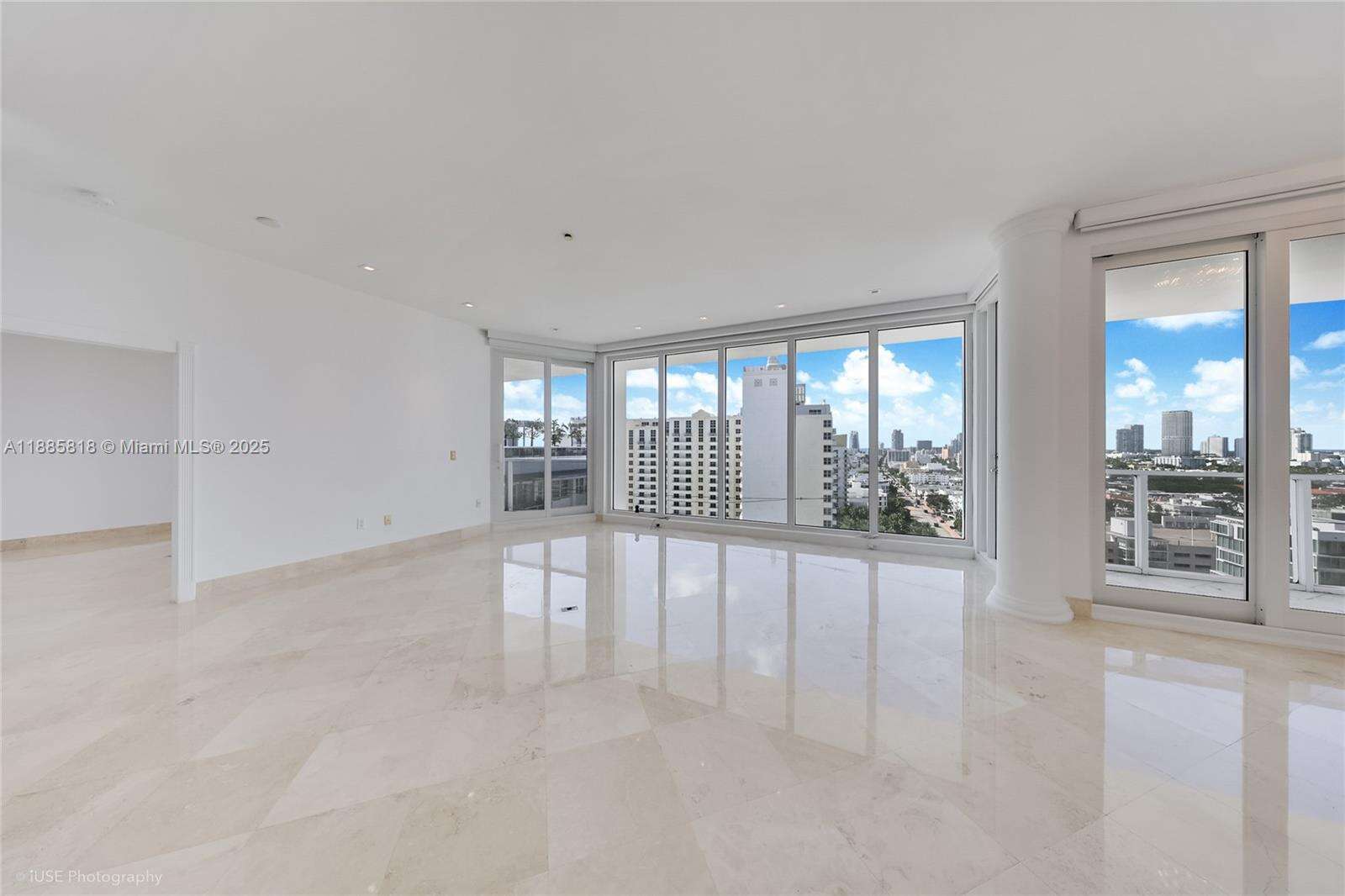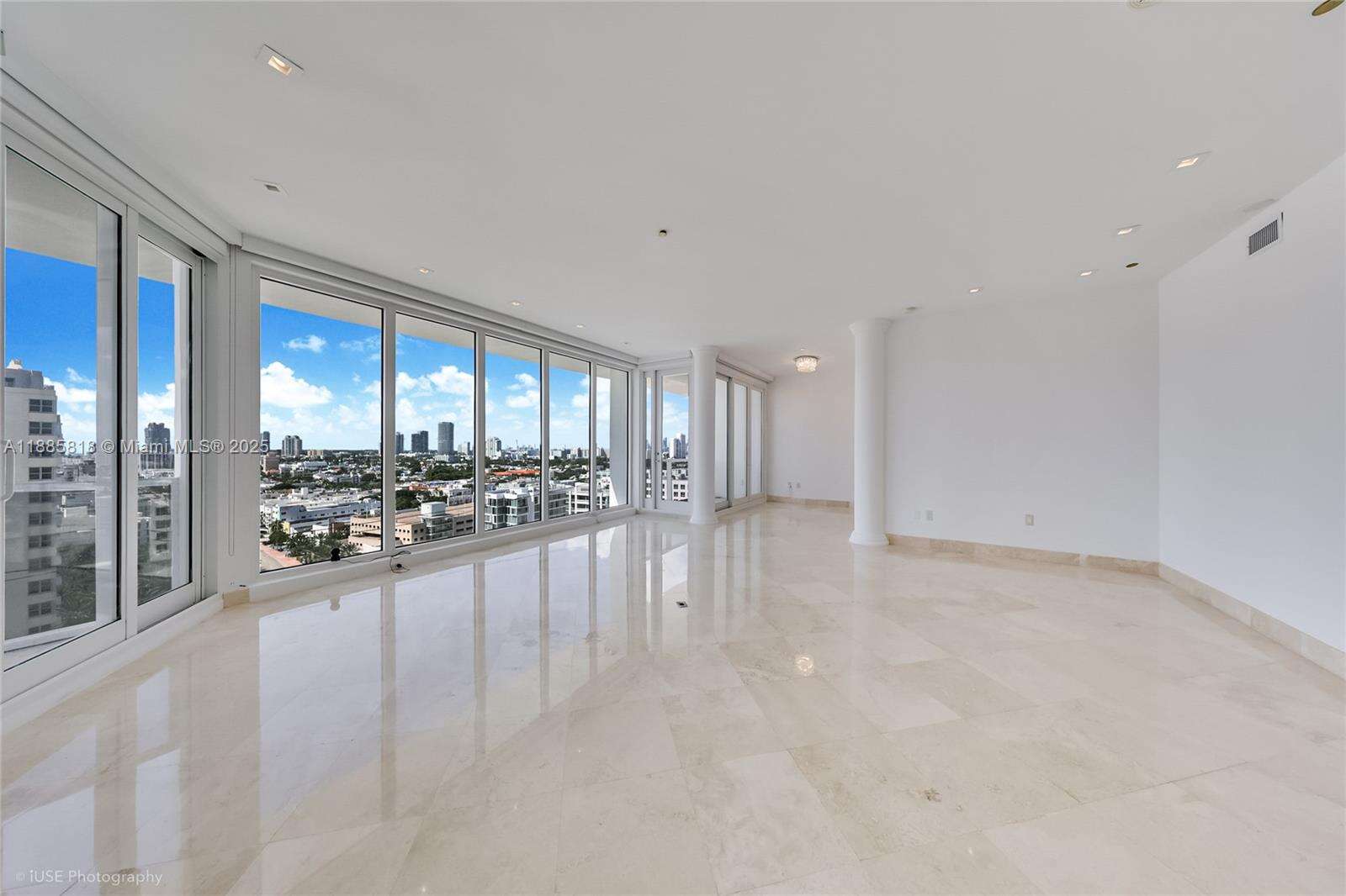 Exclusive remodeled oceanfront double doors penthouse in South Beach's best location! Right across from The Ritz Carlton Residences pre-selling at $4MM. Modern masterpiece with double-height ceilings, sliding impact glass doors & windows. Stunning Miami skyline views. 2 private balconies, 2 parking spaces, polished marble floors, freshly painted in white. Large Walk-in closet. The 2nd bedroom suite has been changed to a home office/guest room. HOA includes all utilities. Amenities: Heated pool, direct beach access, children's play room, game room, library, fitness center, 24 hrs front desk & security, bike storage, etc. Steps to shops, restaurants and entertainment. Don't miss this opportunity right in this exciting redevelopment moment of Lincoln Rd. Call now for an exclusive showing!