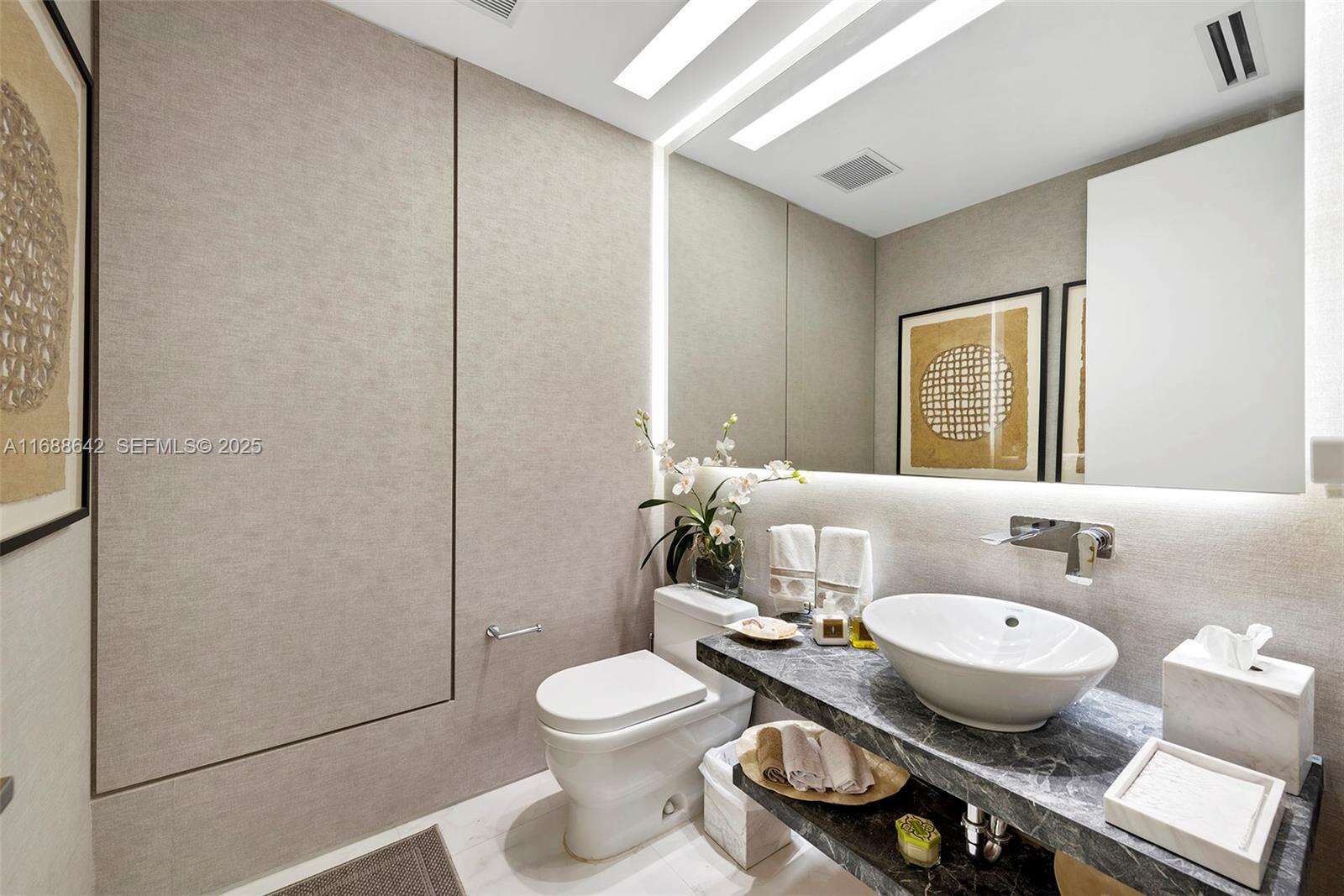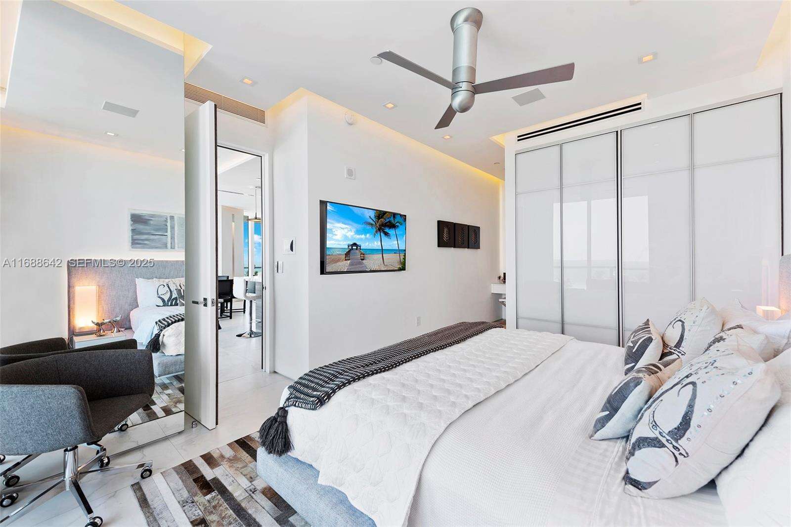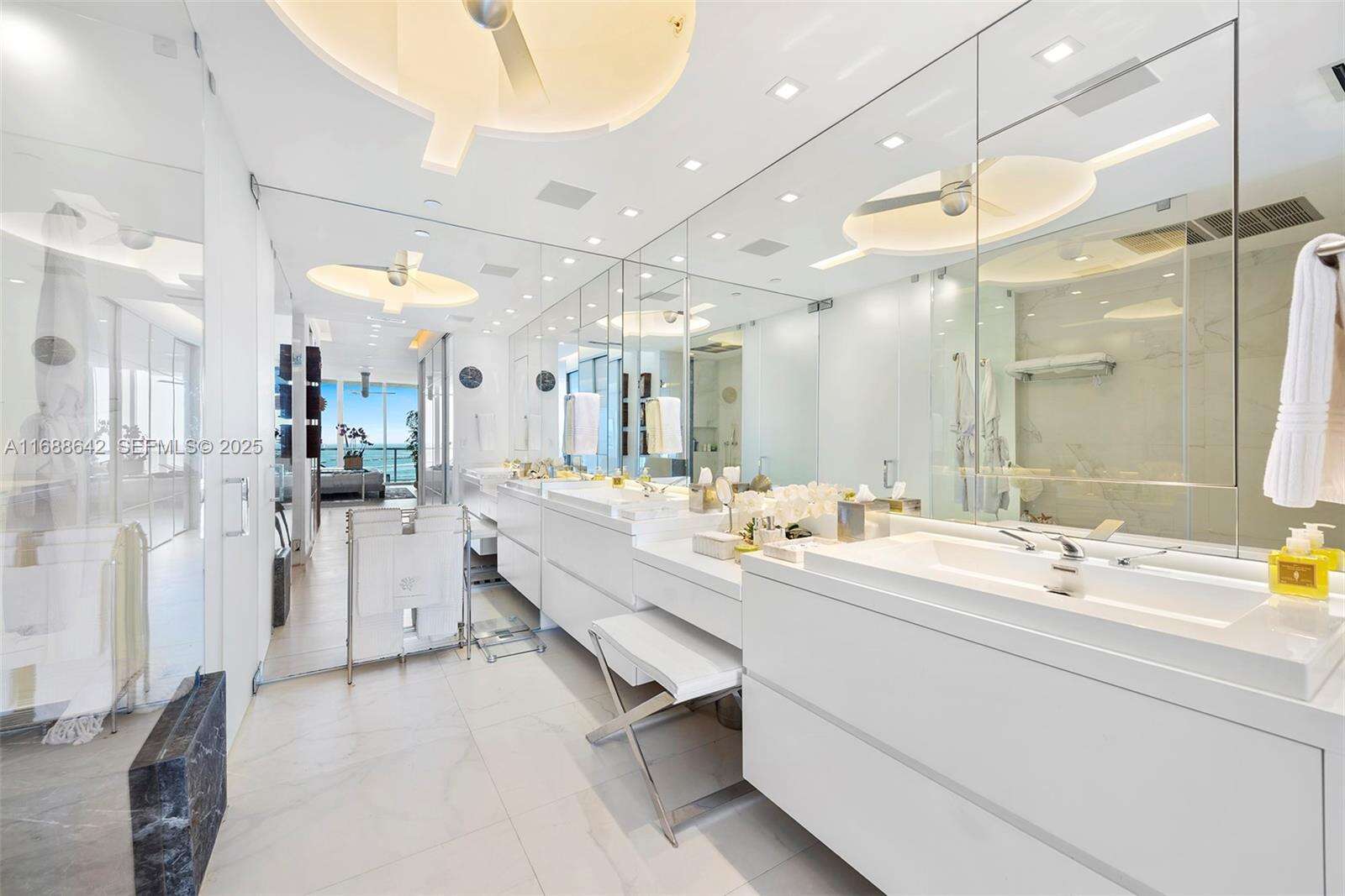 3Bed+staff 4.5bth. Iconic residence at Continuum presents an opportunity to acquire the only SE corner available. Incredible panoramas will take your breath away as you enter through a grand private foyer. Nestled above the Atlantic at the southernmost tip of Miami Beach, enjoy the outdoor wonders on an enormous 715 SF wrap-around terrace. Bask in the best views of Fisher Island, parading cruise ships, S.Pointe Park, and the Miami Beach coastline. Principal suite offers custom closets, sitting lounge, oversized shower w/solid basalt marble bench. Kitchen features Calacatta Gold marble isle,Miele+Subzero, wine vault+coffe bar. LutronLED/shades. Irreplaceable 13acre private oasis offers 3level gym/medspa,3 pools,cold plundges,beach butler,3Har-Tru tennis,restaurant,concierge,biometric entry