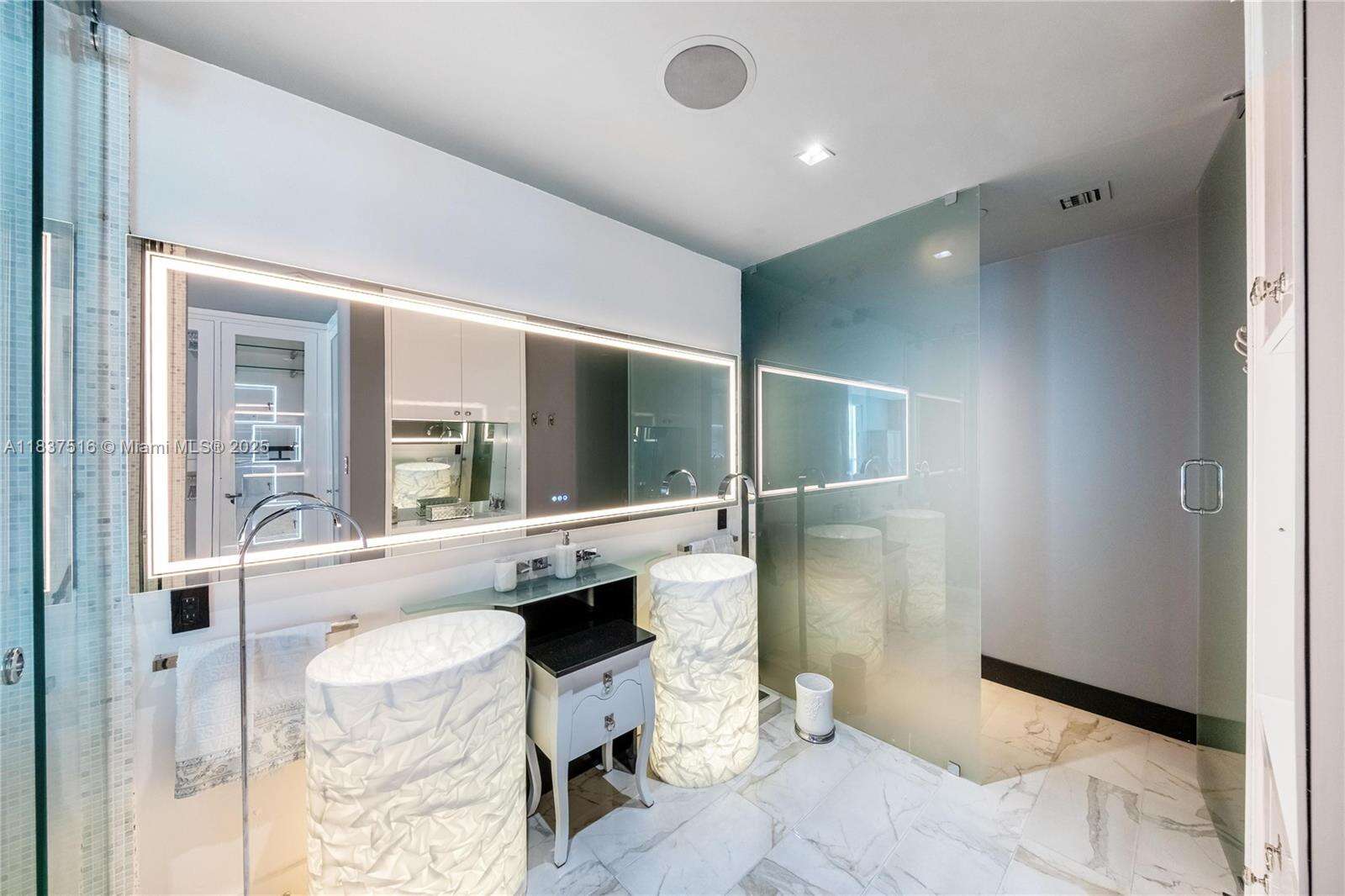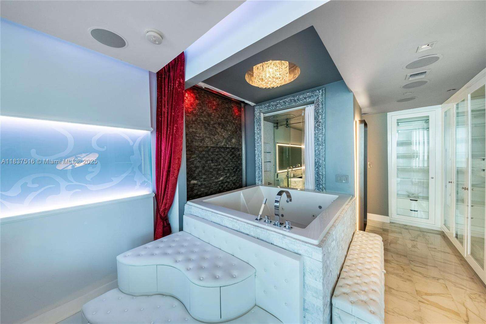 Sky-high elegance at Continuum South Beach. Located on the coveted 30th floor, this rarely available 2-bedroom, 2.5-bath residence offers unobstructed panoramic views spanning the Atlantic Ocean, Fisher Island, and the iconic Downtown Miami skyline. Floor-to-ceiling glass opens to a private terrace framing sunrise-to-sunset vistas. Unit 3002 has been enhanced with bespoke upgrades, including custom onyx features, a spa-style jacuzzi, and dual rain showers. Clean lines and refined finishes carry throughout the space. Residents enjoy private beach service, a world-class spa, state-of-the-art fitness center, valet, and dedicated concierge. Offered fully furnished.