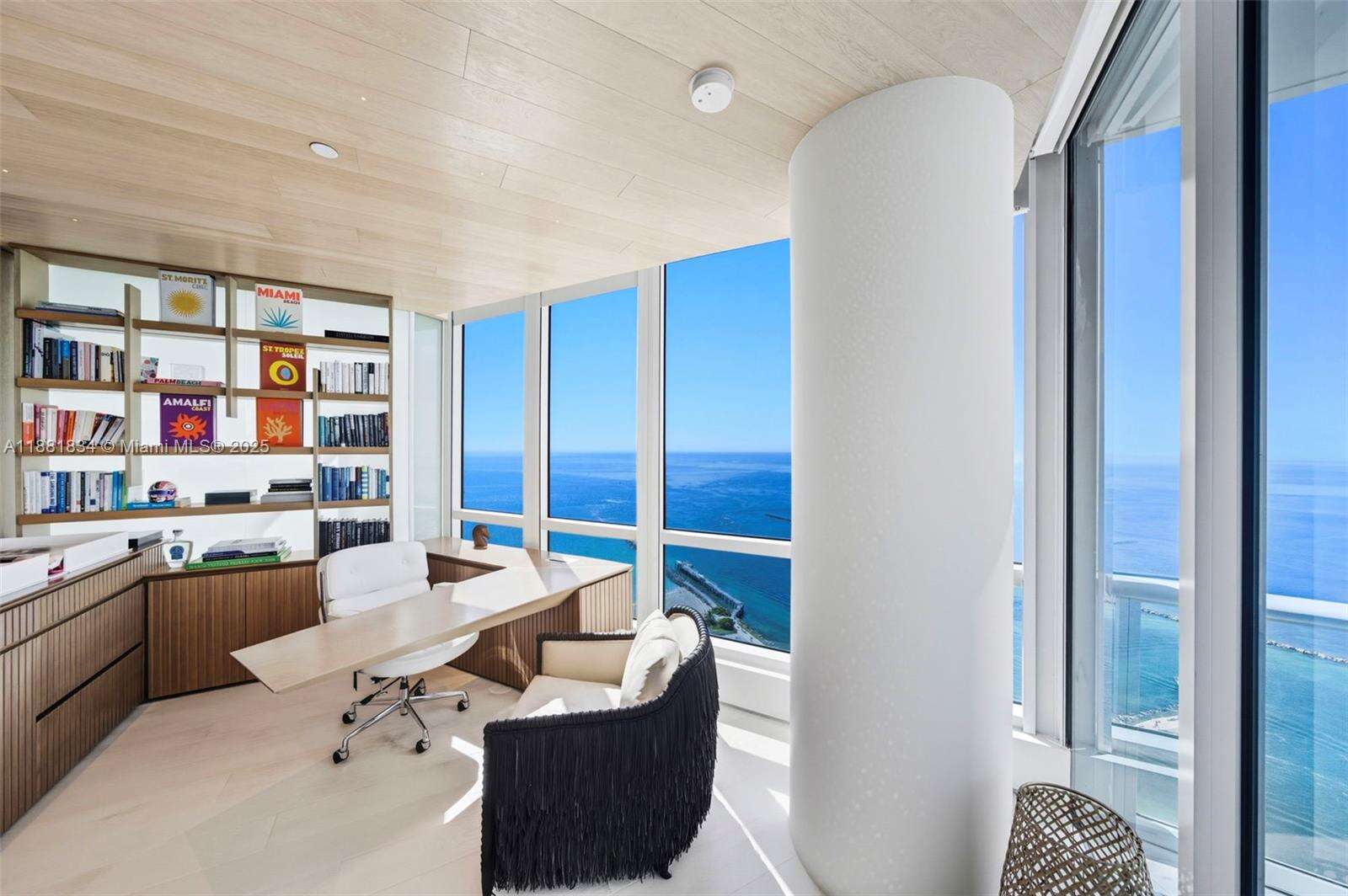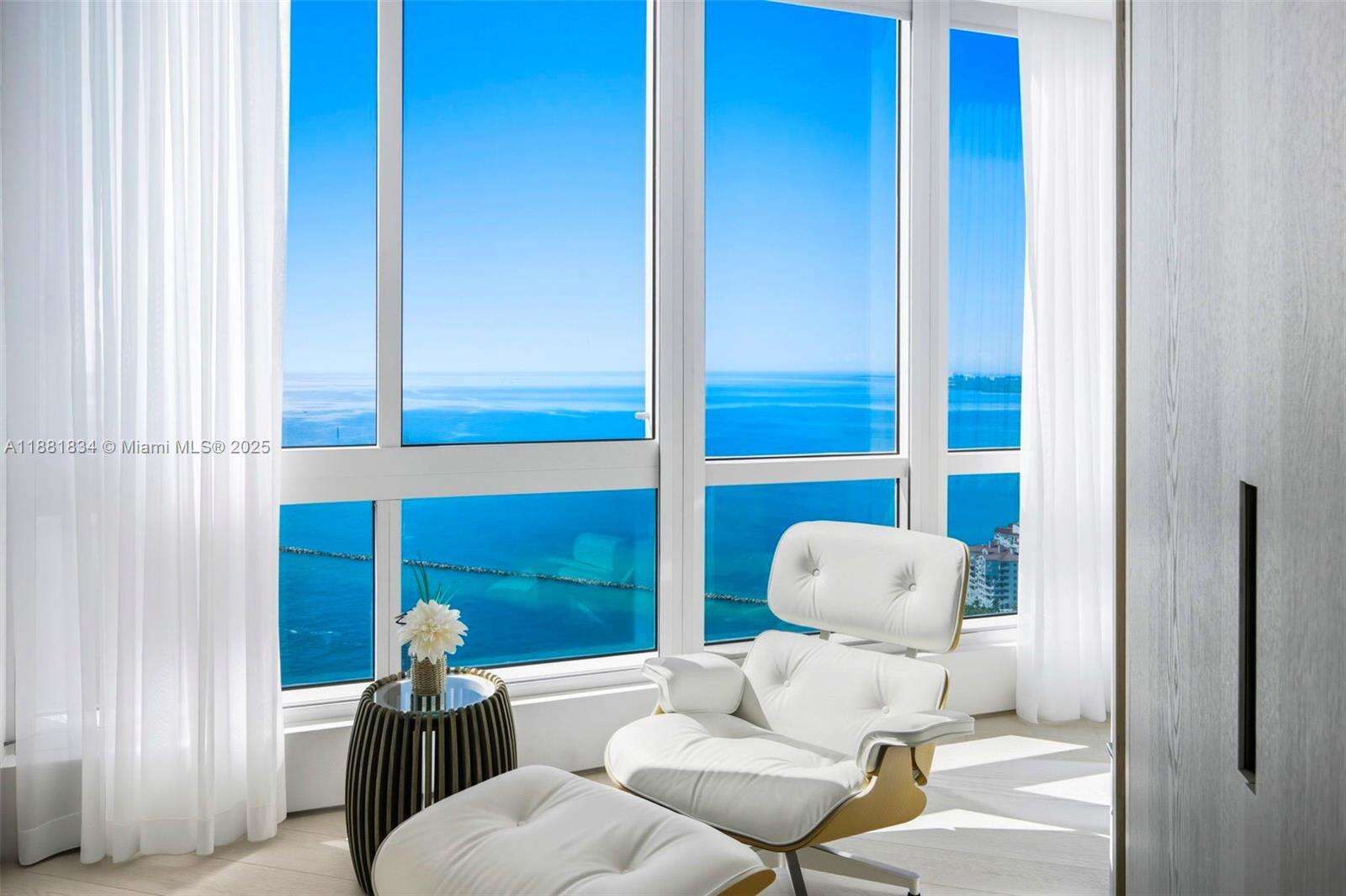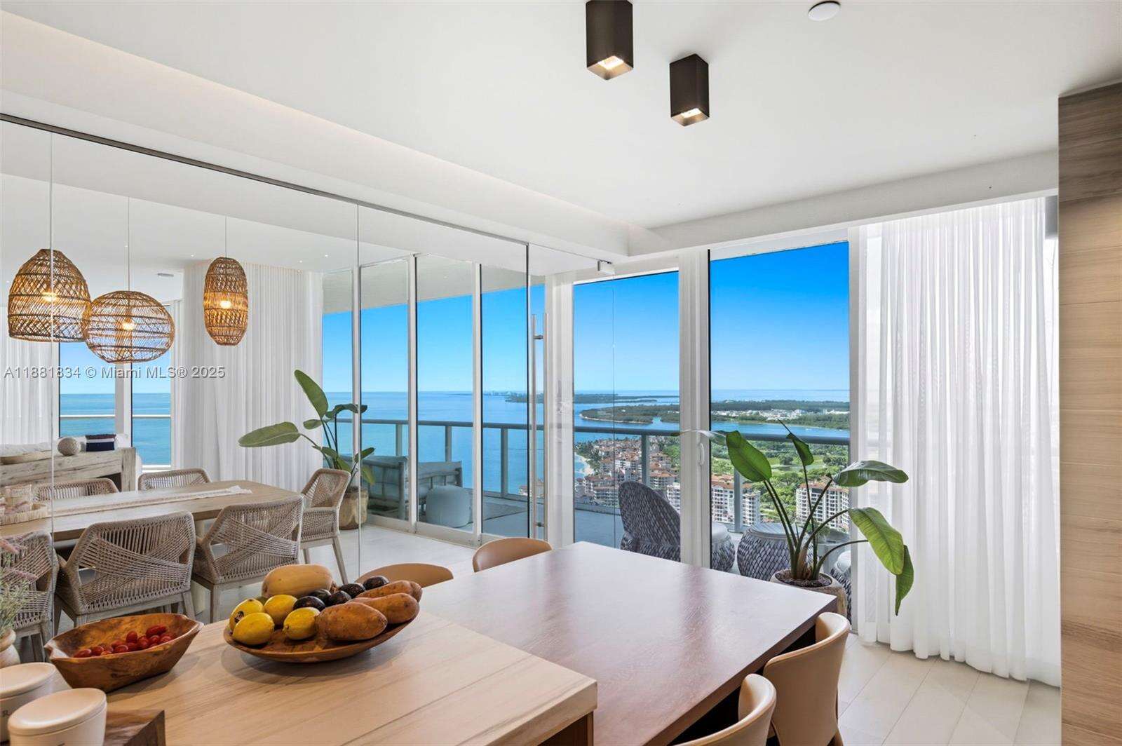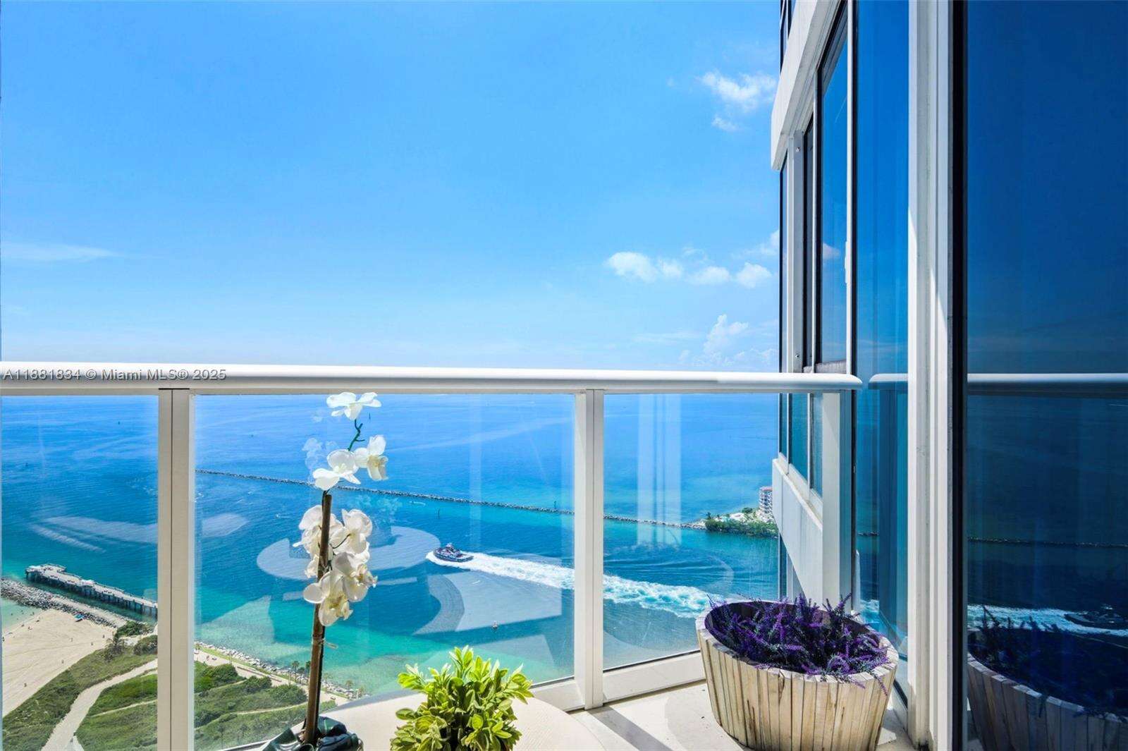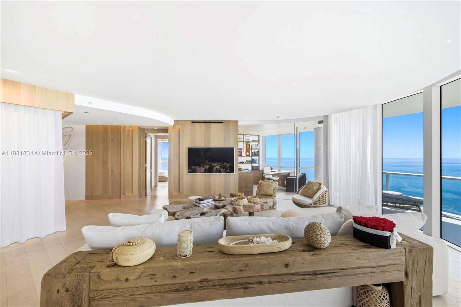Have it all at CONTINUUM 3803, a turnkey 5,049 SF sky residence beyond compare. From Atlantic sunrise to skyline sunset, this architectural marvel by Kobi Karp boasts coveted SE-to-SW exposures. Arrive via private elevator into a grand foyer clad in fluted white oak, unveiling jaw-dropping panoramas. The grand salon stuns with a curved glass wall and retractable doors, seamlessly blending indoor/outdoor living. Curved ceilings, architectural lighting, and custom drapery enhance the refined atmosphere. Zen-inspired principal suite offers a private sunrise terrace, bath w/Dornbach fixtures, dressing rm & rich millwork. Hans Krug kitchen showcases a wood + stone island, breakfast nook, and Miele appl. Dual oceanfront offices, media room & oversized laundry rm complete this seaside sanctuary.