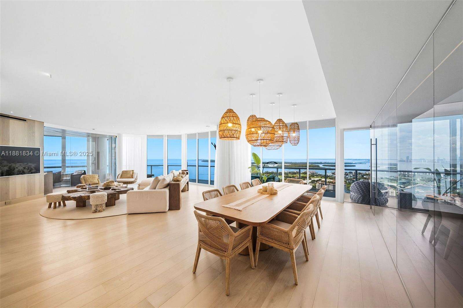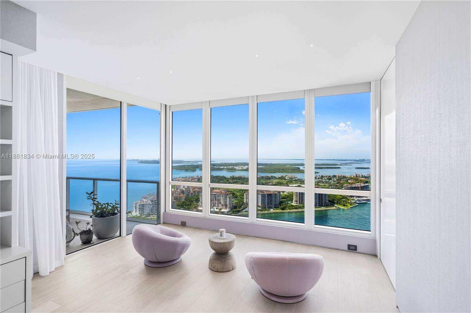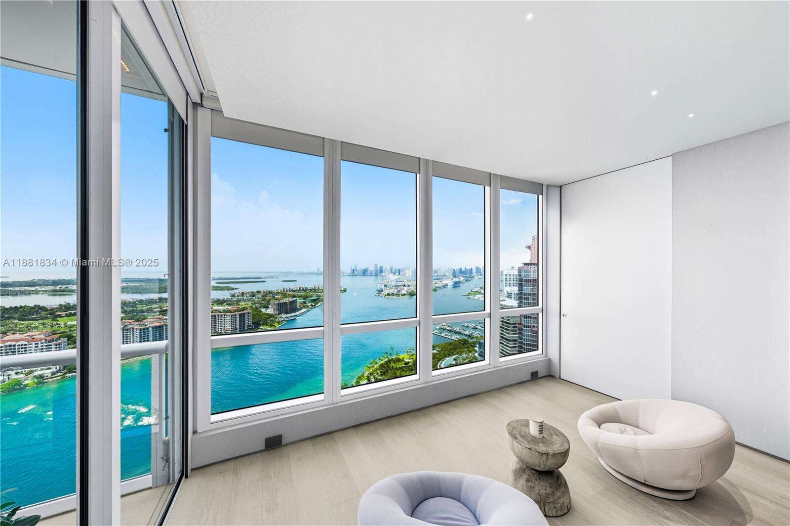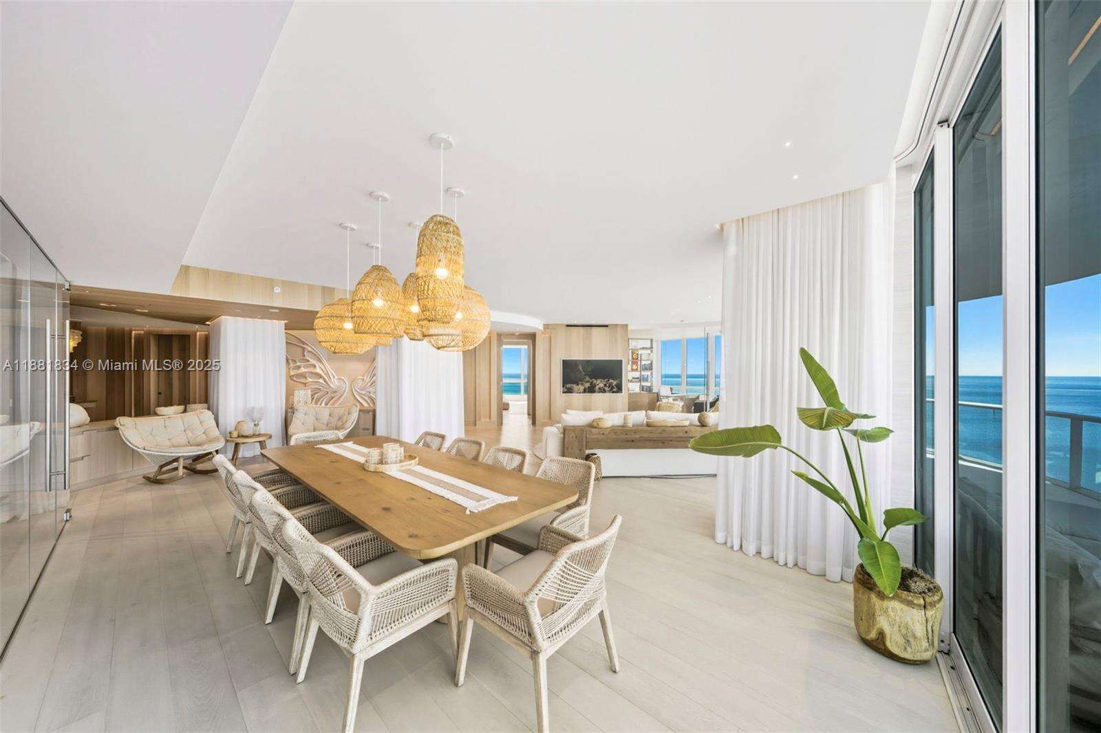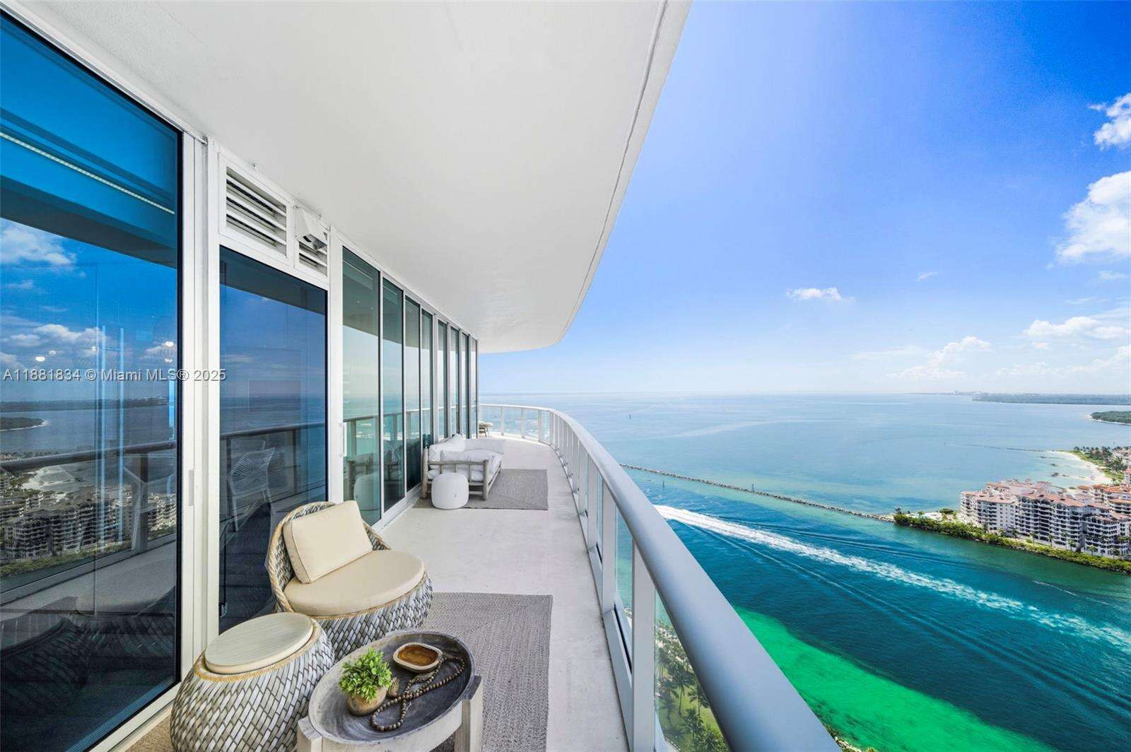 Have it all at CONTINUUM 3803, a turnkey 5,049 SF sky residence beyond compare. From Atlantic sunrise to skyline sunset, this architectural marvel by Kobi Karp boasts coveted SE-to-SW exposures. Arrive via private elevator into a grand foyer clad in fluted white oak, unveiling jaw-dropping panoramas. The grand salon stuns with a curved glass wall and retractable doors, seamlessly blending indoor/outdoor living. Curved ceilings, architectural lighting, and custom drapery enhance the refined atmosphere. Zen-inspired principal suite offers a private sunrise terrace, bath w/Dornbach fixtures, dressing rm & rich millwork. Hans Krug kitchen showcases a wood + stone island, breakfast nook, and Miele appl. Dual oceanfront offices, media room & oversized laundry rm complete this seaside sanctuary.