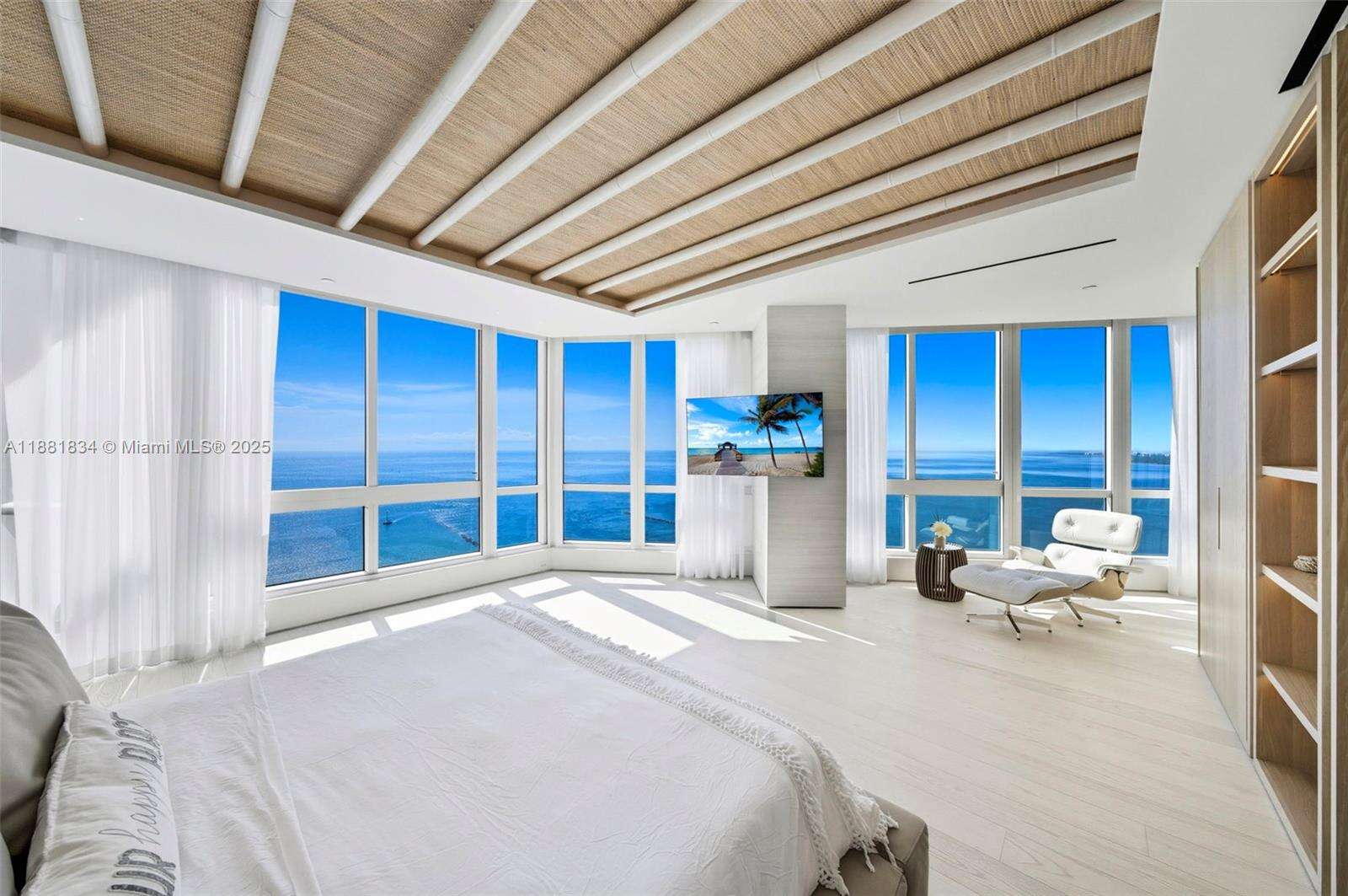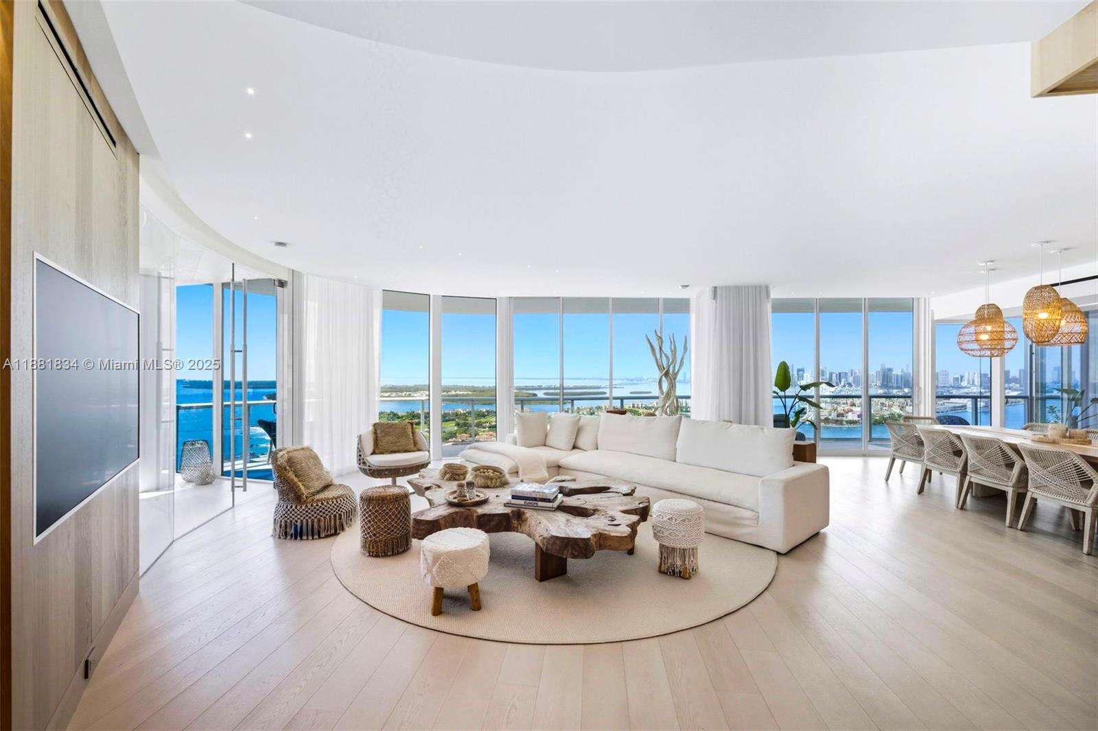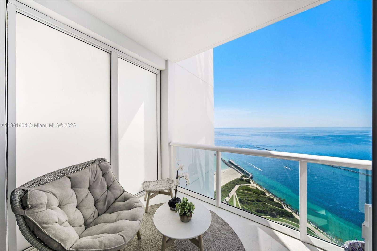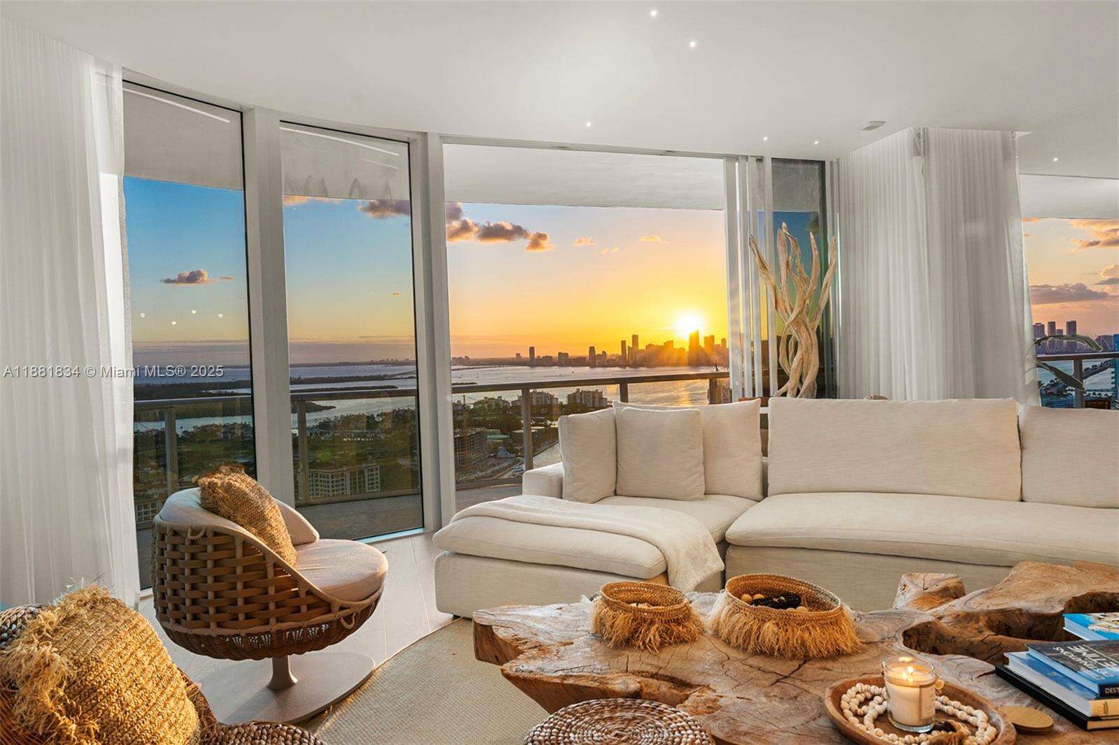 Have it all at CONTINUUM 3803, a turnkey 5,049 SF sky residence beyond compare. From Atlantic sunrise to skyline sunset, this architectural marvel by Kobi Karp boasts coveted SE-to-SW exposures. Arrive via private elevator into a grand foyer clad in fluted white oak, unveiling jaw-dropping panoramas. The grand salon stuns with a curved glass wall and retractable doors, seamlessly blending indoor/outdoor living. Curved ceilings, architectural lighting, and custom drapery enhance the refined atmosphere. Zen-inspired principal suite offers a private sunrise terrace, bath w/Dornbach fixtures, dressing rm & rich millwork. Hans Krug kitchen showcases a wood + stone island, breakfast nook, and Miele appl. Dual oceanfront offices, media room & oversized laundry rm complete this seaside sanctuary.