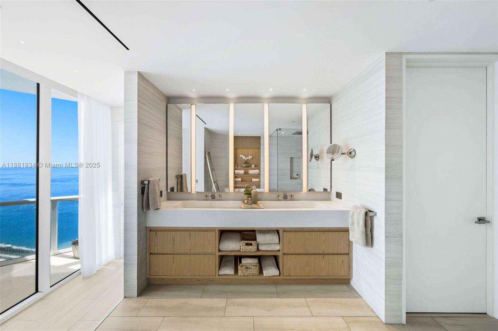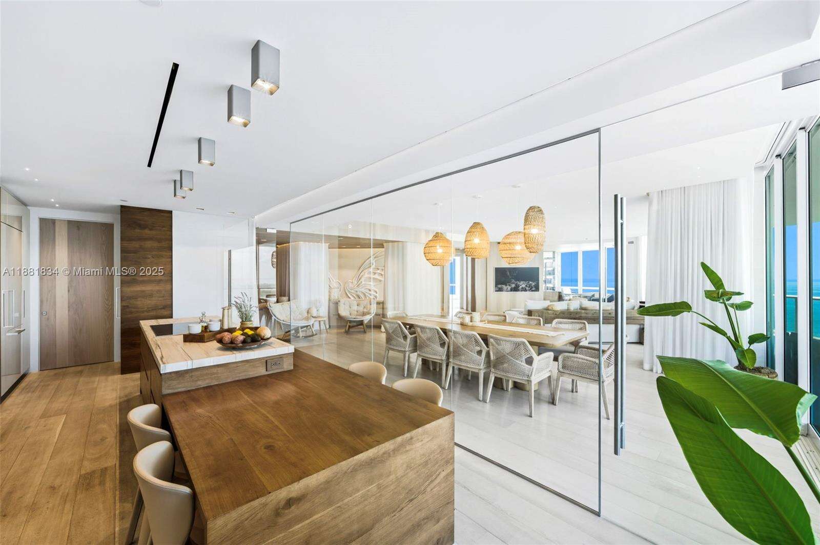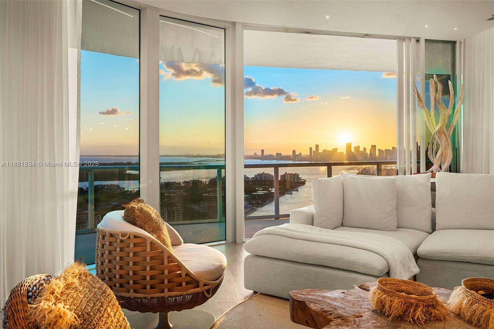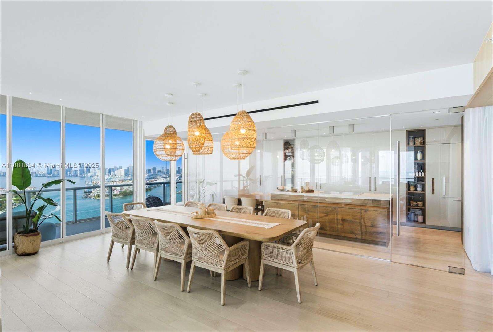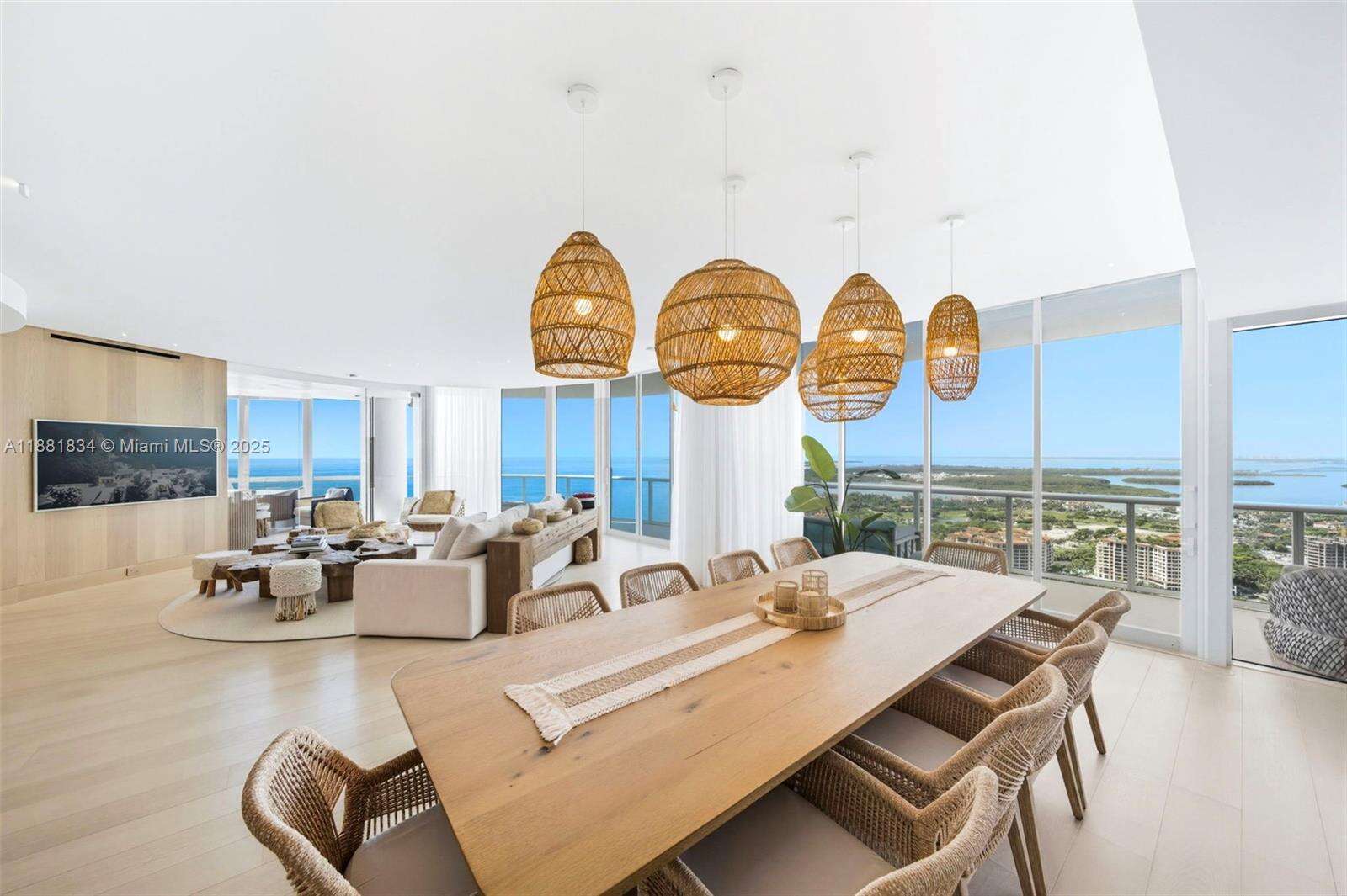 Have it all at CONTINUUM 3803, a turnkey 5,049 SF sky residence beyond compare. From Atlantic sunrise to skyline sunset, this architectural marvel by Kobi Karp boasts coveted SE-to-SW exposures. Arrive via private elevator into a grand foyer clad in fluted white oak, unveiling jaw-dropping panoramas. The grand salon stuns with a curved glass wall and retractable doors, seamlessly blending indoor/outdoor living. Curved ceilings, architectural lighting, and custom drapery enhance the refined atmosphere. Zen-inspired principal suite offers a private sunrise terrace, bath w/Dornbach fixtures, dressing rm & rich millwork. Hans Krug kitchen showcases a wood + stone island, breakfast nook, and Miele appl. Dual oceanfront offices, media room & oversized laundry rm complete this seaside sanctuary.