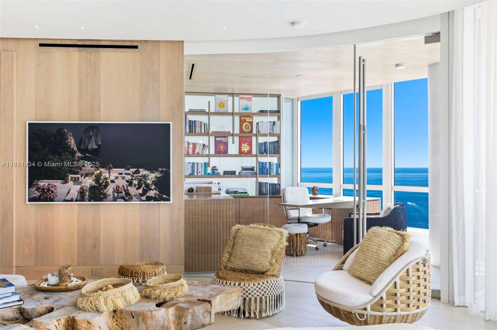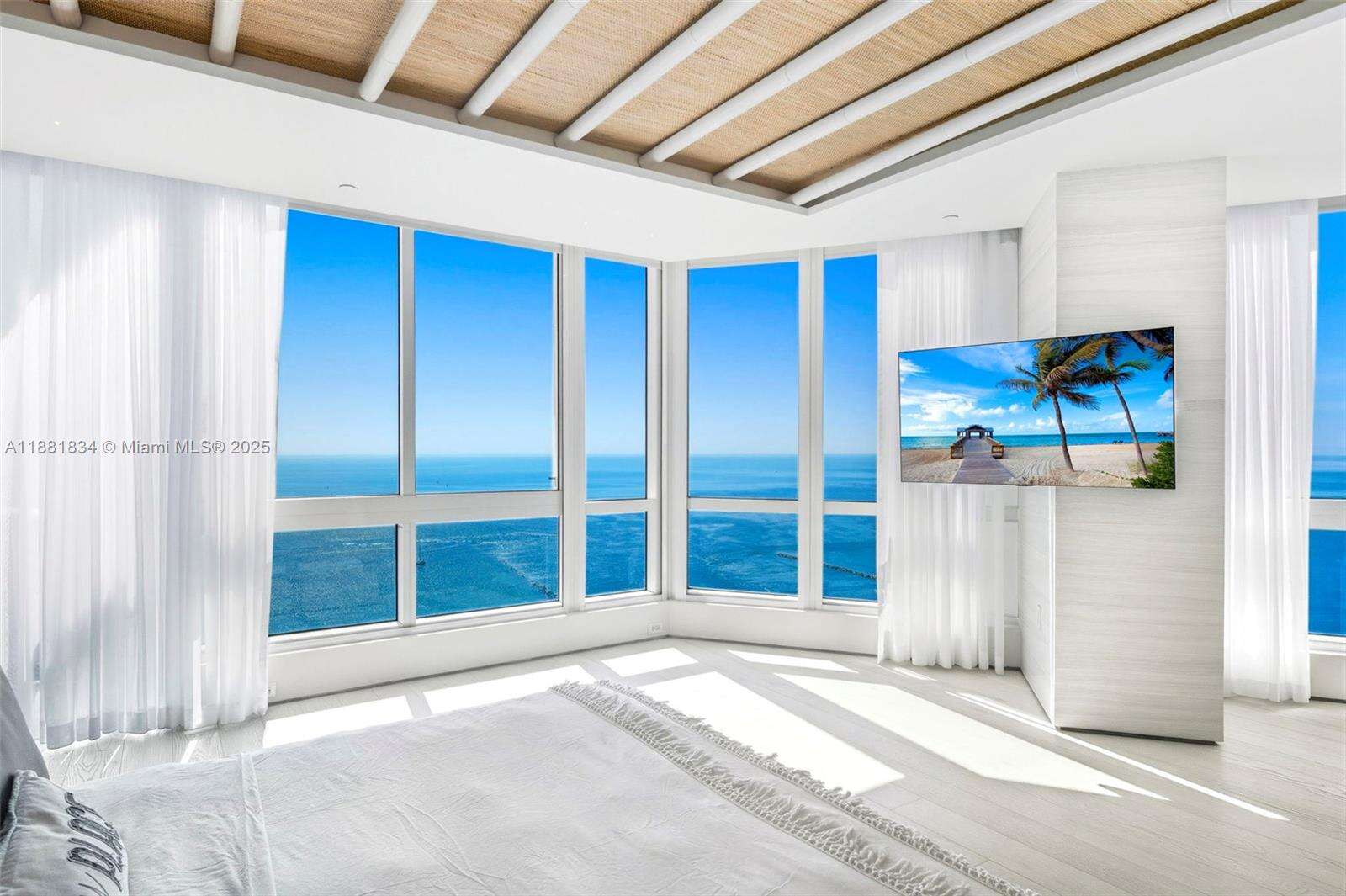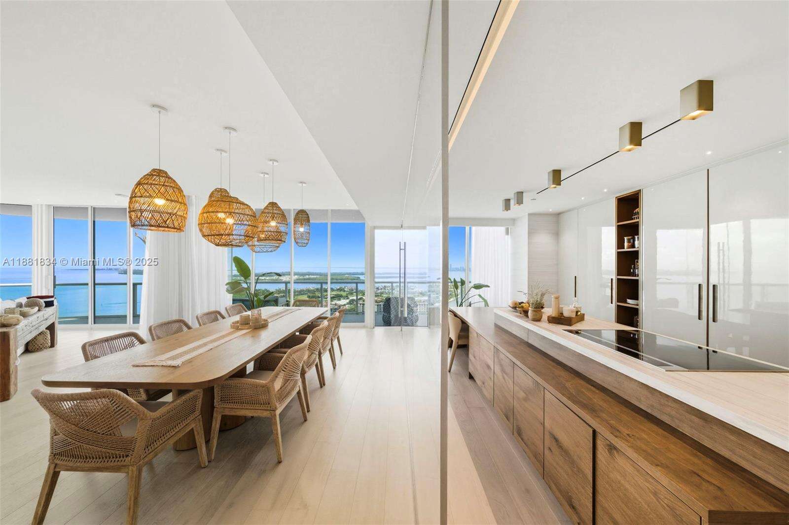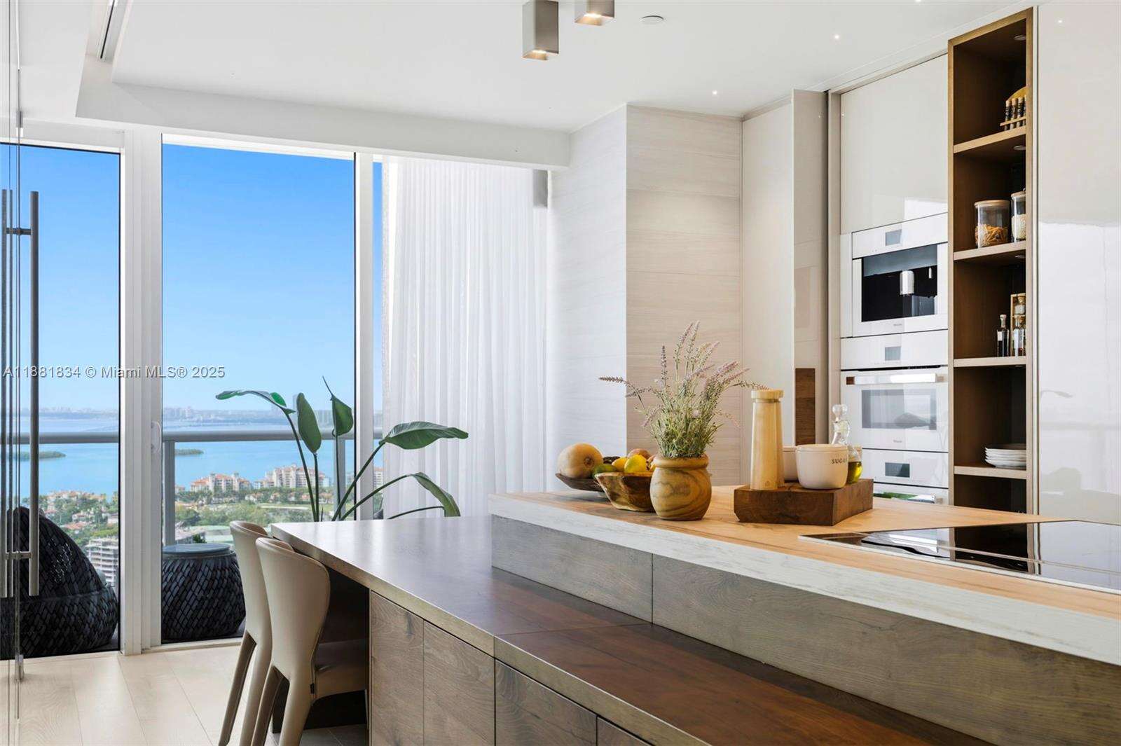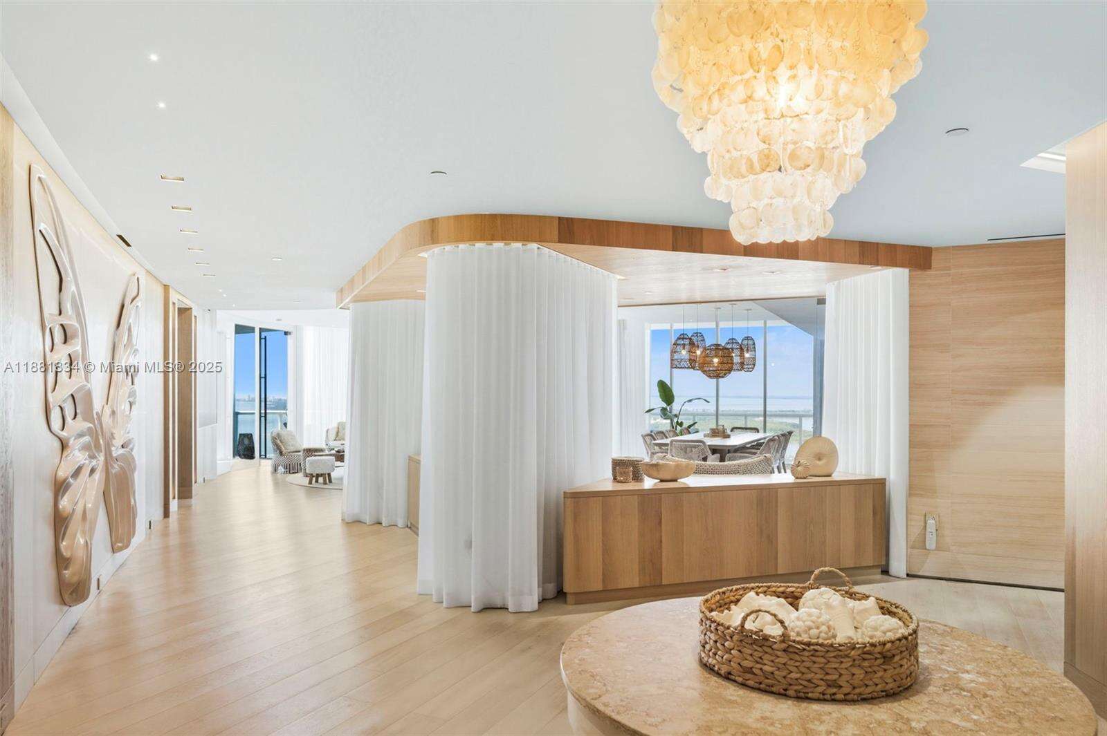 Have it all at CONTINUUM 3803, a turnkey 5,049 SF sky residence beyond compare. From Atlantic sunrise to skyline sunset, this architectural marvel by Kobi Karp boasts coveted SE-to-SW exposures. Arrive via private elevator into a grand foyer clad in fluted white oak, unveiling jaw-dropping panoramas. The grand salon stuns with a curved glass wall and retractable doors, seamlessly blending indoor/outdoor living. Curved ceilings, architectural lighting, and custom drapery enhance the refined atmosphere. Zen-inspired principal suite offers a private sunrise terrace, bath w/Dornbach fixtures, dressing rm & rich millwork. Hans Krug kitchen showcases a wood + stone island, breakfast nook, and Miele appl. Dual oceanfront offices, media room & oversized laundry rm complete this seaside sanctuary.