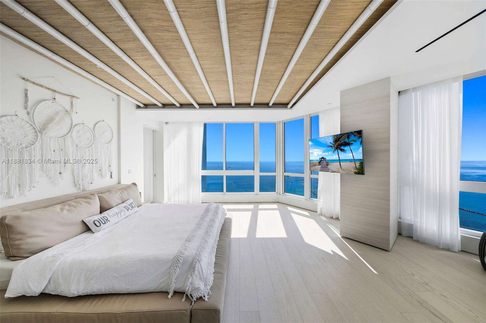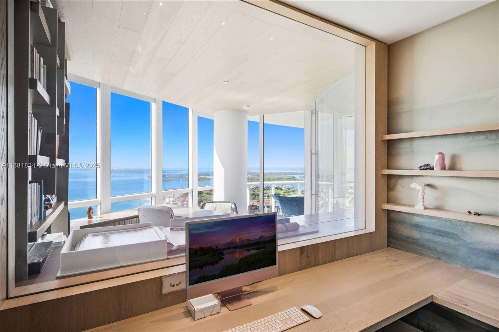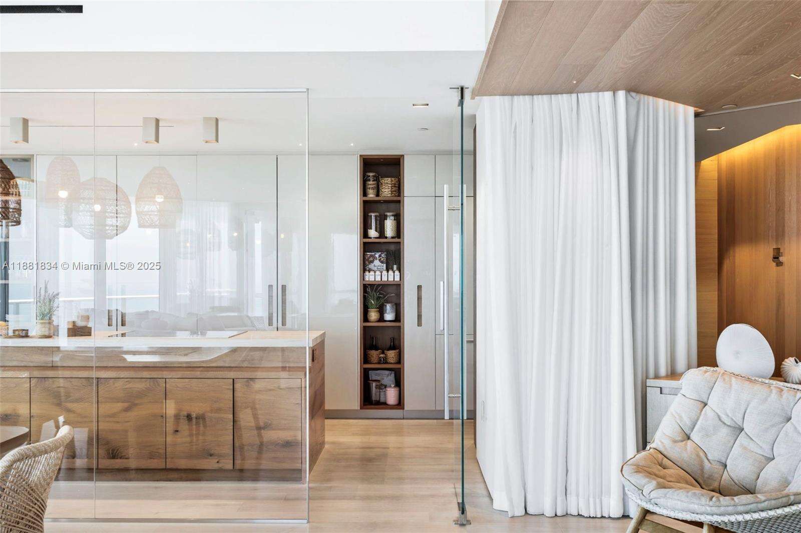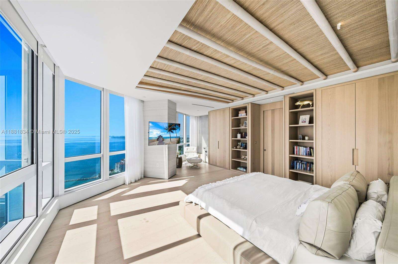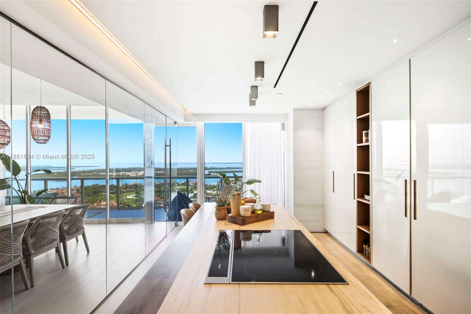 Have it all at CONTINUUM 3803, a turnkey 5,049 SF sky residence beyond compare. From Atlantic sunrise to skyline sunset, this architectural marvel by Kobi Karp boasts coveted SE-to-SW exposures. Arrive via private elevator into a grand foyer clad in fluted white oak, unveiling jaw-dropping panoramas. The grand salon stuns with a curved glass wall and retractable doors, seamlessly blending indoor/outdoor living. Curved ceilings, architectural lighting, and custom drapery enhance the refined atmosphere. Zen-inspired principal suite offers a private sunrise terrace, bath w/Dornbach fixtures, dressing rm & rich millwork. Hans Krug kitchen showcases a wood + stone island, breakfast nook, and Miele appl. Dual oceanfront offices, media room & oversized laundry rm complete this seaside sanctuary.