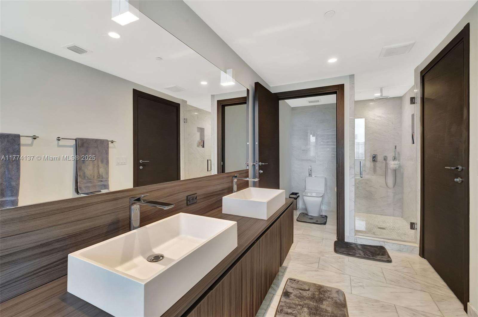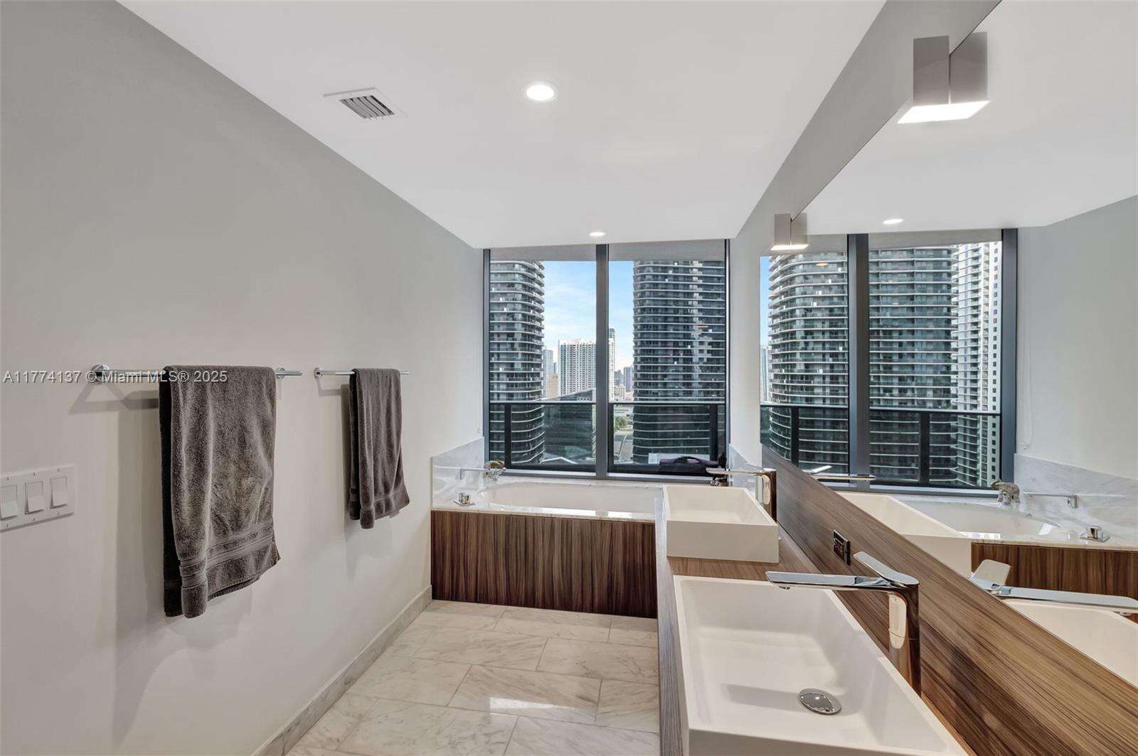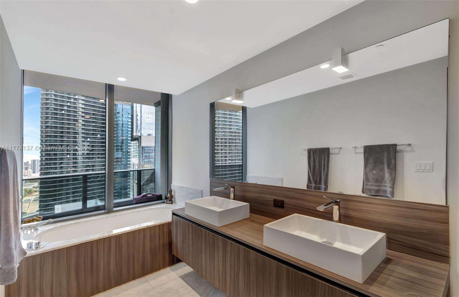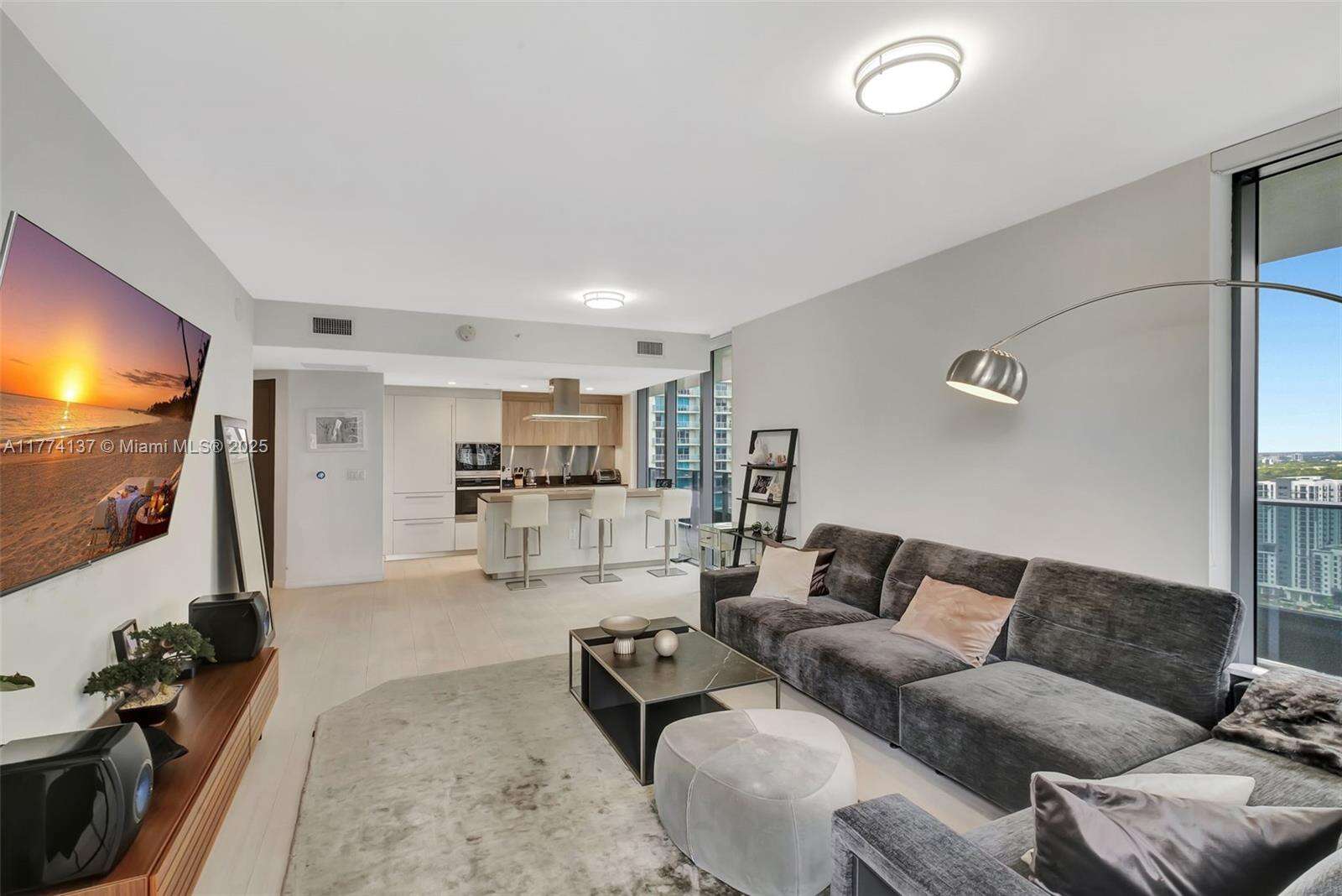 Step into elevated living at one of Miami’s most prestigious towers, Flatiron Brickell. This spacious 2-beds + den, 2.5-baths residence on the 28th floor offers stunning skyline & sunset views through floor-to-ceiling windows & a thoughtfully designed open floor plan. Featuring Italian-made custom cabinetry, premium Miele appliances, & marble countertops, the gourmet kitchen flows seamlessly into the living & dining area, ideal for entertaining. The primary suite includes a walk-in closet, a luxurious en-suite bath with a soaking tub & glass-enclosed shower. The second bedroom also features its own en-suite, while the versatile den is perfect for a home office or media roof. Walkable location just steps from Brickell City Centre, fine dining, luxury shopping, & vibrant nightlife.