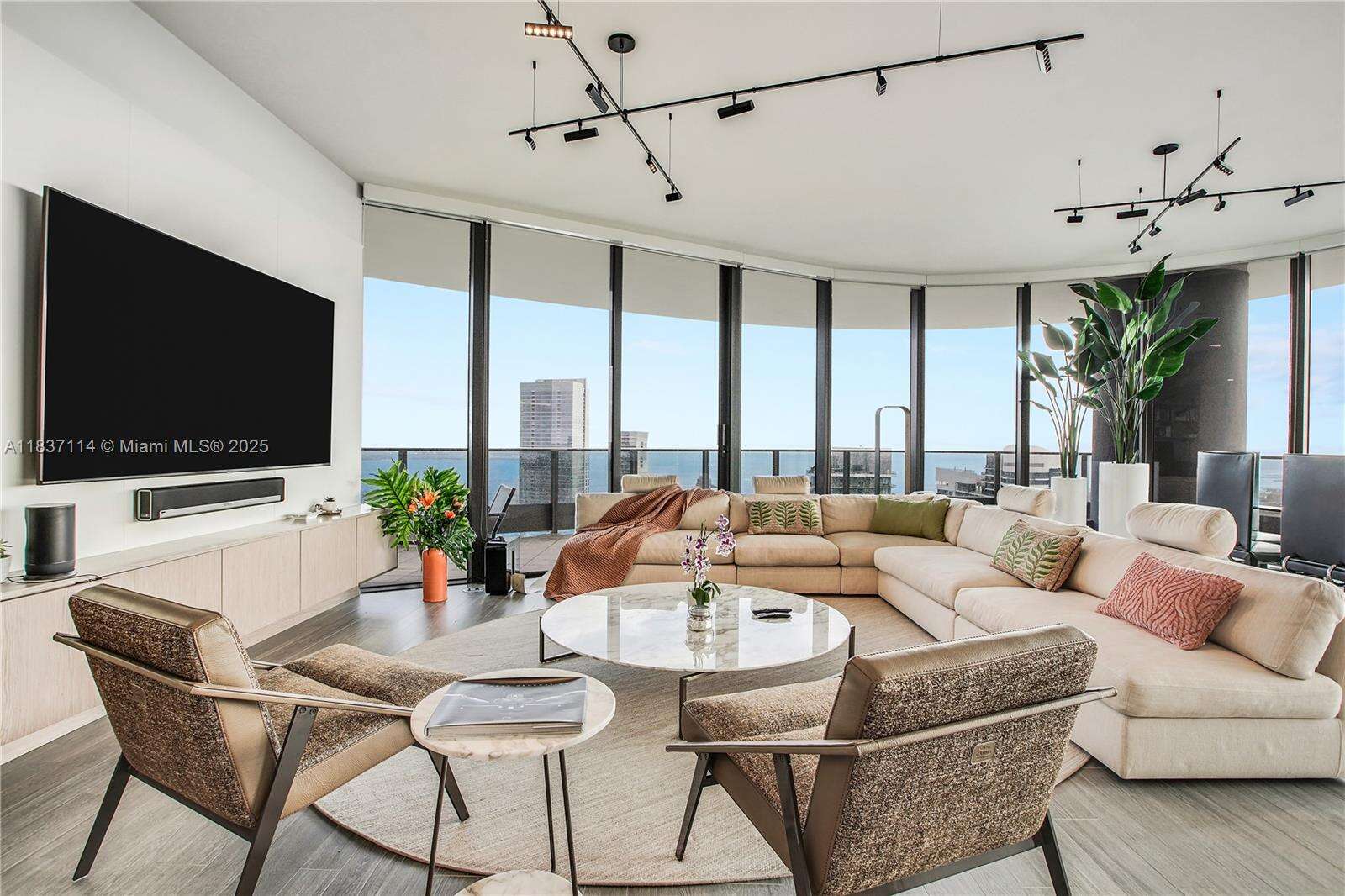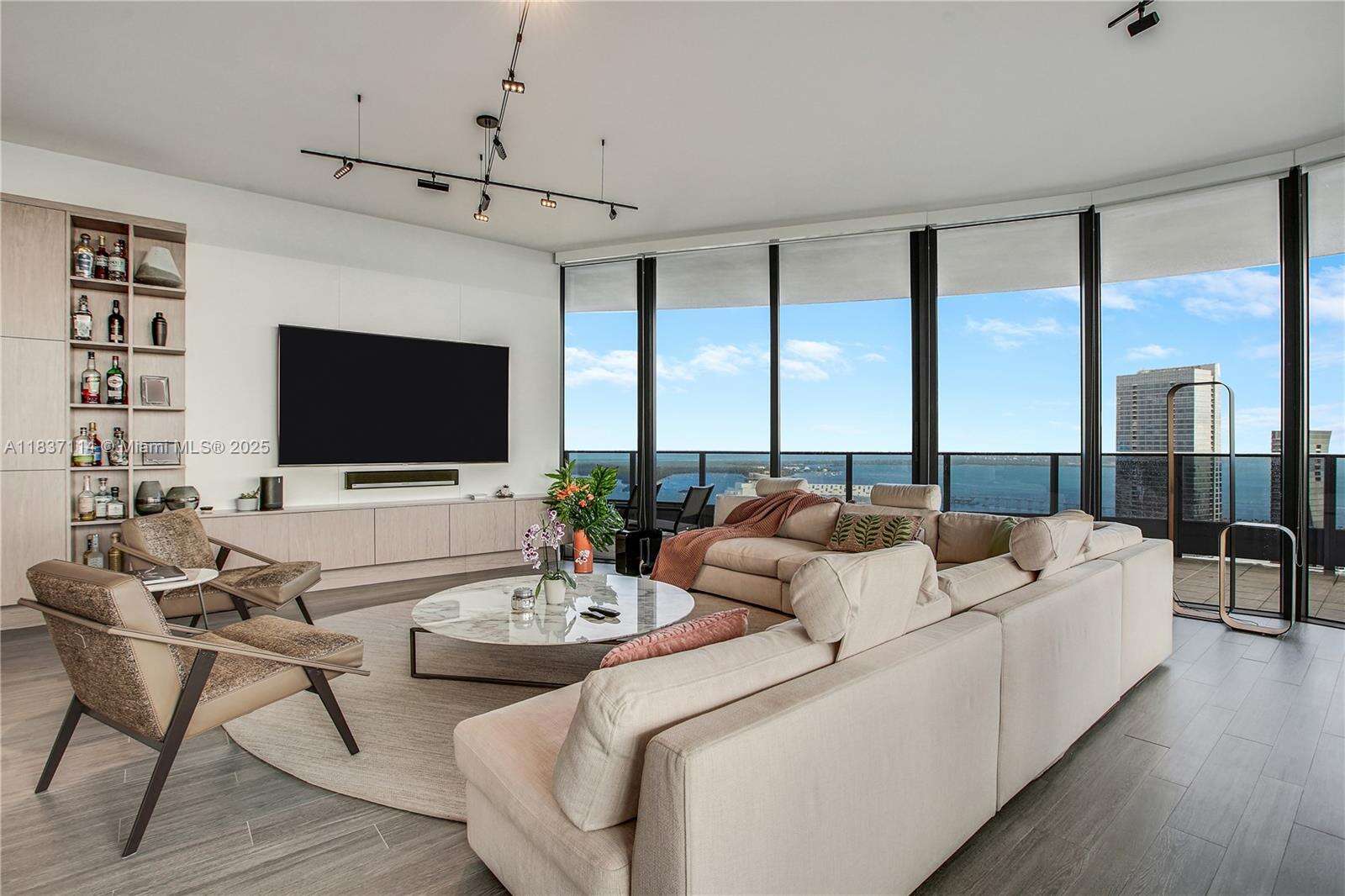 DRAMATIC PRICE REDUCTION TILL DECEMBER ONLY - BRICKELL FLATIRON : SELLER MOTIVATED - MANHATTAN LIFESTYLE 10 MINUTES AWAY FROM CARIBBEAN BEACHES 64story luxury tower in Miami’s Brickell district offers 527 residences, including the exclusive Penthouse 6002.This stunning corner unit features expansive terraces with panoramic views of the city skyline and Biscayne Bay, fully furnished with elegant Italian minimalist design. Access is seamless with two express elevators and two assigned parking spaces plus valet. Residents enjoy unparalleled amenities: a 64th-floor rooftop with a pool, restaurant, fitness center, steam room, and sauna, plus a lap pool, theater, and billiards room. Developer's private unit featuring spectacular high-end finishes and unparalleled luxury. up to 4 parking spaces included. A MUST SEE!