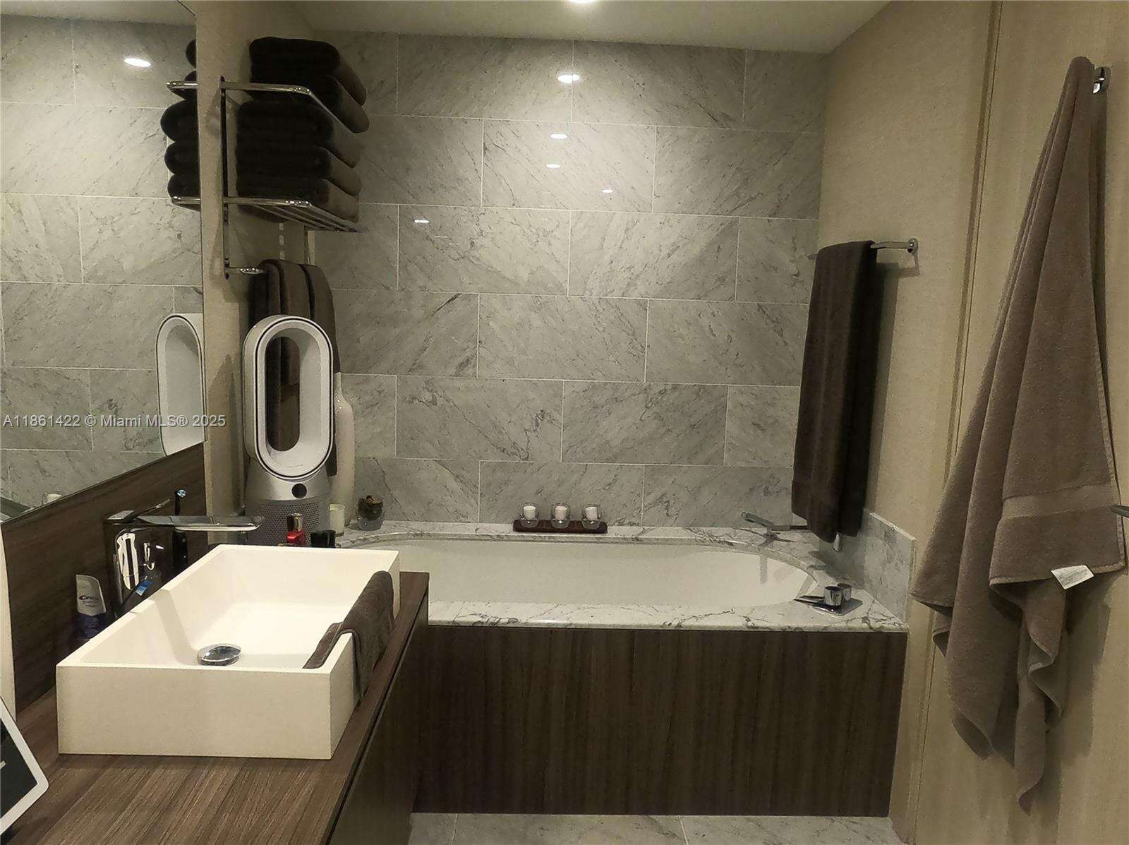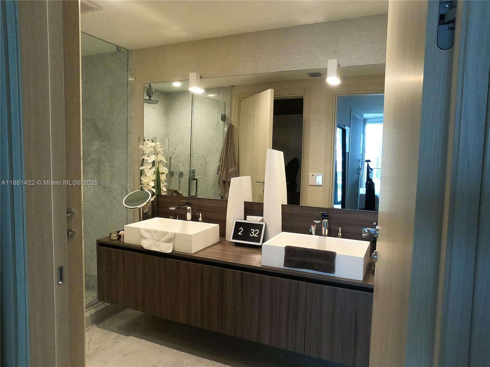 Luxury and most prestigious towers, Flatiron Brickell. Smart Unit works with Alexa or Google home. Ring alarm. spacious 2-beds, 2.5-baths residence on the 23th floor offers stunning skyline & Bay views through floor-to-ceiling windows & a thoughtfully designed open floor plan. Featuring Italian-made custom cabinetry, premium Miele appliances, & marble countertops, the gourmet kitchen flows seamlessly into the living & dining area, ideal for entertaining. The primary suite includes a walk-in closet, a luxurious suite bath with a soaking tub & glass-enclosed shower. . Access is seamless with two express elevators and two assigned parking spaces plus valet. Residents enjoy unparalleled amenities: a 64th-floor rooftop with a pool, restaurant, fitness center, steam room, and sauna, plus a lap pool, theater, and billiards room.