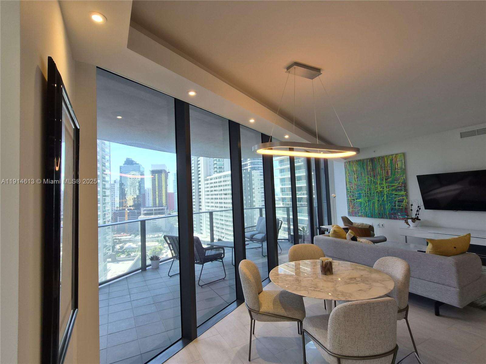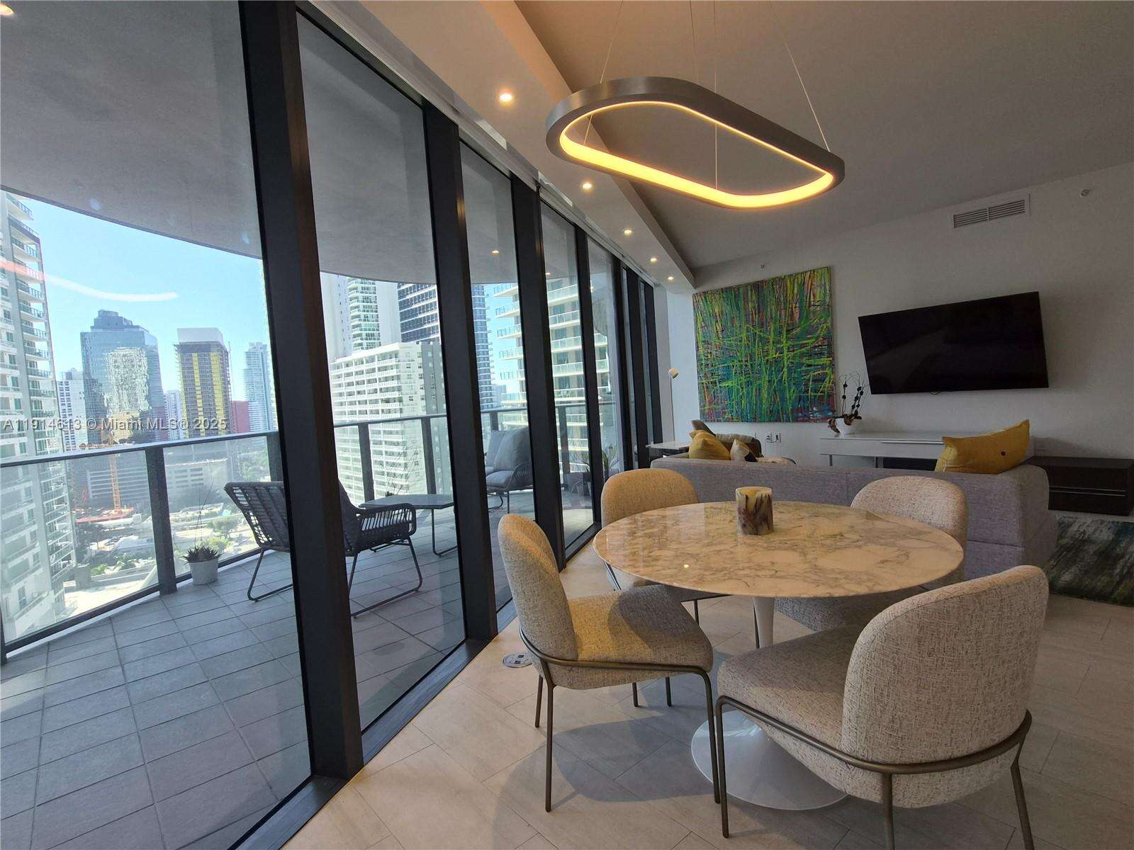 Beautiful two-bedroom residence located in the heart of Brickell in the luxurious Flatiron, Brickell's finest tower by renowned developer Ugo Colombo. Enjoy 180° breathtaking views of the city and bay, framed by floor-to-ceiling glass doors and elliptical balconies. Electric window are installed throughout the unit. Italian kitchen equipped with MIELE appliances. The residence features Barausse Italian custom doors 7 feet tall. Flooring includes Marble and Italian porcelain tile by Casalgrande Padana. Assigned parking plus free valet. 24/7 security. Amenities, including a movie theater, wine room and social rooms, rooftop gym, pool, spa, kids' room, and kids' pool. Walking distance to shops and restaurants and a short drive to Miami International Airport and Miami Beach.