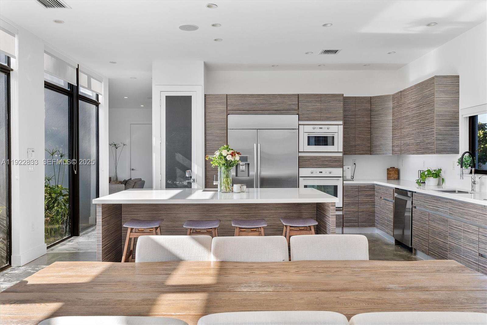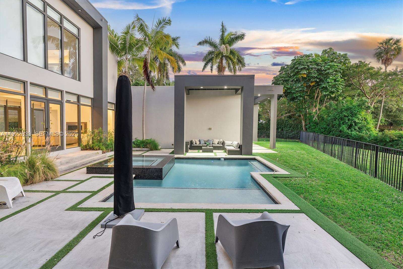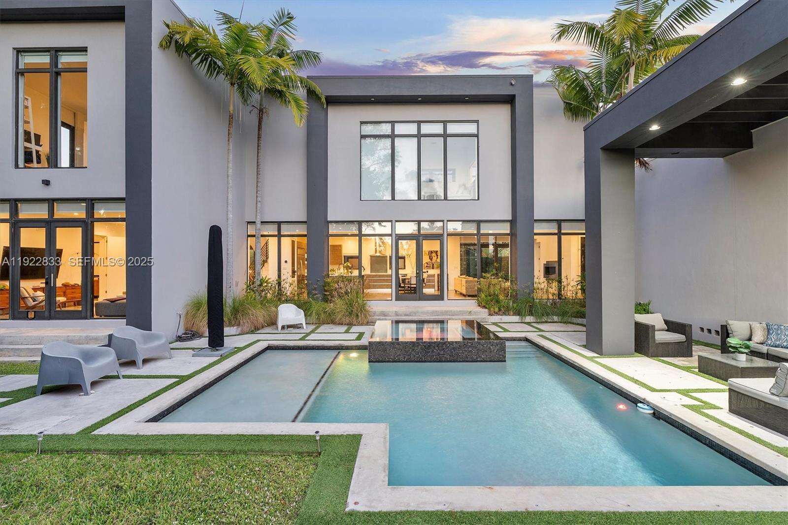 Exceptional contemporary waterfront estate in Miami Shores featuring 4BD/3.5BA in the main home plus a detached studio guest house with kitchen and bathroom. Built in 2015, this modern residence offers soaring ceilings, floor-to-ceiling glass and an open layout that blends indoor and outdoor living. Enjoy 135 ft of waterfront with direct ocean access, a zero-edge pool with infinity jacuzzi, and wide canal and golf course views. The gourmet kitchen features a large center island and quartz counters. Additional highlights include a home theatre, designer baths and 3-car garage. A true turnkey retreat in one of Miami’s most desirable neighborhoods.