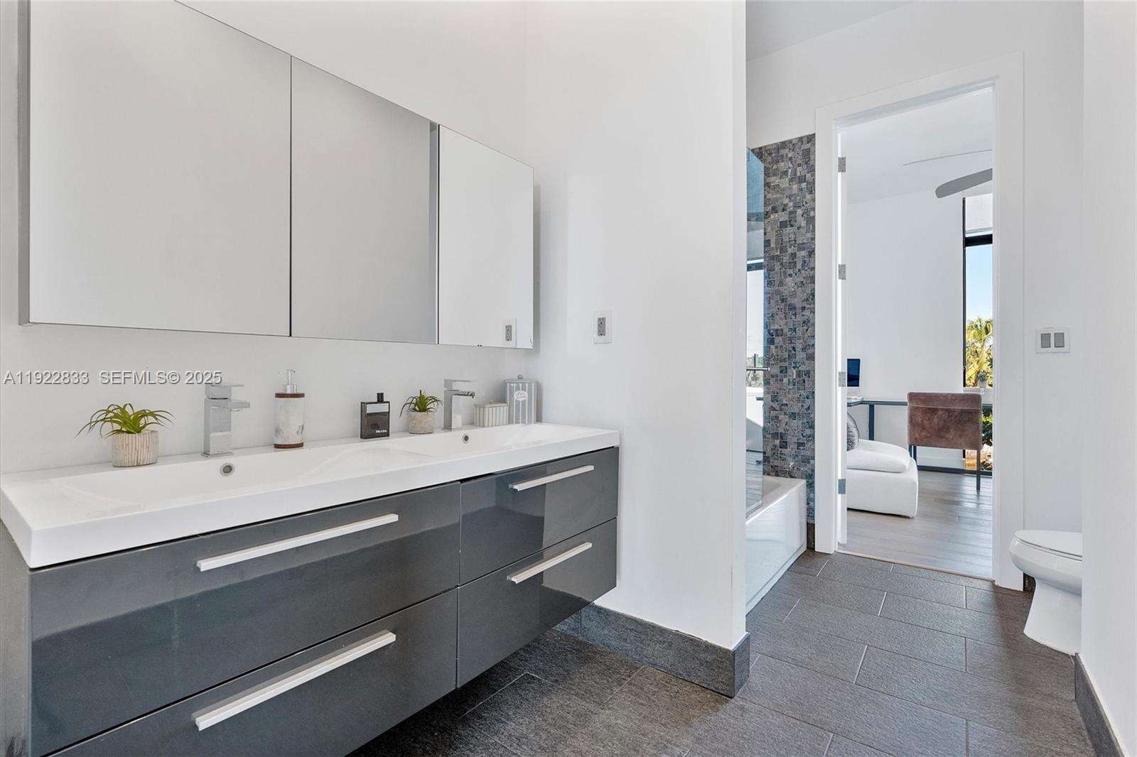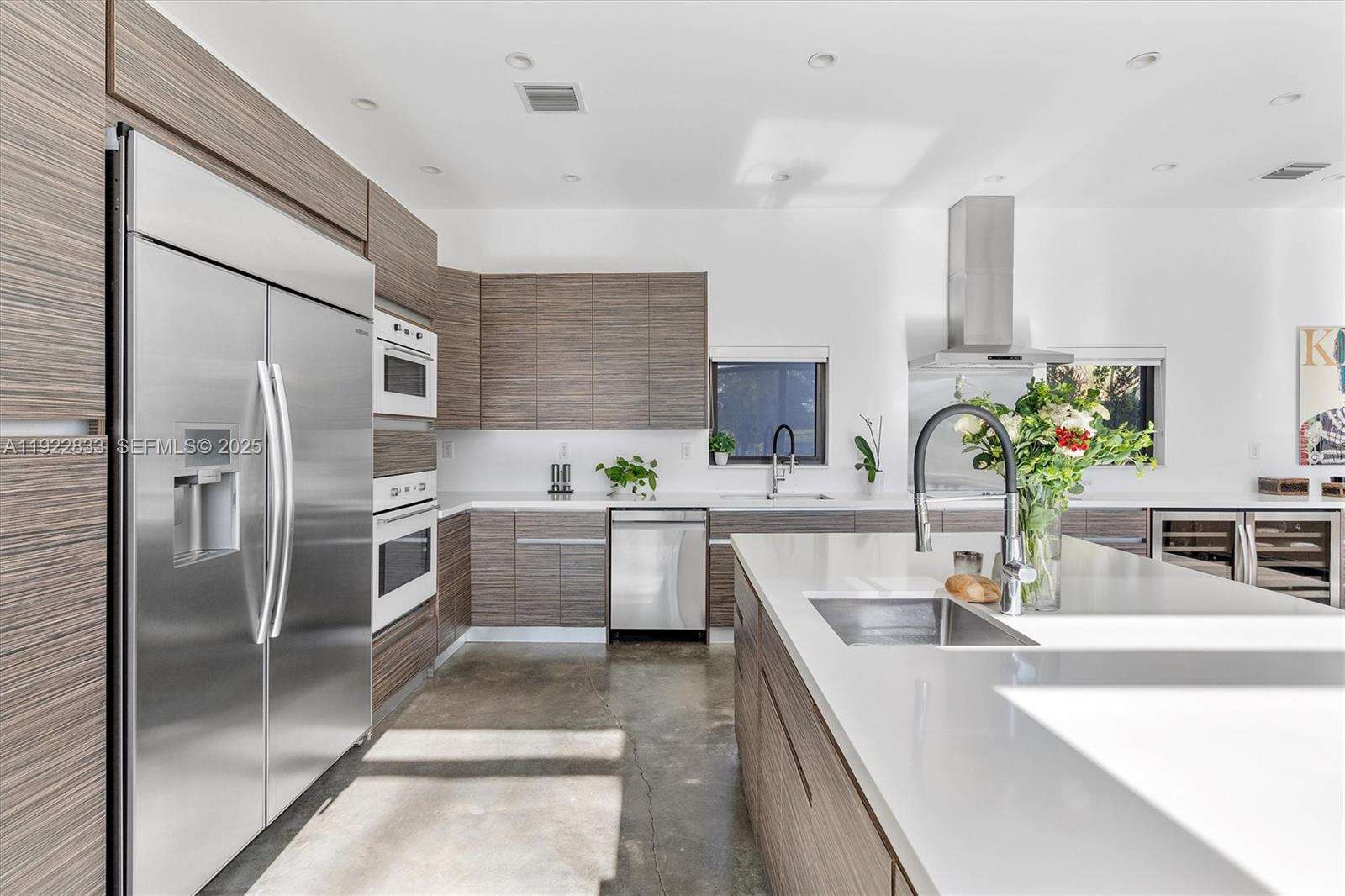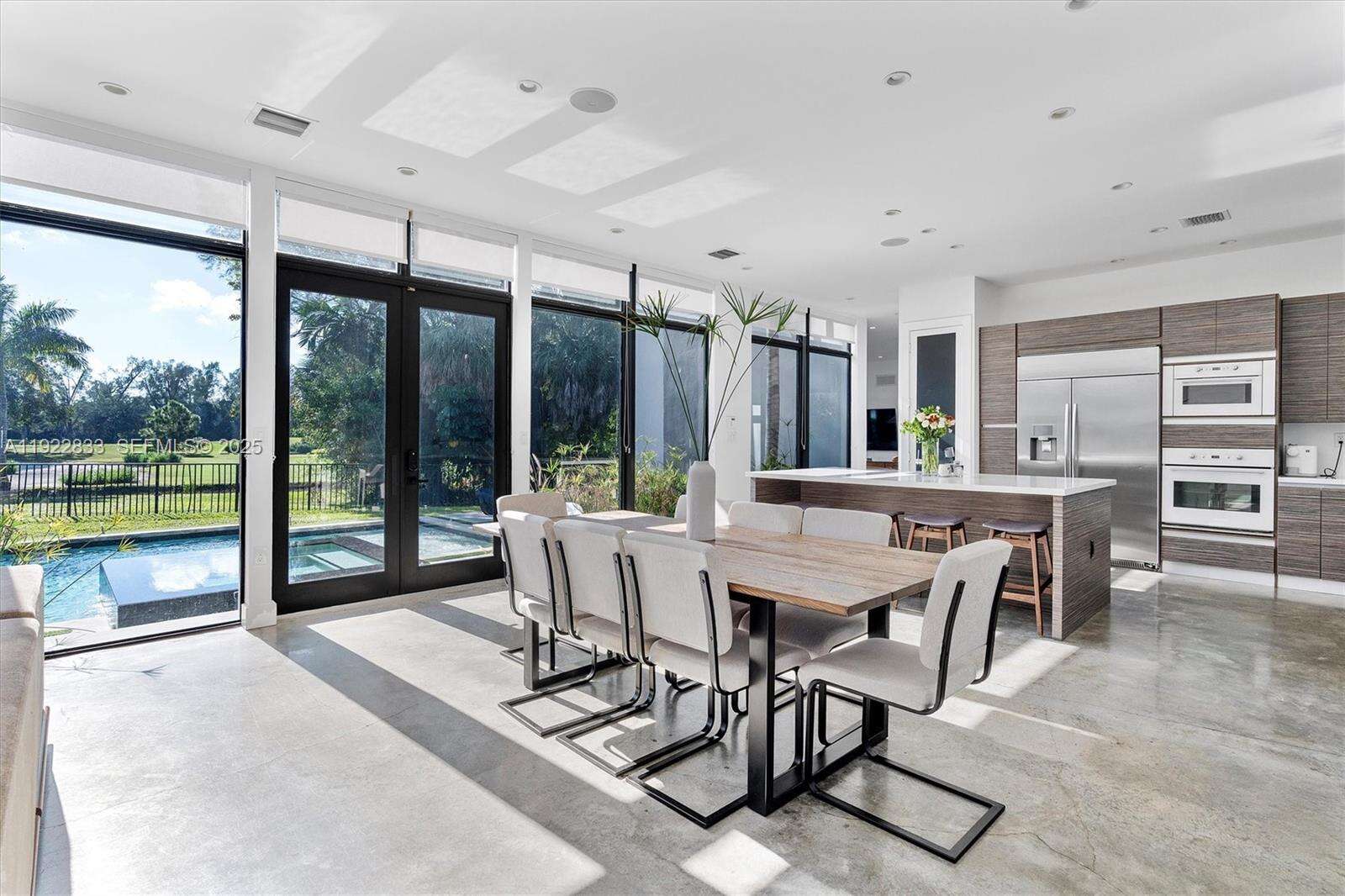 Exceptional contemporary waterfront estate in Miami Shores featuring 4BD/3.5BA in the main home plus a detached studio guest house with kitchen and bathroom. Built in 2015, this modern residence offers soaring ceilings, floor-to-ceiling glass and an open layout that blends indoor and outdoor living. Enjoy 135 ft of waterfront with direct ocean access, a zero-edge pool with infinity jacuzzi, and wide canal and golf course views. The gourmet kitchen features a large center island and quartz counters. Additional highlights include a home theatre, designer baths and 3-car garage. A true turnkey retreat in one of Miami’s most desirable neighborhoods.