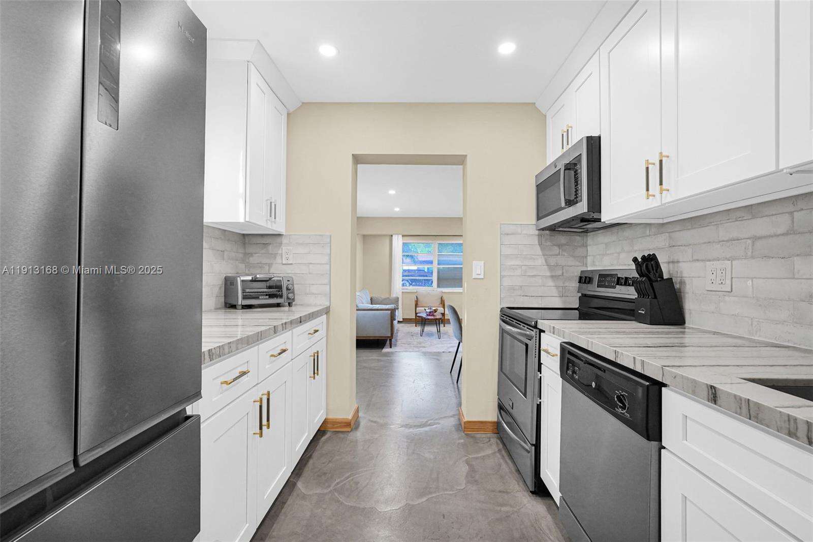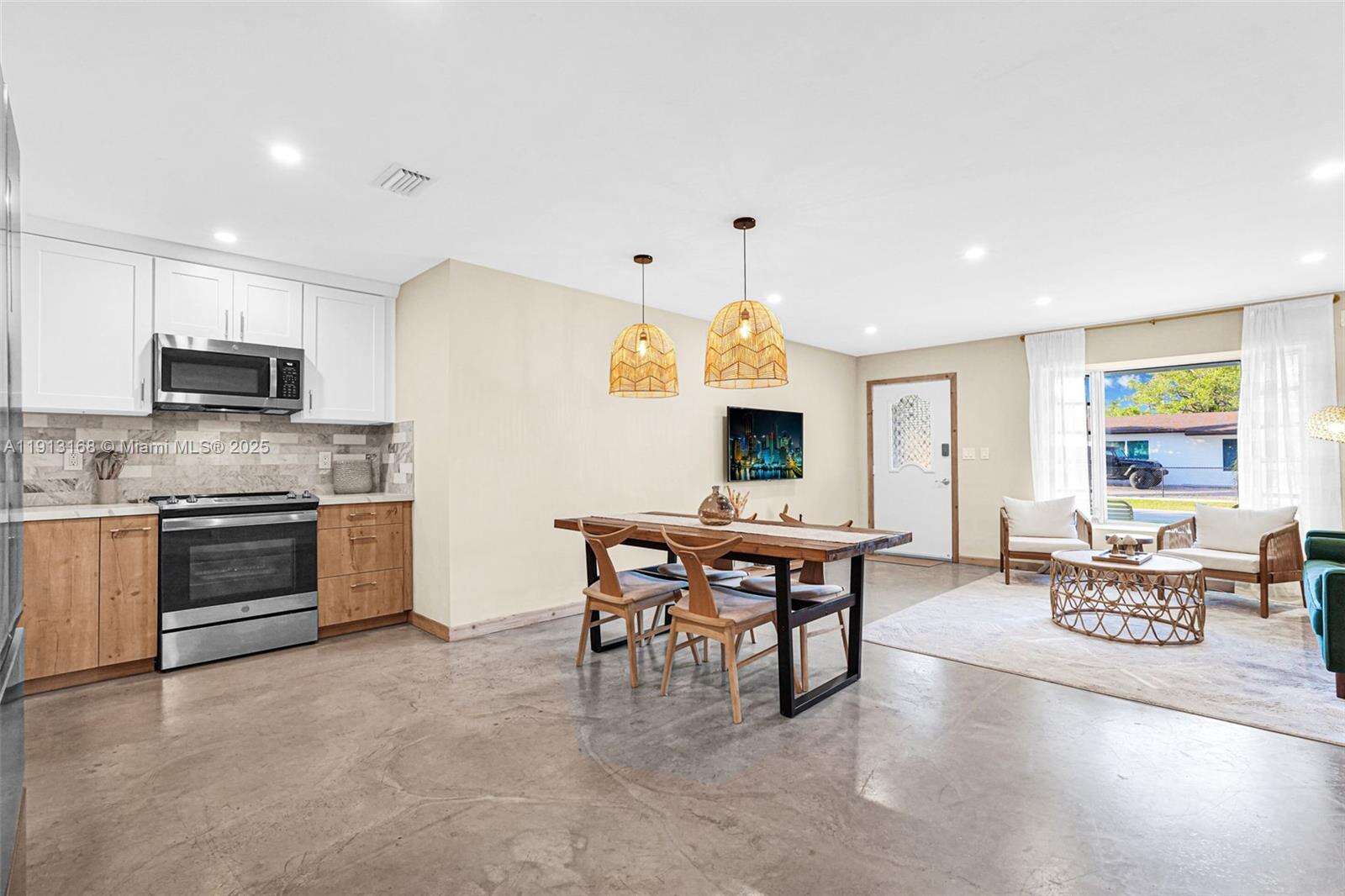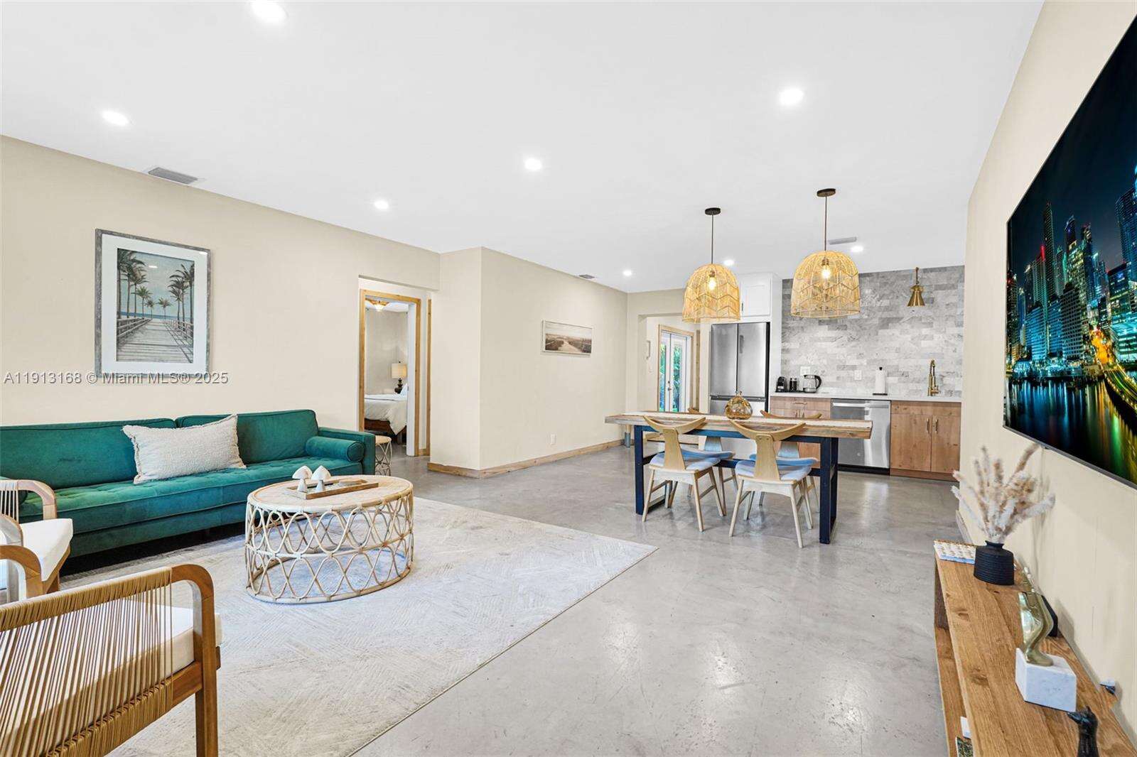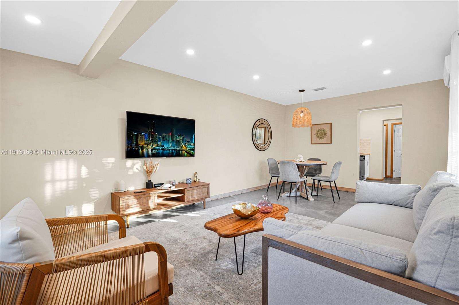 Bright, spacious, & tastefully renovated 3-BR, 2-bath home in the heart of Hallandale Beach. well-maintained property features open-floor plan with tons of natural light. Featuring Living room/dining area, 2 BR, 1 bath and kitchen. Also attached, a versatile in-law suite with a separate entrance, with its own Living Room, kitchen, 1 BR and 1 Bath. Great for guests, extra income / Airbnb. The property can be easily converted to a 4 BR / 2 Bath house. both kitchens are renovated, stainless steel appliances, quartz countertops, and ample cabinet space. All bedrooms are well sized, both bathrooms are renovated with new plumbing. The roof is 5 yrs old. new L.E.D recessed lights, and new doors. Large fenced landscaped backyard with patio and a gazebo great for relaxing & entertaining. A MUST SEE