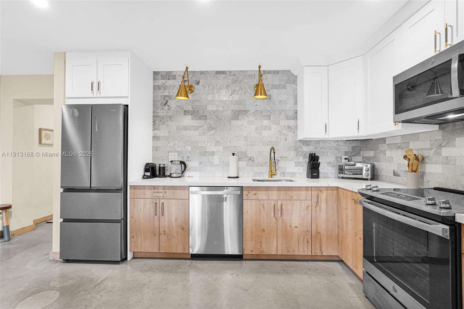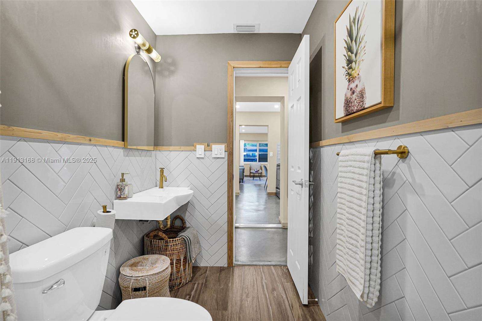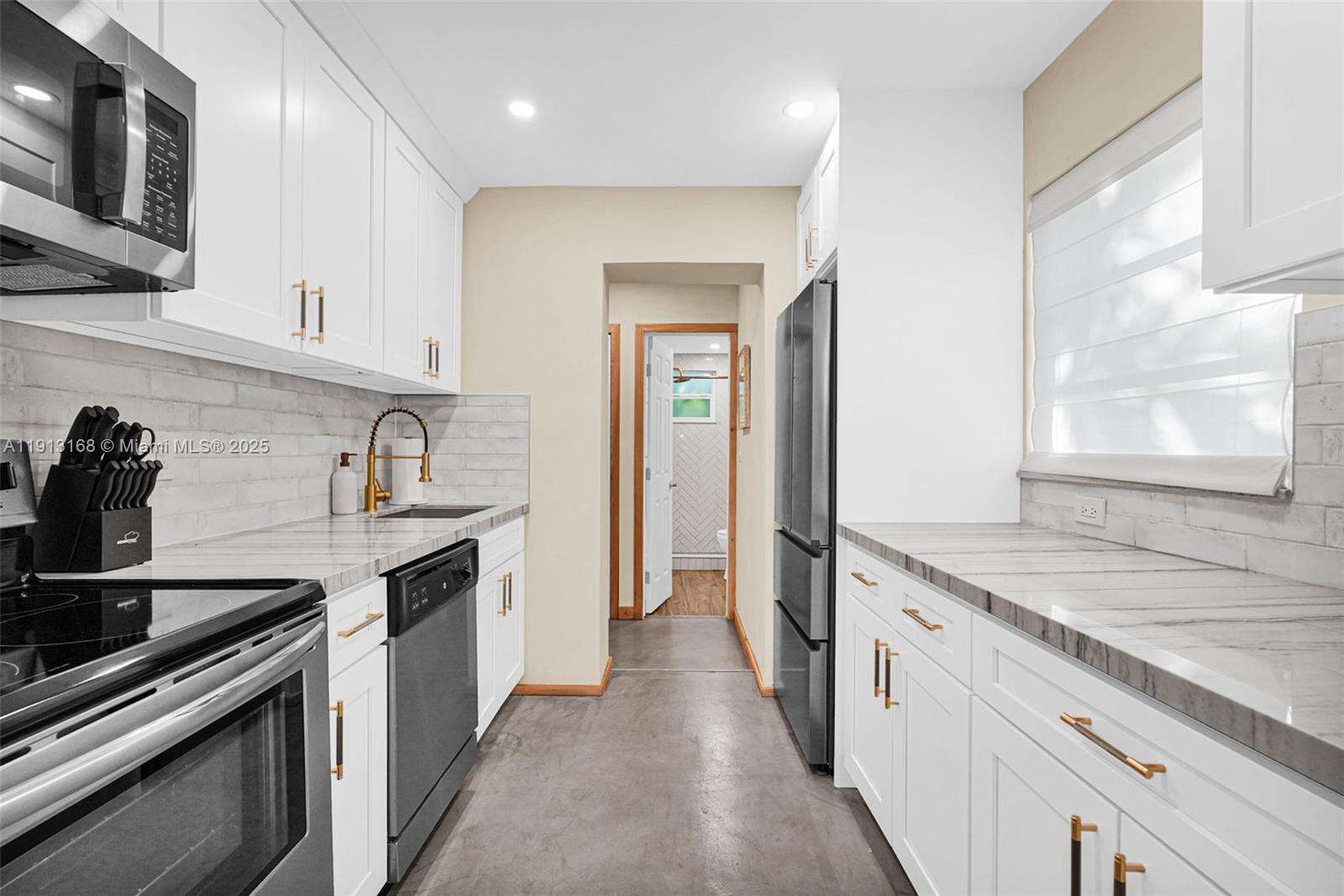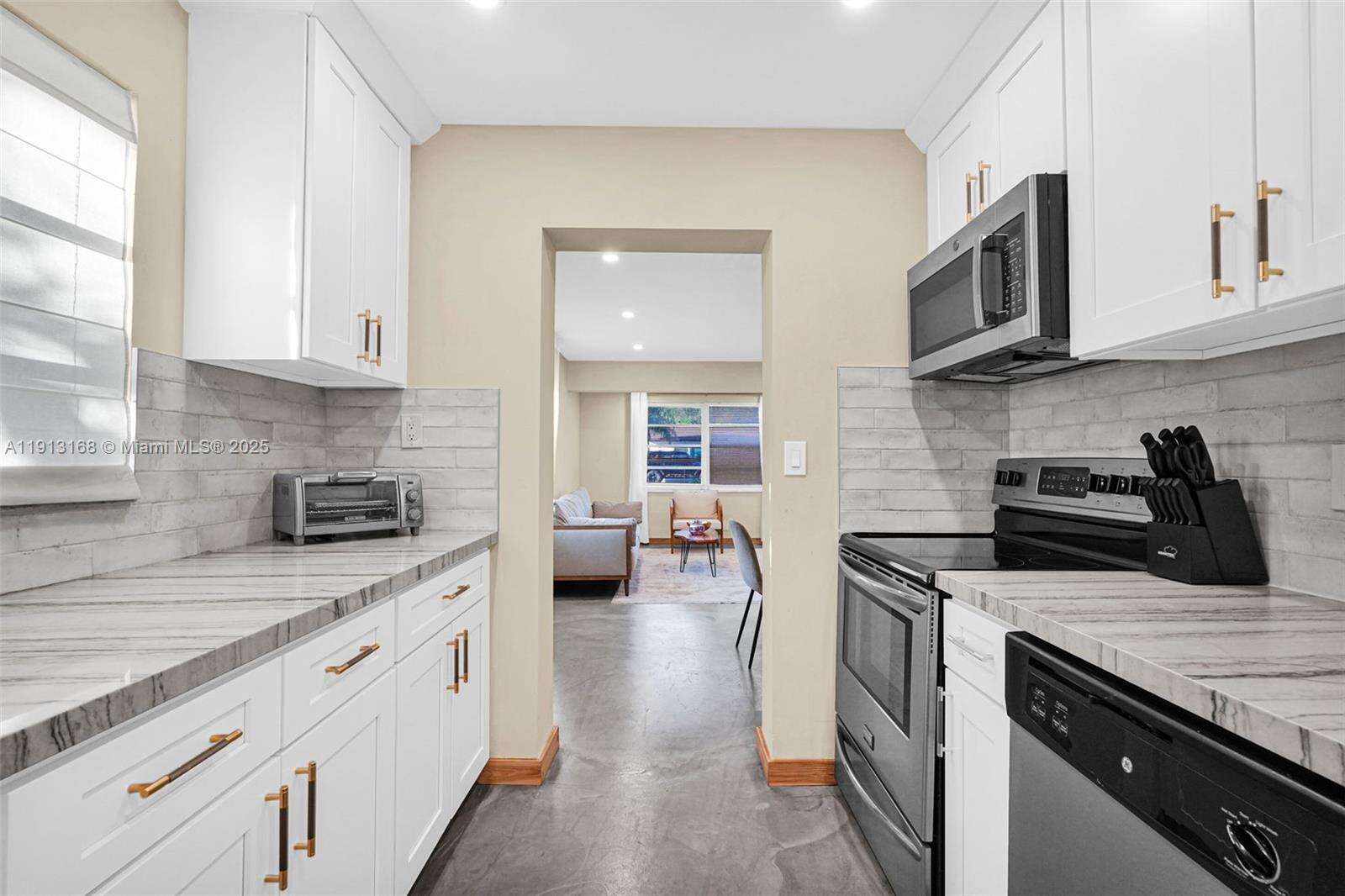 Bright, spacious, & tastefully renovated 3-BR, 2-bath home in the heart of Hallandale Beach. well-maintained property features open-floor plan with tons of natural light. Featuring Living room/dining area, 2 BR, 1 bath and kitchen. Also attached, a versatile in-law suite with a separate entrance, with its own Living Room, kitchen, 1 BR and 1 Bath. Great for guests, extra income / Airbnb. The property can be easily converted to a 4 BR / 2 Bath house. both kitchens are renovated, stainless steel appliances, quartz countertops, and ample cabinet space. All bedrooms are well sized, both bathrooms are renovated with new plumbing. The roof is 5 yrs old. new L.E.D recessed lights, and new doors. Large fenced landscaped backyard with patio and a gazebo great for relaxing & entertaining. A MUST SEE