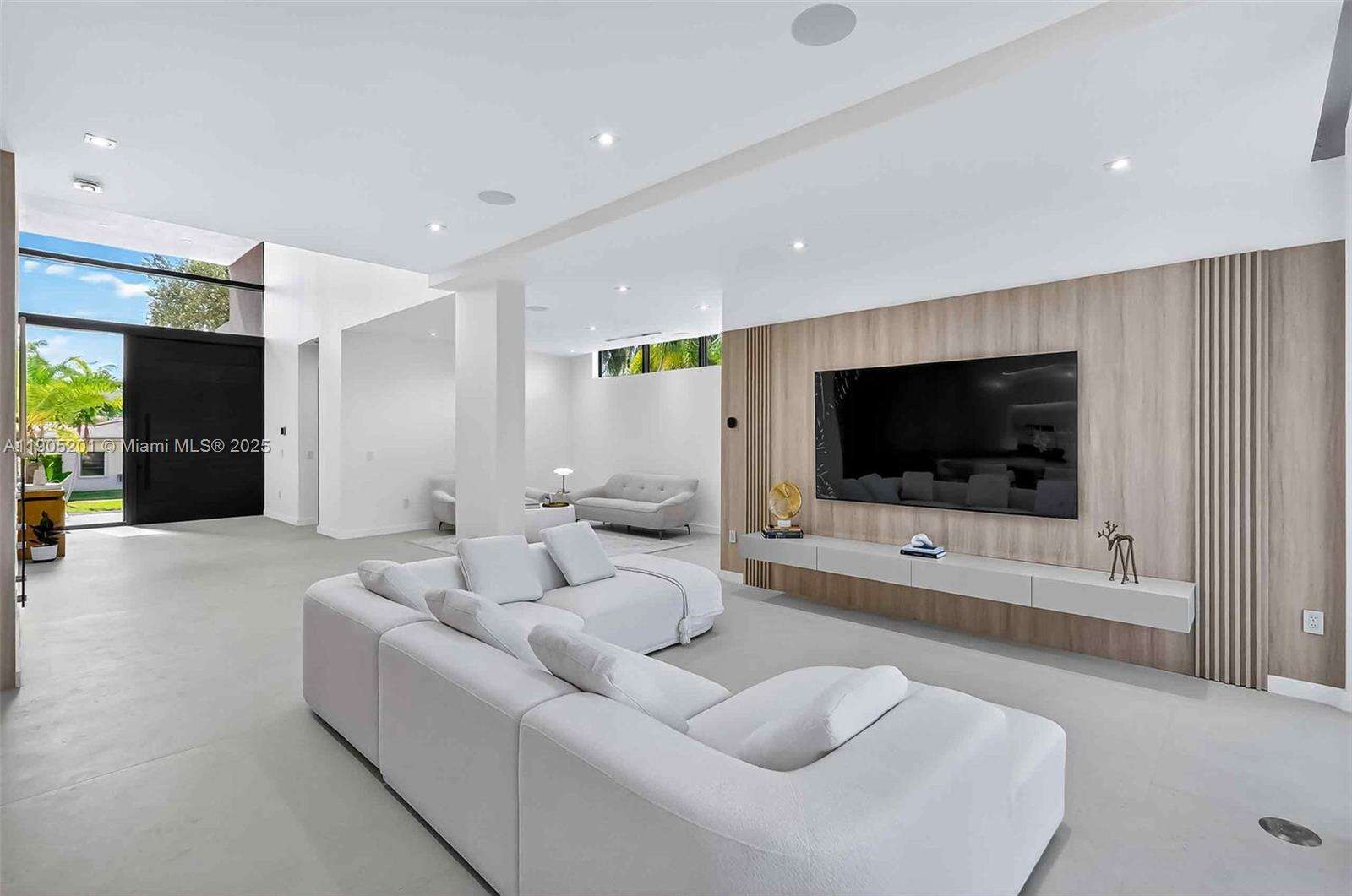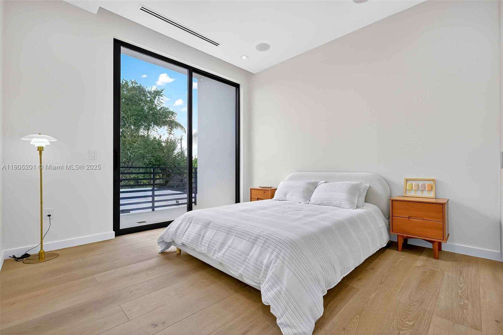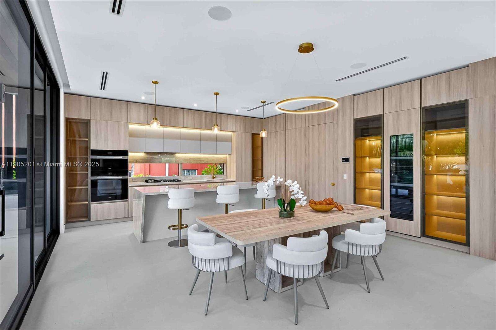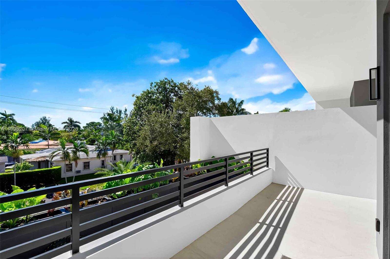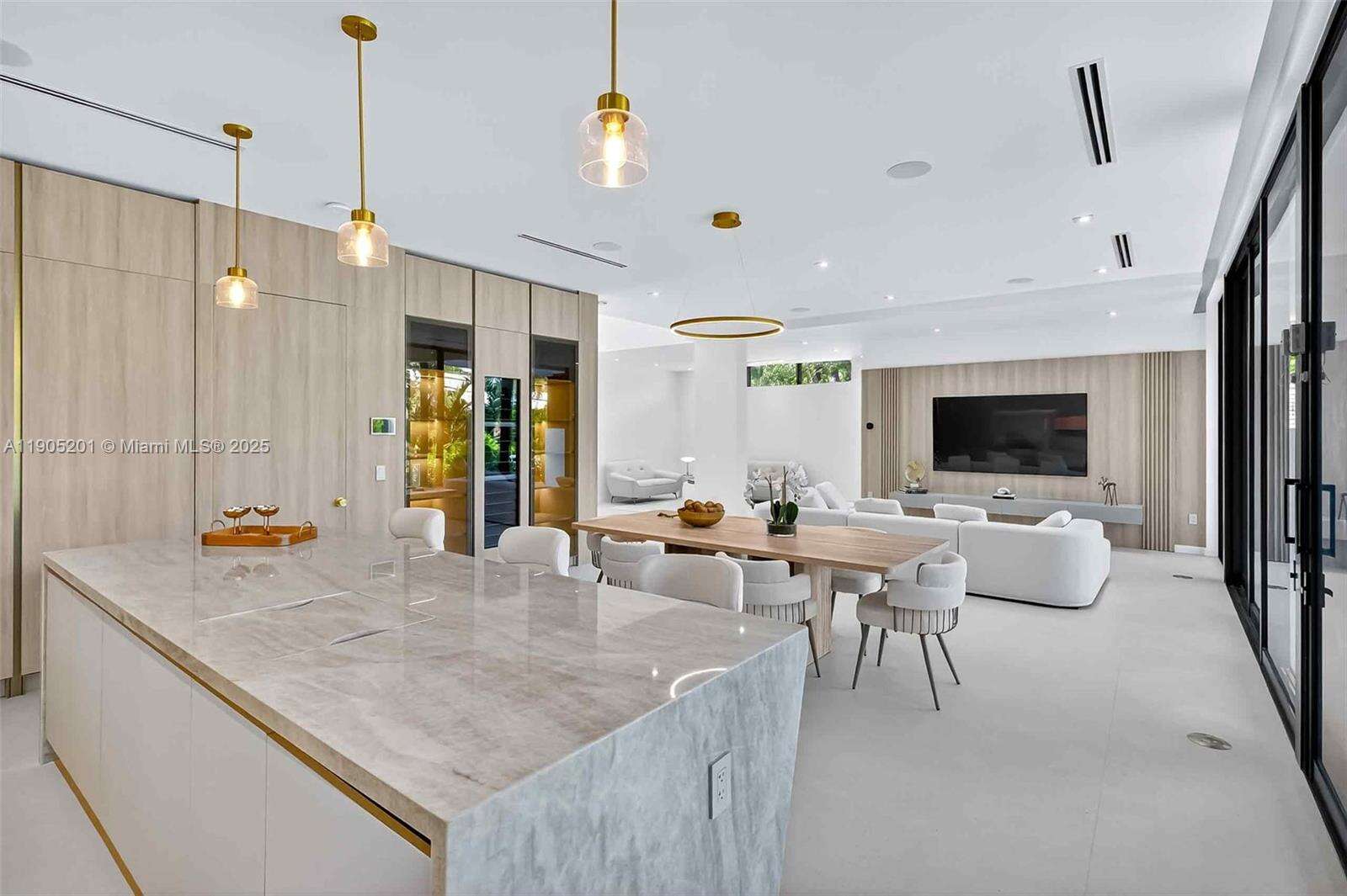 A brand-new two-level modern residence epitomizes the essence of Miami Beach living. Situated on a 7,500 sq ft lot, 3,750 sq ft under air (4,552 sq ft adjusted), featuring 5 bedrooms and 6 full designer bathrooms. Step inside through impact glass doors and windows into high ceilings, expansive living areas, and an indoor-outdoor flow. The open kitchen with top-of-the-line Miele appliances, dual kitchen sinks, wine cooler, and bespoke cabinetry. Spa-style pool, surrounded by tropical landscaping view from each bedroom balcony and an open terrace with an outdoor kitchen. This smart home integrates an automation system, controlling audio, lighting, climate, and CCTV security. A two-car covered garage adds convenience while maintaining the sleek architectural profile.