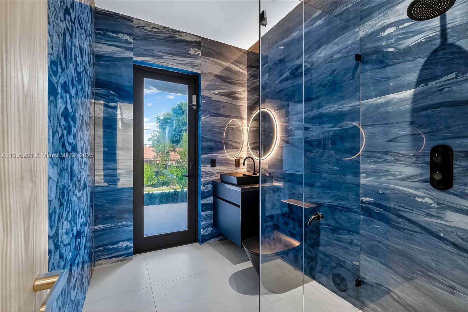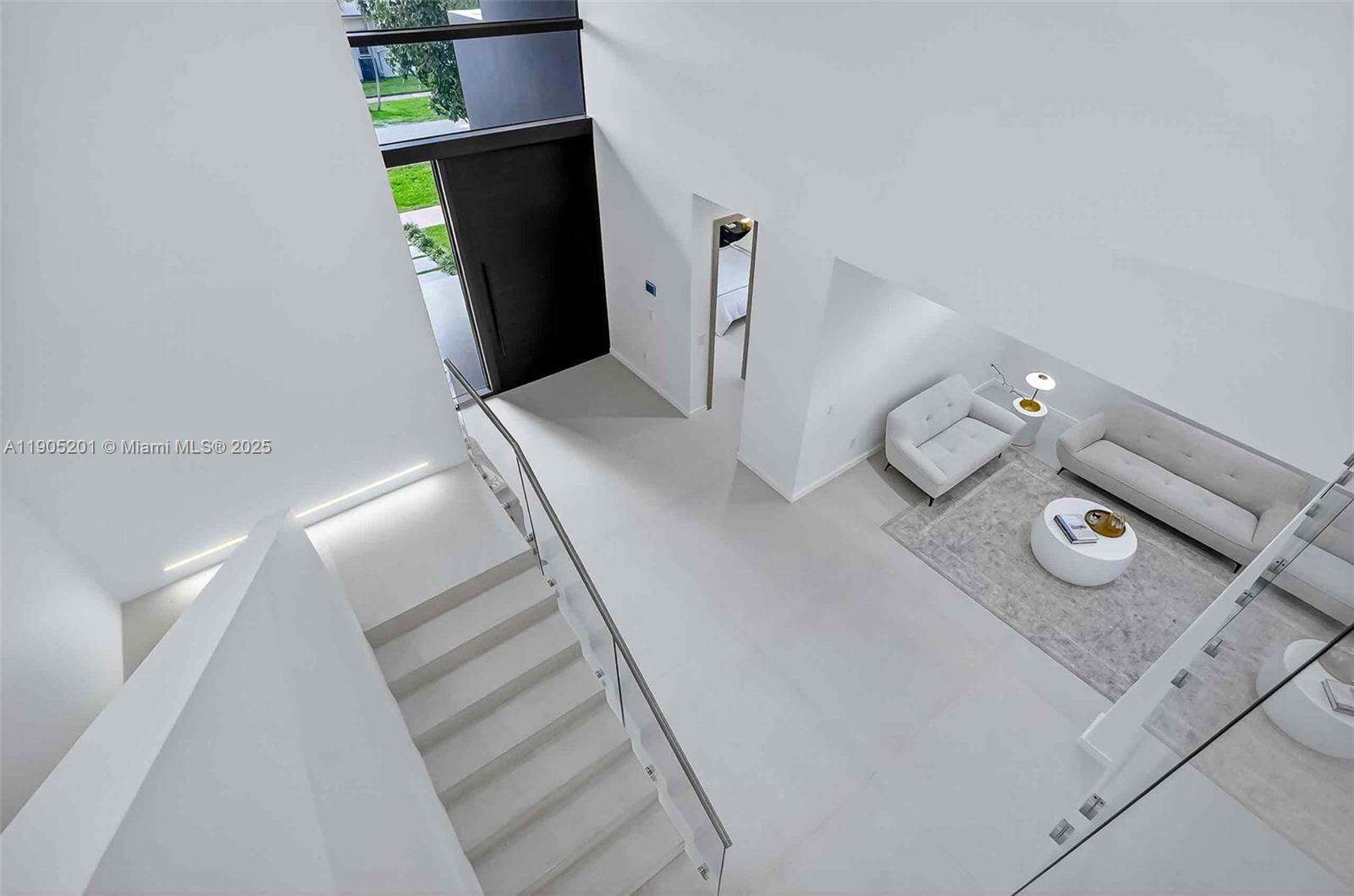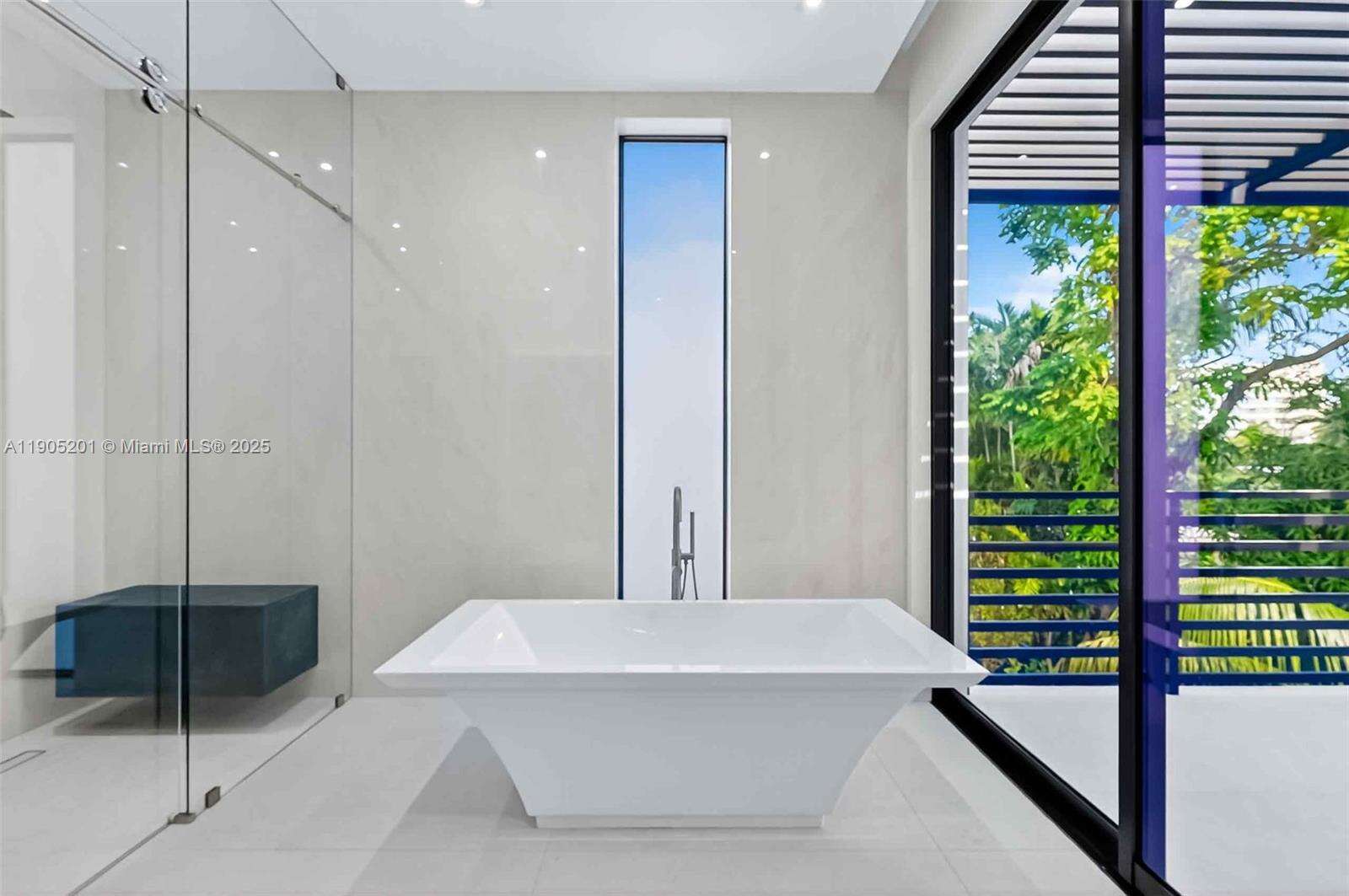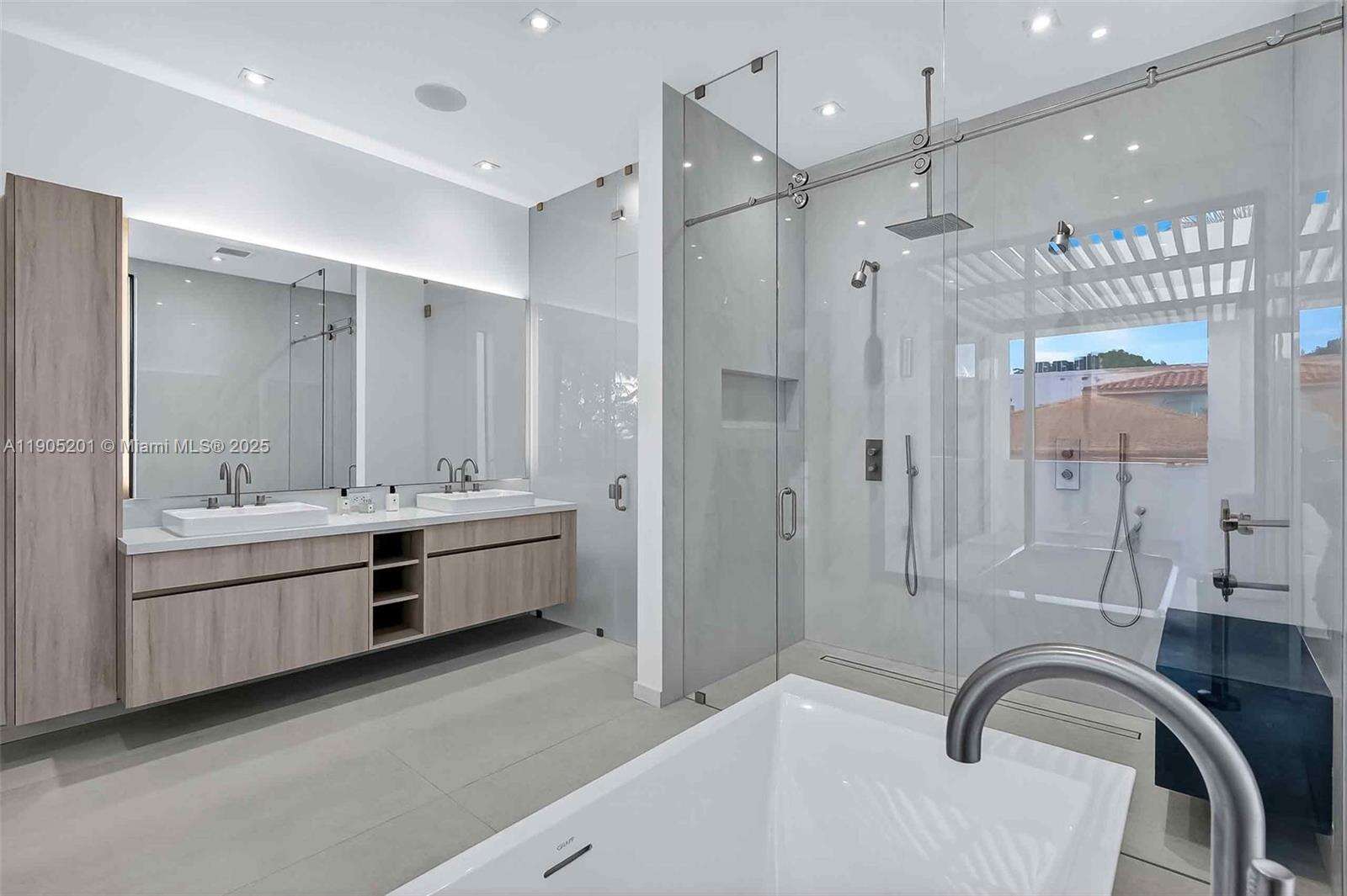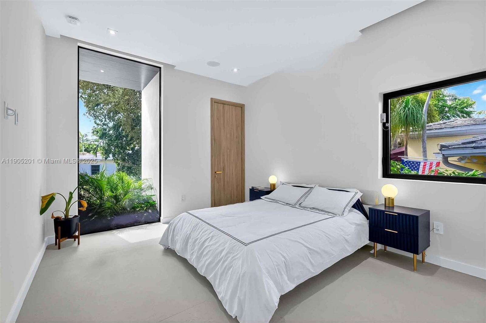 A brand-new two-level modern residence epitomizes the essence of Miami Beach living. Situated on a 7,500 sq ft lot, 3,750 sq ft under air (4,552 sq ft adjusted), featuring 5 bedrooms and 6 full designer bathrooms. Step inside through impact glass doors and windows into high ceilings, expansive living areas, and an indoor-outdoor flow. The open kitchen with top-of-the-line Miele appliances, dual kitchen sinks, wine cooler, and bespoke cabinetry. Spa-style pool, surrounded by tropical landscaping view from each bedroom balcony and an open terrace with an outdoor kitchen. This smart home integrates an automation system, controlling audio, lighting, climate, and CCTV security. A two-car covered garage adds convenience while maintaining the sleek architectural profile.