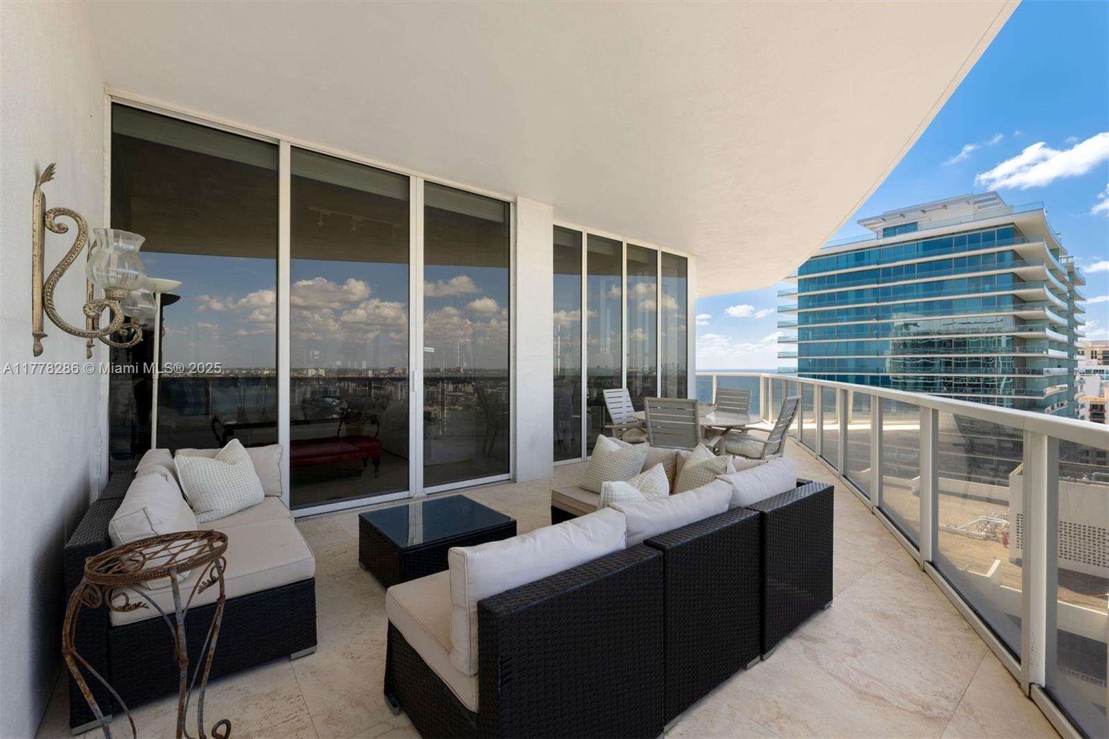 Experience sweeping views of the Intracoastal and Atlantic Ocean from this bright, flow-through residence at Bellini Bal Harbour. Perched on the sought-after southwest corner at an ideal height, clearing the building to the south — offering rare, uninterrupted views that are uniquely available from this line. Floor-to-ceiling windows and a spacious layout create a seamless indoor-outdoor flow. The open kitchen features a large island, custom cabinetry, and high-end appliances. A wraparound terrace, oversized bedrooms, and a generous primary suite with water views complete the home. Bellini offers an oceanfront pool, spa, fitness center, concierge, and valet—all in the heart of Bal Harbour near world-class shopping and dining.