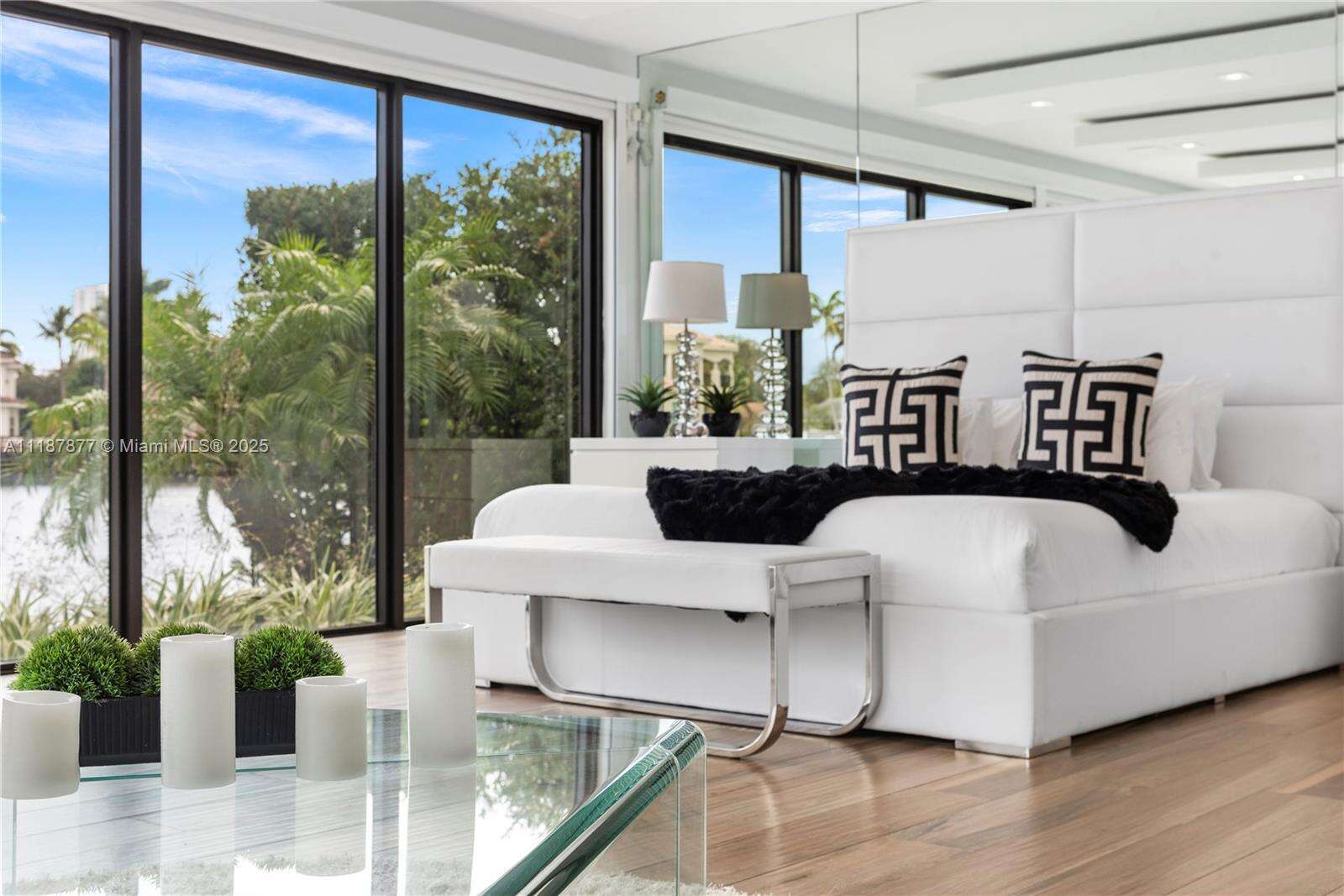 This stunning, modern waterfront mansion overlooks a wide water frontage of 90 feet views and features a private dock with boat lift. Mesmerizing floor-to-glass windows throughout home with direct waterfront from every angle, this residence is with completely updated and modern bathrooms and bedrooms. State of the art lighting, Control4 Systems, a private gate etc. This home is an entertainer's dream backyard with California kitchen and bar area with pool and waterfall jacuzzi. Custom finishes and interiors, stainless steel appliances, gourmet Italian kitchen with island seating to accommodate. This home is a seasonal home and pricing does vary based on availability. (Shorter Terms Available). Pricing fluctuates based on season and month. Proof of funds is required for access.