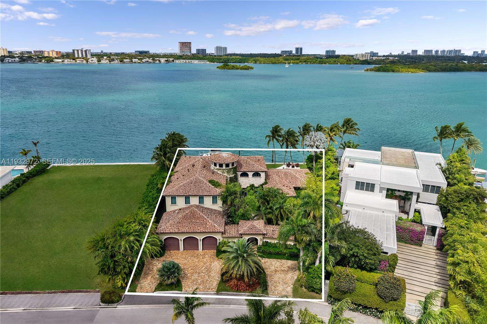 Once-in-a-lifetime opportunity to own the crown-jewel point estate in Bay Harbor. This iconic Mediterranean three-story waterfront residence sits on a spectacular point with wide-open bay views and exceptional privacy. Featuring an interior elevator, approximately 9,000 square feet of interior living space (public records reflect a different figure), seven bedrooms including staff quarters, eight full bathrooms plus two powder rooms, a private theatre room, and a hidden bar seamlessly integrated into the main living area, the home offers expansive indoor-outdoor living and a dramatic arrival. A five-car garage complements the estate’s resort-style grounds, which include a serene koi pond—ideal for both grand entertaining and quiet retreat. A rare offering with endless potential to enjoy as-is or reimagine into a legacy waterfront estate.