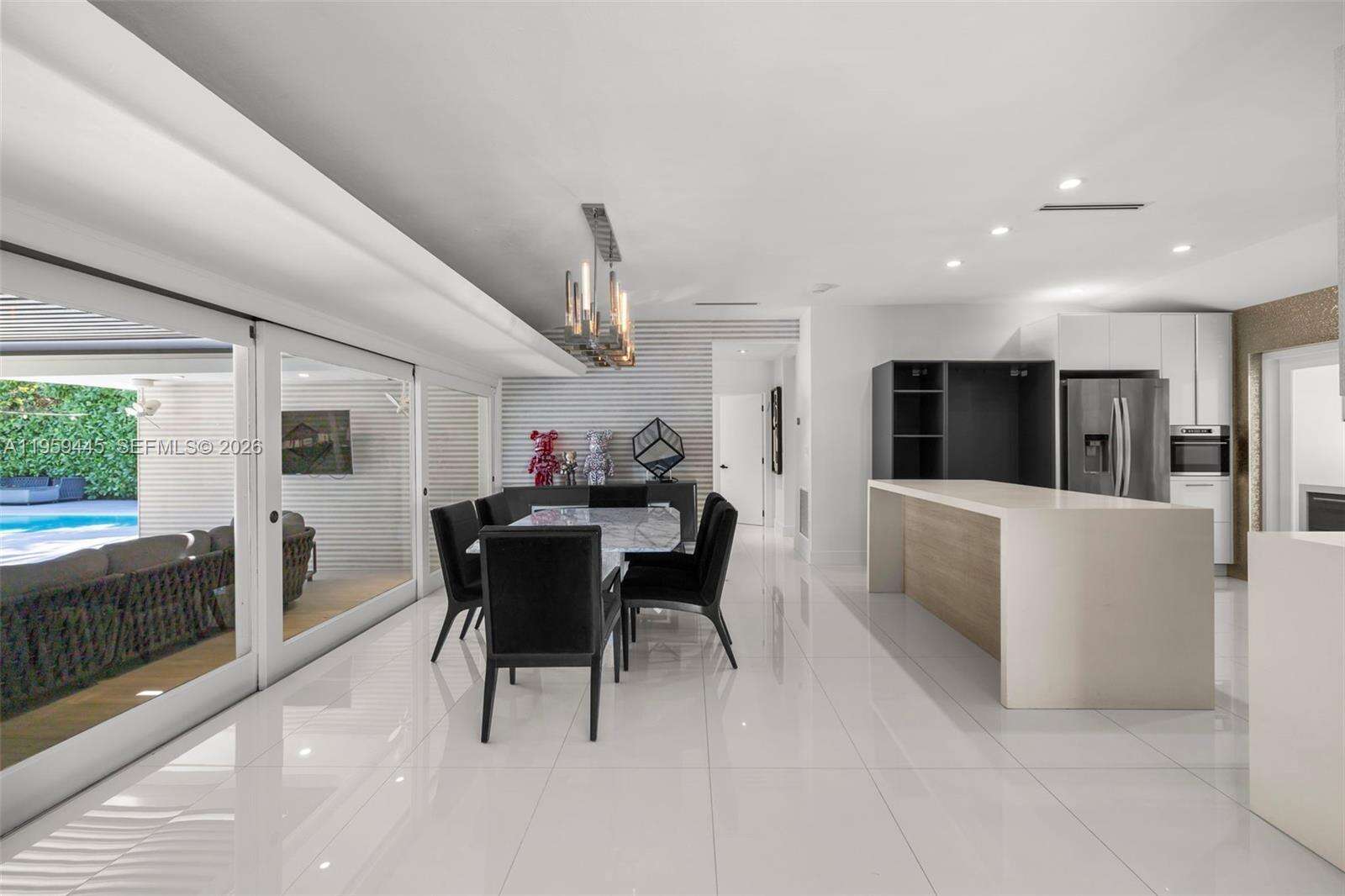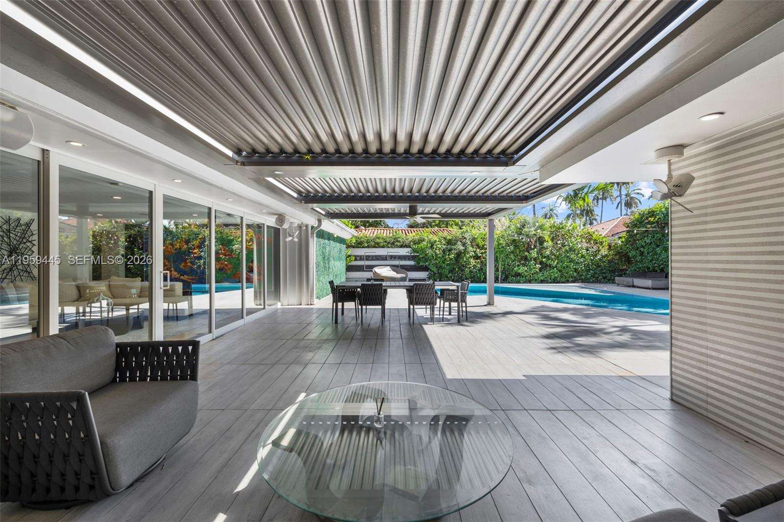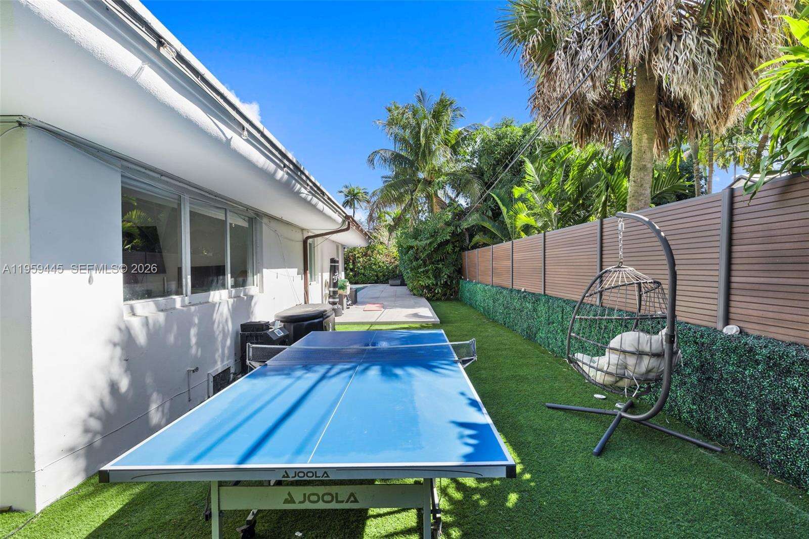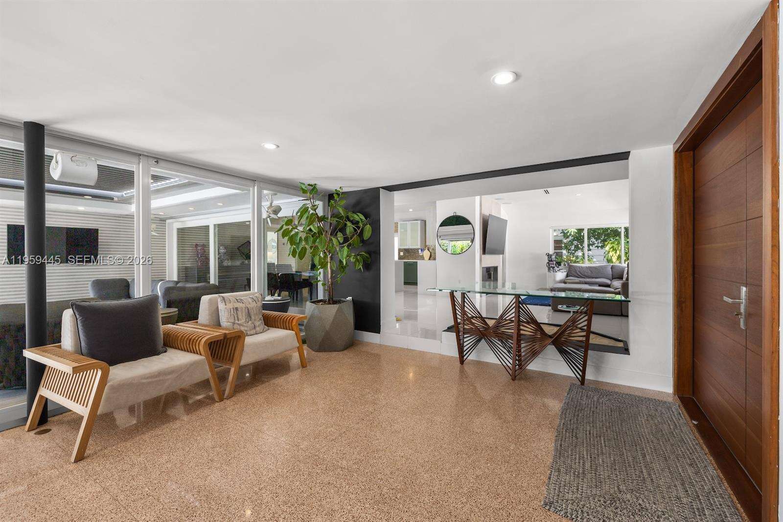 Designed with entertaining in mind, this beautifully upgraded home offers the ultimate South Florida lifestyle. Located at 1040 NE 86th St, this extensively renovated residence offers 2,988 SF of thoughtfully designed living space, featuring 2 bedrooms and 3 bathrooms. Blending timeless design with modern upgrades, the home showcases terrazzo and white tile flooring throughout. The spacious and functional layout is ideal for both comfortable daily living and hosting guests. A dedicated entertainment room serves as a standout feature, complete with a fully customized wet bar, creating the perfect space for gatherings and celebrations. The spacious primary suite is thoughtfully designed with two custom walk-in closets, a fingerprint-access automatic door lock for added security, and sliding glass doors offering direct access to the backyard retreat. Designed to embrace South Florida’s indoor-outdoor lifestyle, the outdoor space features a saltwater pool, covered lounge areas, new patio stonework, astroturf landscaping, and updated fencing. Integrated surround sound speakers extend throughout both the interior and exterior of the home, creating a seamless entertainment experience. Additional highlights include a two-car covered garage, a laundry room conveniently located just off the kitchen, a full security camera system, and high-impact windows for enhanced safety and peace of mind.