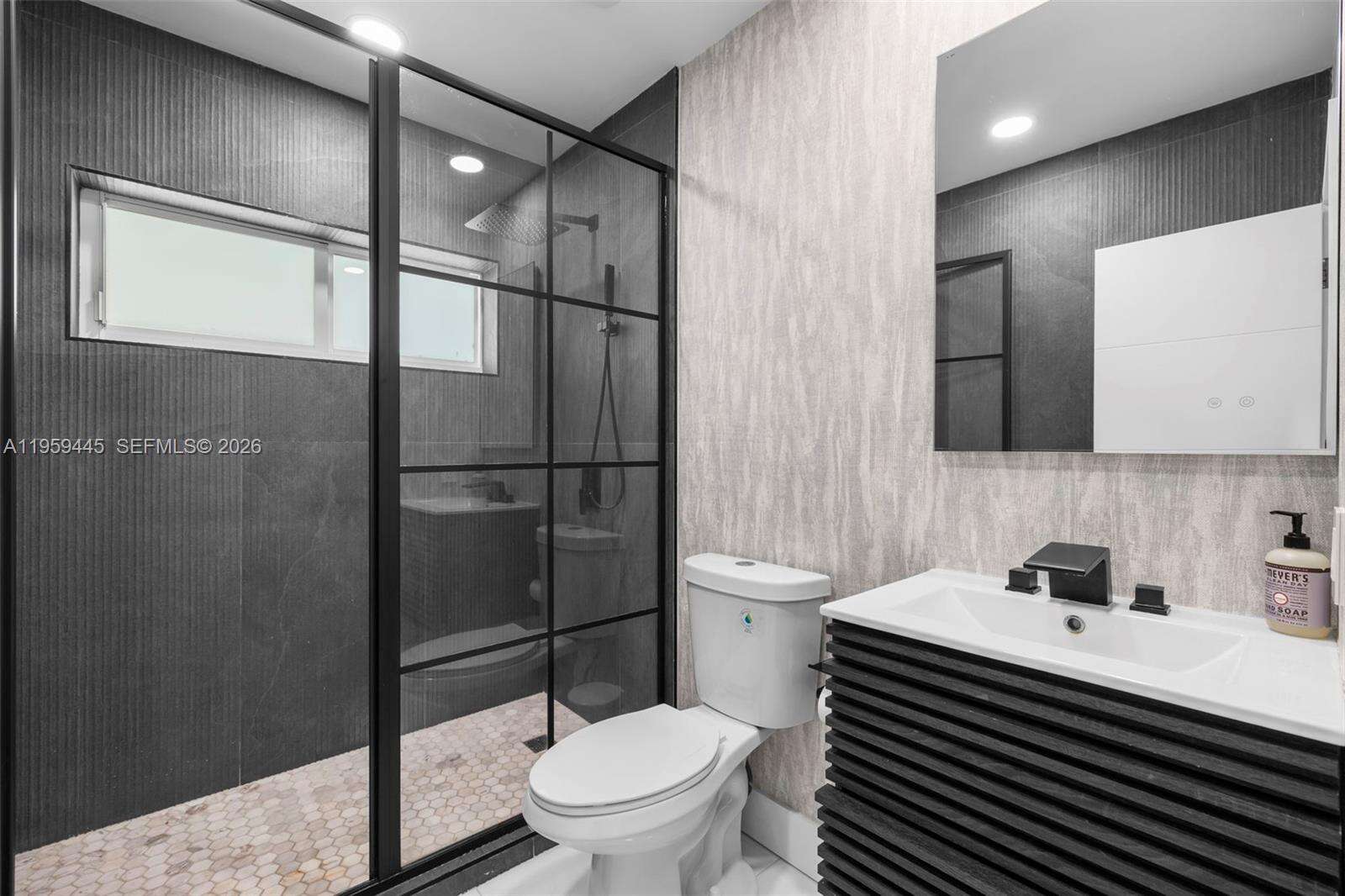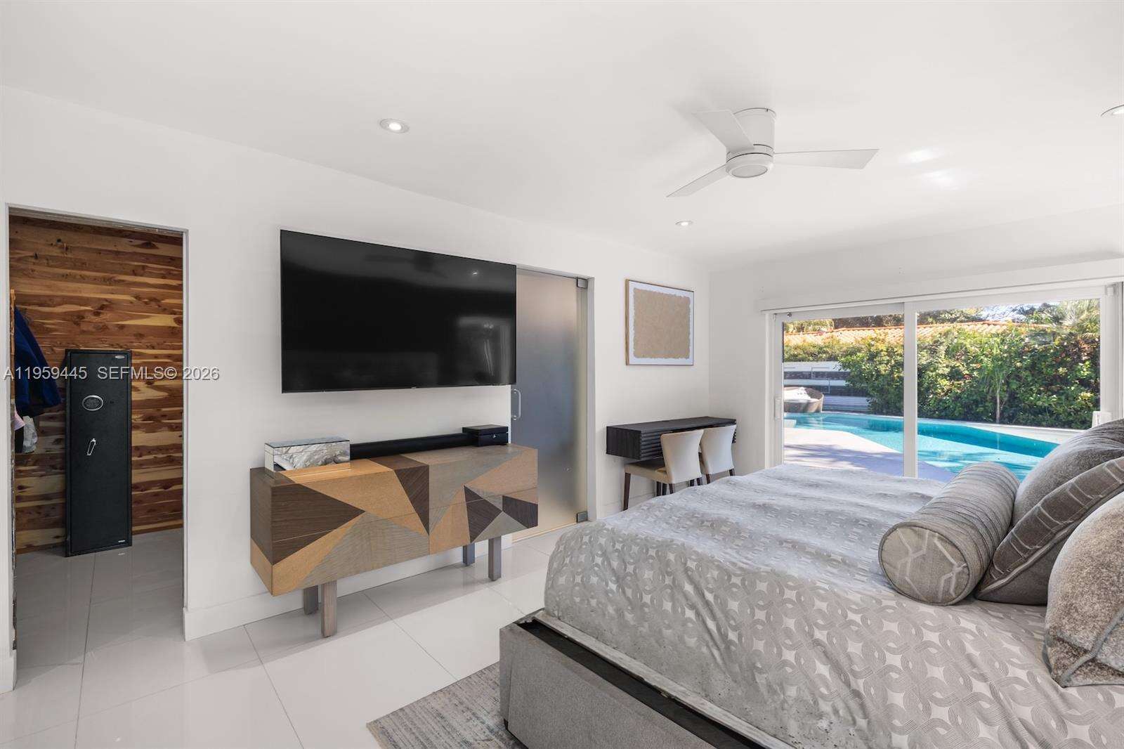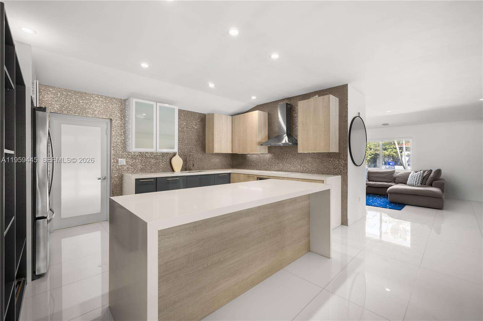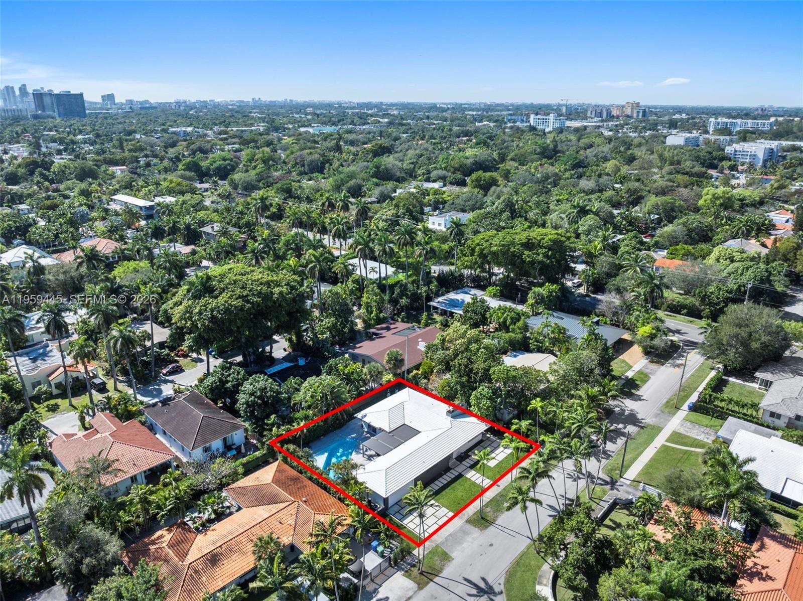 Designed with entertaining in mind, this beautifully upgraded home offers the ultimate South Florida lifestyle. Located at 1040 NE 86th St, this extensively renovated residence offers 2,988 SF of thoughtfully designed living space, featuring 2 bedrooms and 3 bathrooms. Blending timeless design with modern upgrades, the home showcases terrazzo and white tile flooring throughout. The spacious and functional layout is ideal for both comfortable daily living and hosting guests. A dedicated entertainment room serves as a standout feature, complete with a fully customized wet bar, creating the perfect space for gatherings and celebrations. The spacious primary suite is thoughtfully designed with two custom walk-in closets, a fingerprint-access automatic door lock for added security, and sliding glass doors offering direct access to the backyard retreat. Designed to embrace South Florida’s indoor-outdoor lifestyle, the outdoor space features a saltwater pool, covered lounge areas, new patio stonework, astroturf landscaping, and updated fencing. Integrated surround sound speakers extend throughout both the interior and exterior of the home, creating a seamless entertainment experience. Additional highlights include a two-car covered garage, a laundry room conveniently located just off the kitchen, a full security camera system, and high-impact windows for enhanced safety and peace of mind.