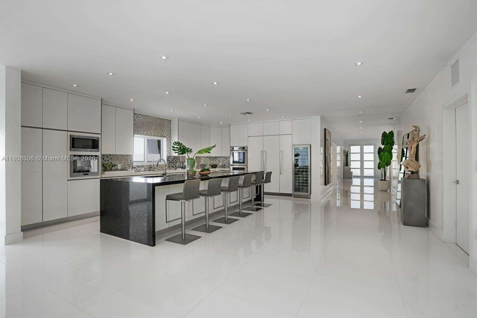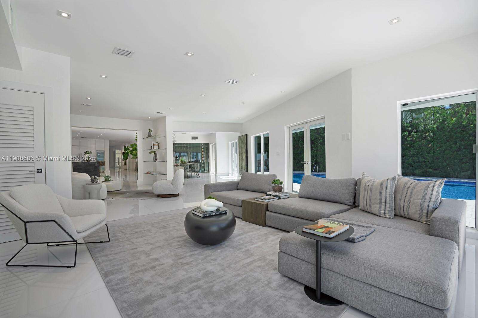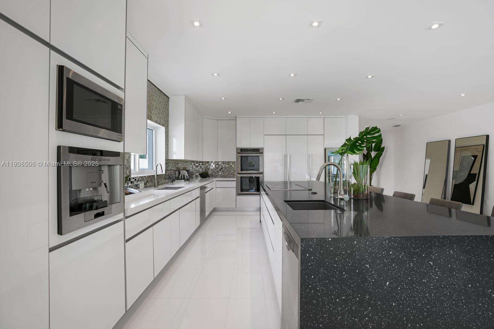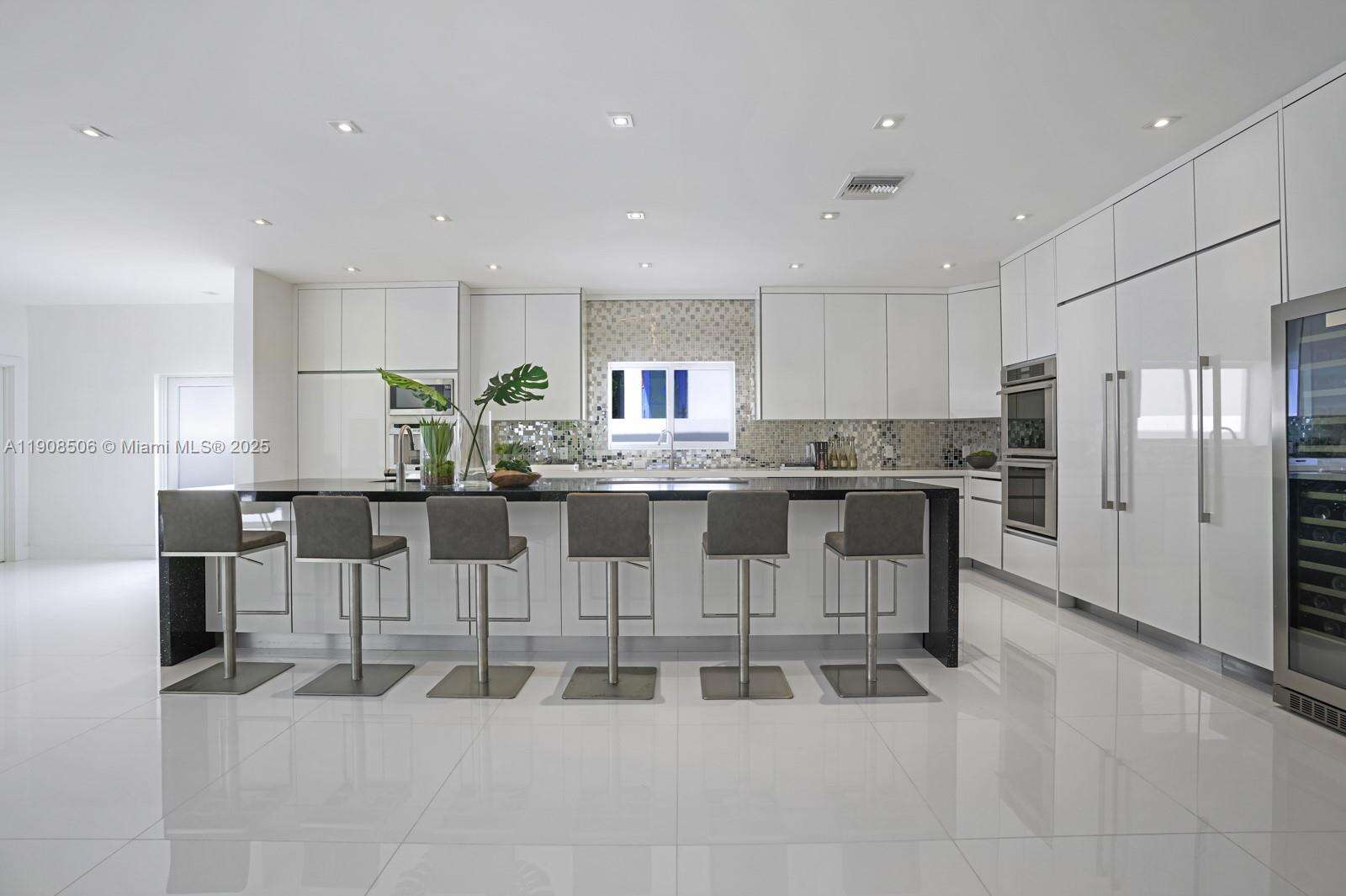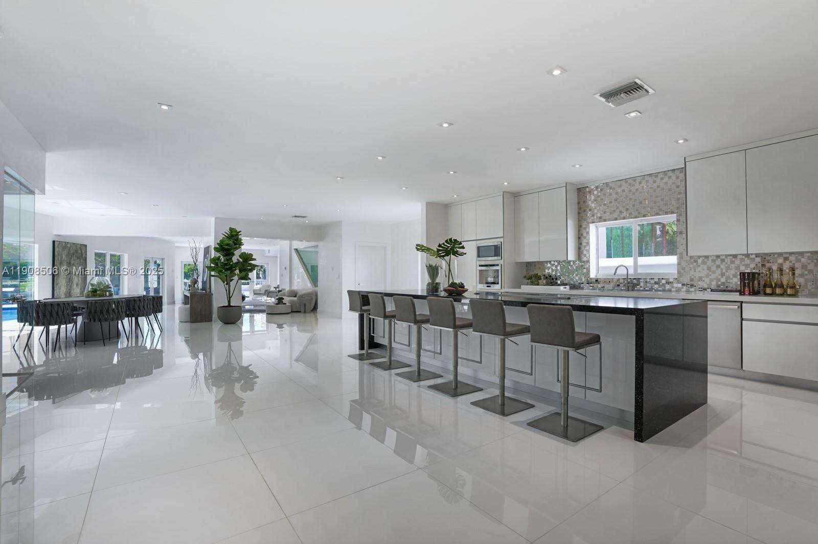 Your dream home awaits in Normandy Isles! Magnificent waterfront home in guard-gated Community, walking distance from the golf course. Stunning contemporary architecture, 2 estoy, this home features 6 BR 5 + 1 B, open flow dining and living room layout. White glass time Floor throughout, modernizador chef's kitchen with top of the line Thermador appliances, a magnificente Wine room with glass walls. Hurricane impactada windows and doors. A espacios 2nd Floor master suite with direct views to the Bay, large walk-in close and master bathroom. Private 60 foot dock. This home is a must see!