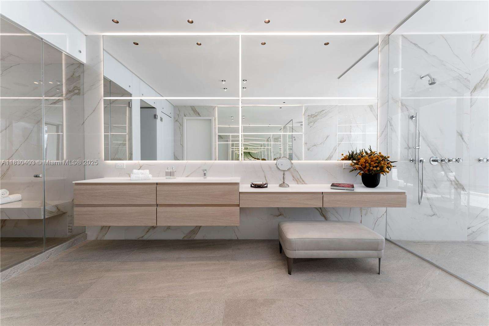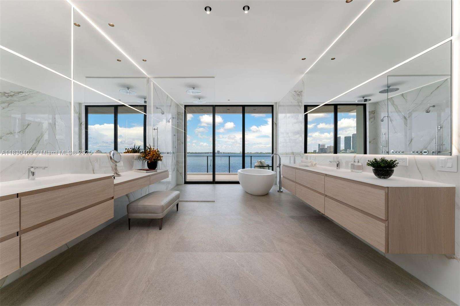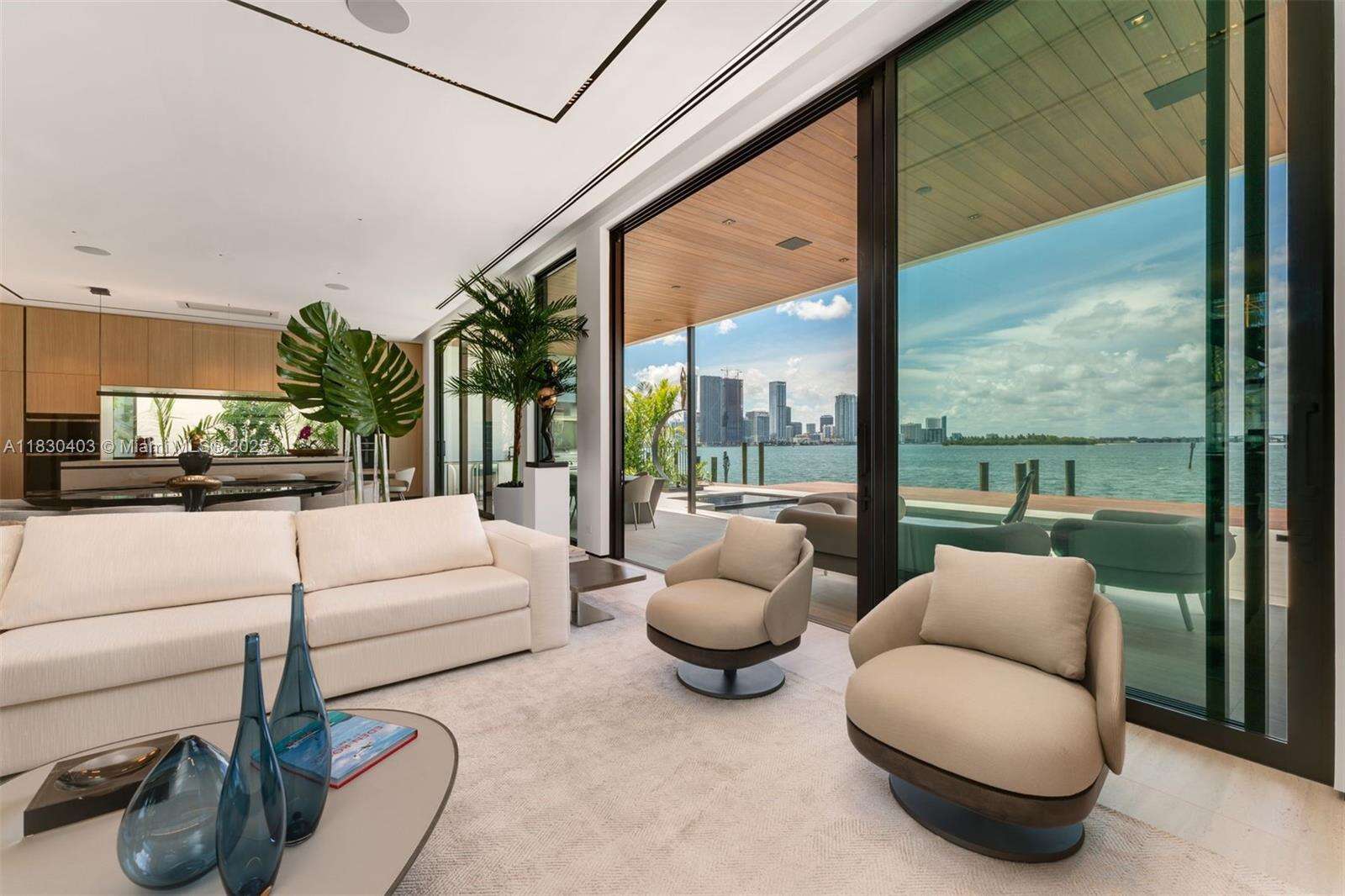 Experience luxury living in this extraordinary waterfront home in the Venetian Islands. This 6,370 sqft A/C, 9,785 sqft total space architectural gem features 6 bedrooms and 7.5 bathrooms, blending modern style with timeless elegance. Enjoy panoramic bay and skyline views that flood each room with natural light. A custom Italian kitchen offers premium Wolf & Sub-Zero appliances, wine cellar, and Porsche Technology lighting. Soaring double-height ceilings create spacious living areas perfect for entertaining. Outdoors features a summer kitchen, heated pool, and 60 ft of water frontage. Located on a quiet cul-de-sac. Built by Insignia Construction Company and developed by The Boschetti Group.