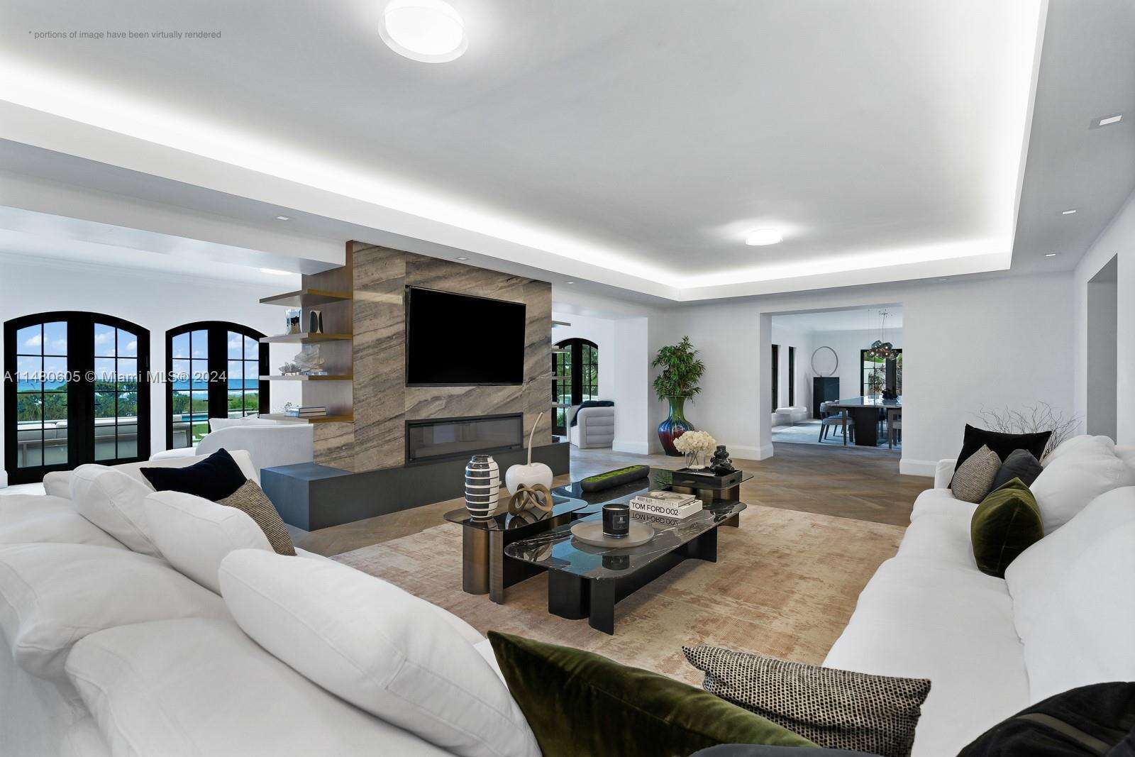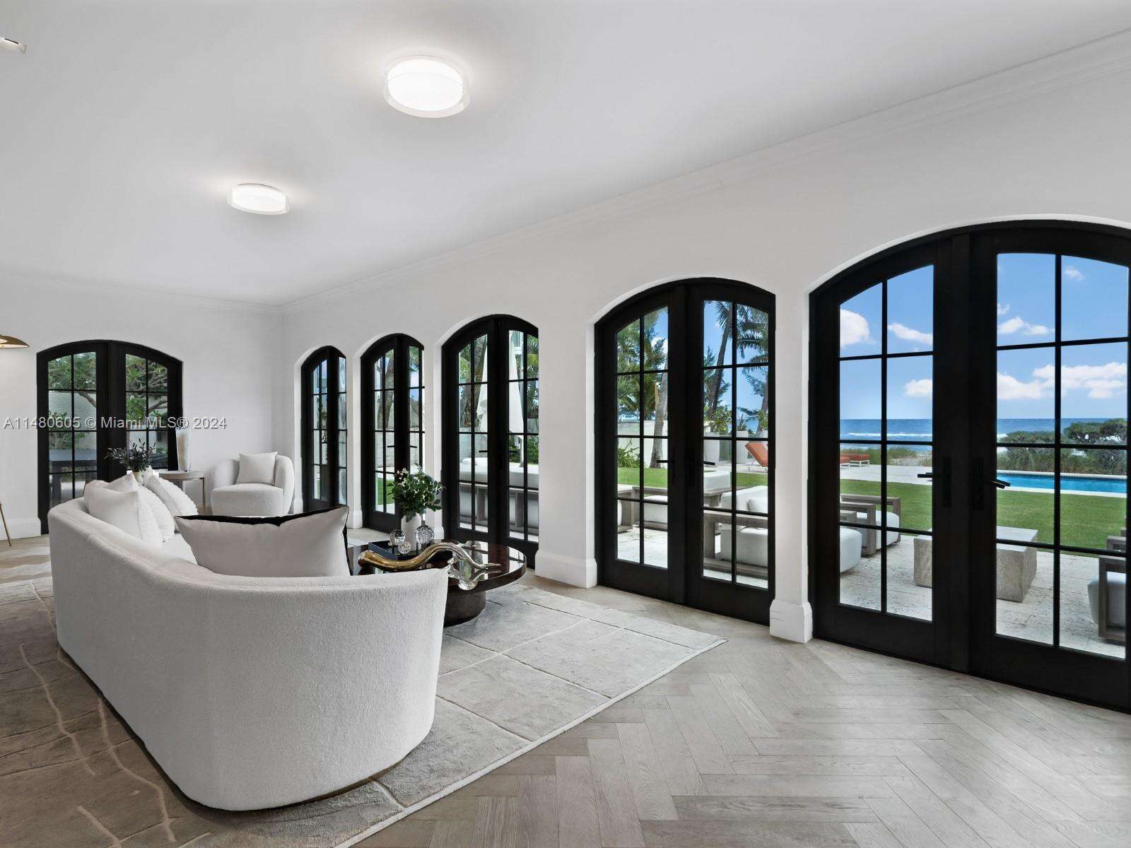 Step Inside With Me! A beachfront compound on the sands of prestigious Golden Beach. This magnificent property is comprised of a main house, guest house & secondary residence. Positioned along 207 FT of linear ocean frontage, it spans a total of 3 structures, 10 beds & 18 baths for a total of 13,323 SF interiors. Numerous hosting areas include an ocean-facing salon & grand dining room, multiple contemporary kitchens, a fireplace lounge, gym & game room. The primary offers a sitting room, luxurious bath + walk-in closet, and terrace with sunrise & sea breezes. The 60,486 SF of grounds feature a resort style pool, outdoor dining & lounge seating, cabana baths and lush greenspace. Golden Beach is renowned for 1.8 miles of private beaches, its own police force, beach pavilion & tennis courts.