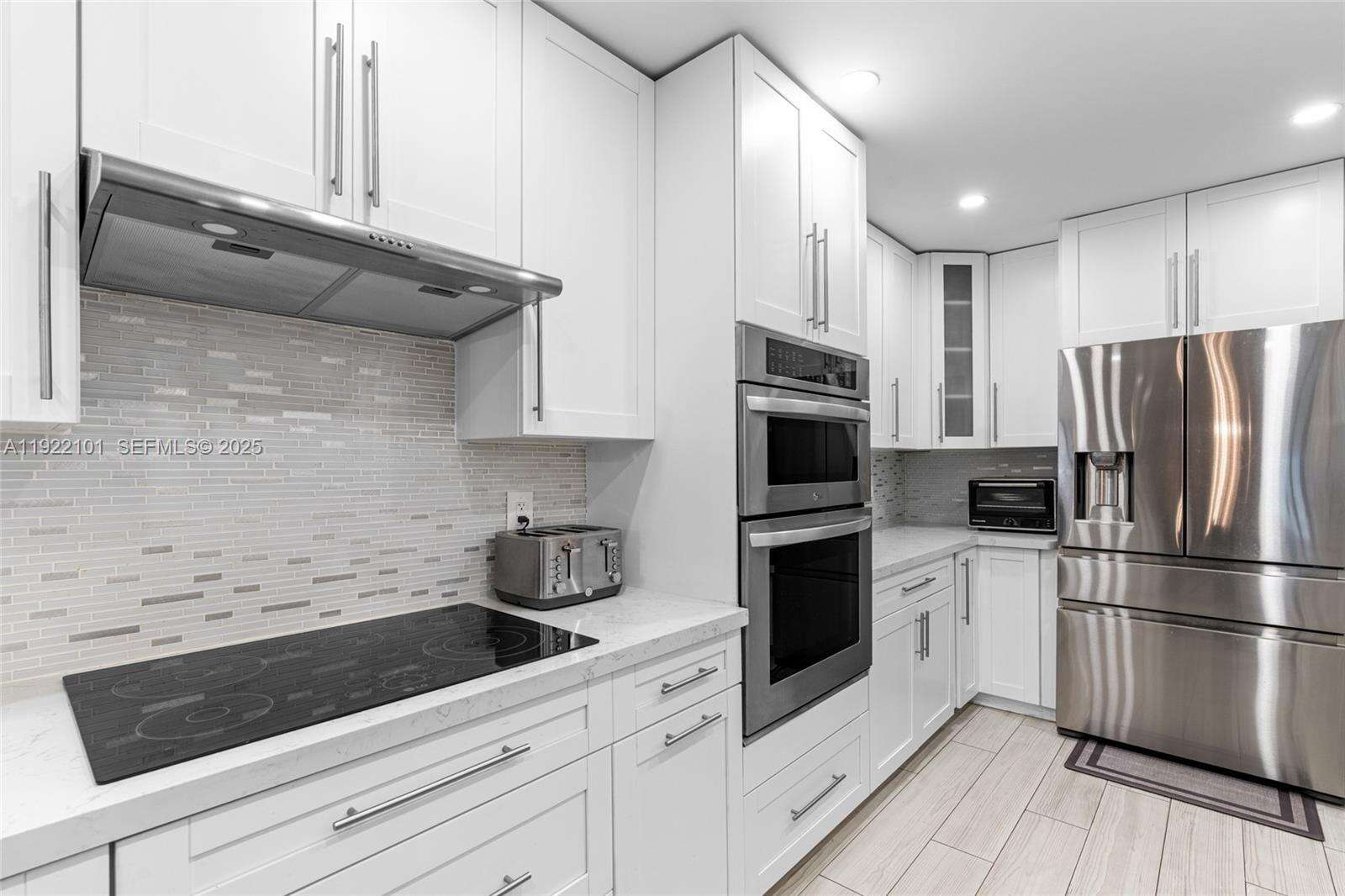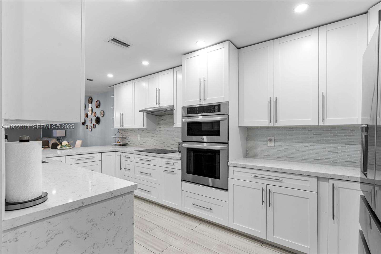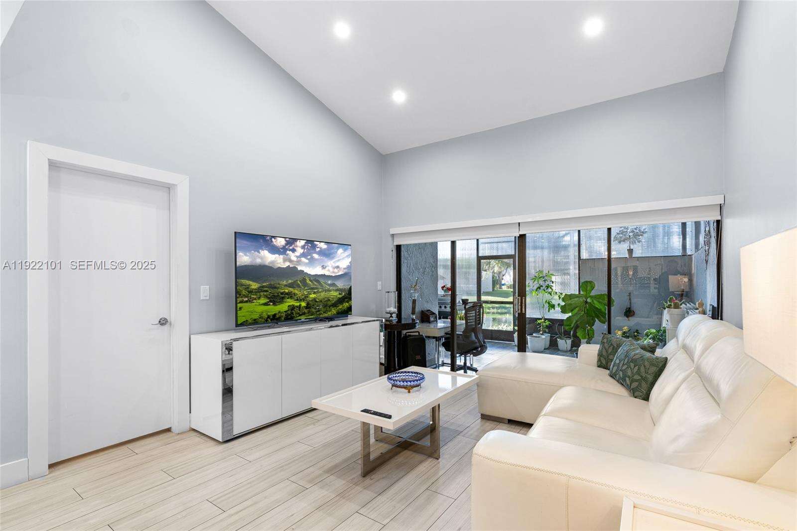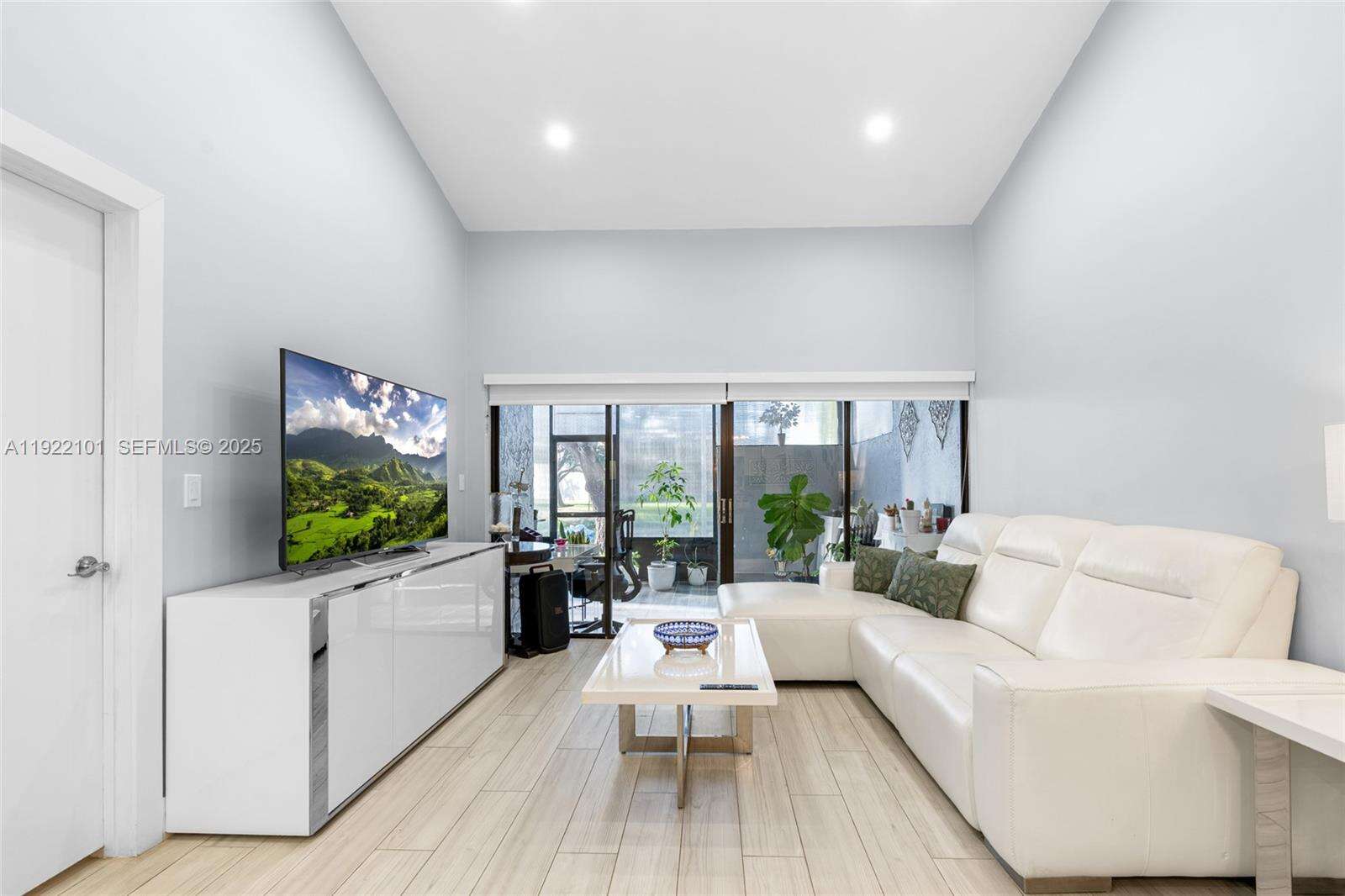 Beautiful 3-bedroom, 2-bath corner unit that feels just like a single-family home, fully renovated with high-quality finishes and modern upgrades throughout. ACTUAL SQUARE FEET ESTIMATE OF 1600. The entire property has been updated as if it were brand new, offering comfort, style, and peace of mind for the new owners. Major Renovations & Upgrades include Complete flooring replacement with modern porcelain tile. New air conditioning unit and full installation 2023, New electrical panel and full electrical installation 2022, All plumbing and water pipes replaced 2022. Kitchen fully renovated with new cabinets, finishes, and appliances, Two (2) bathrooms fully remodeled with contemporary design with Frameless glass shower enclosures in both bathrooms. Three (3) new hurricane-impact windows and two (2) impact doors installed in 2024. Additional Highlights include Enclosed patio with A/C and beautiful acrylic panels, perfect as an additional room, family space, or relaxation area, blackout shades throughout, 2 assigned parking spaces included right in front of unit, Corner unit offering extra privacy and abundant natural light, spacious layout, open feel, and comfortable design. Turn-key and ready to move in with nothing to update. Square footage is an estimate provided and should be independently verified by the buyer.