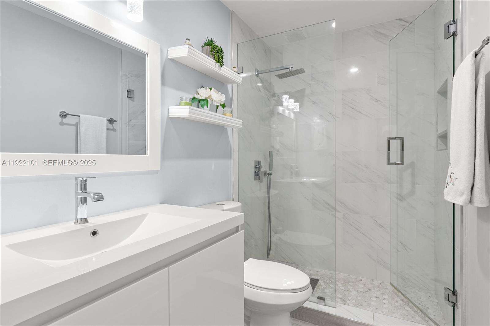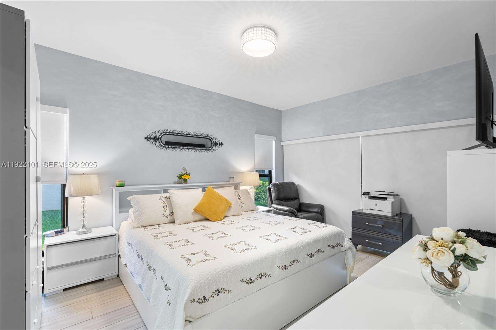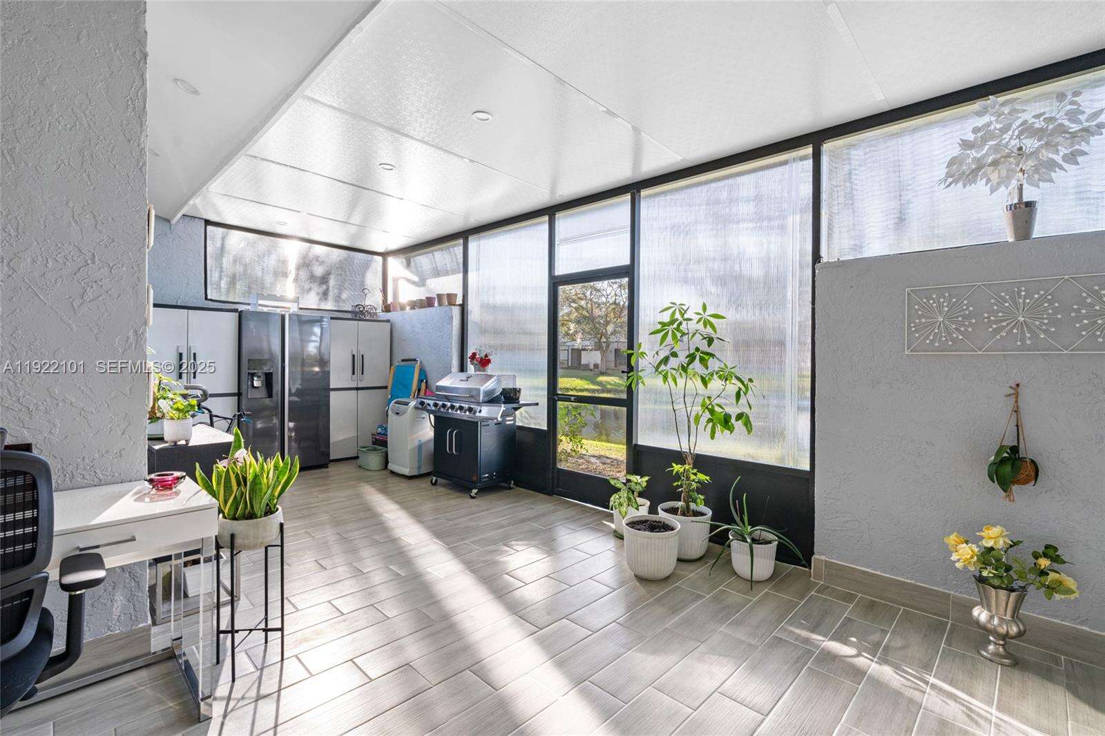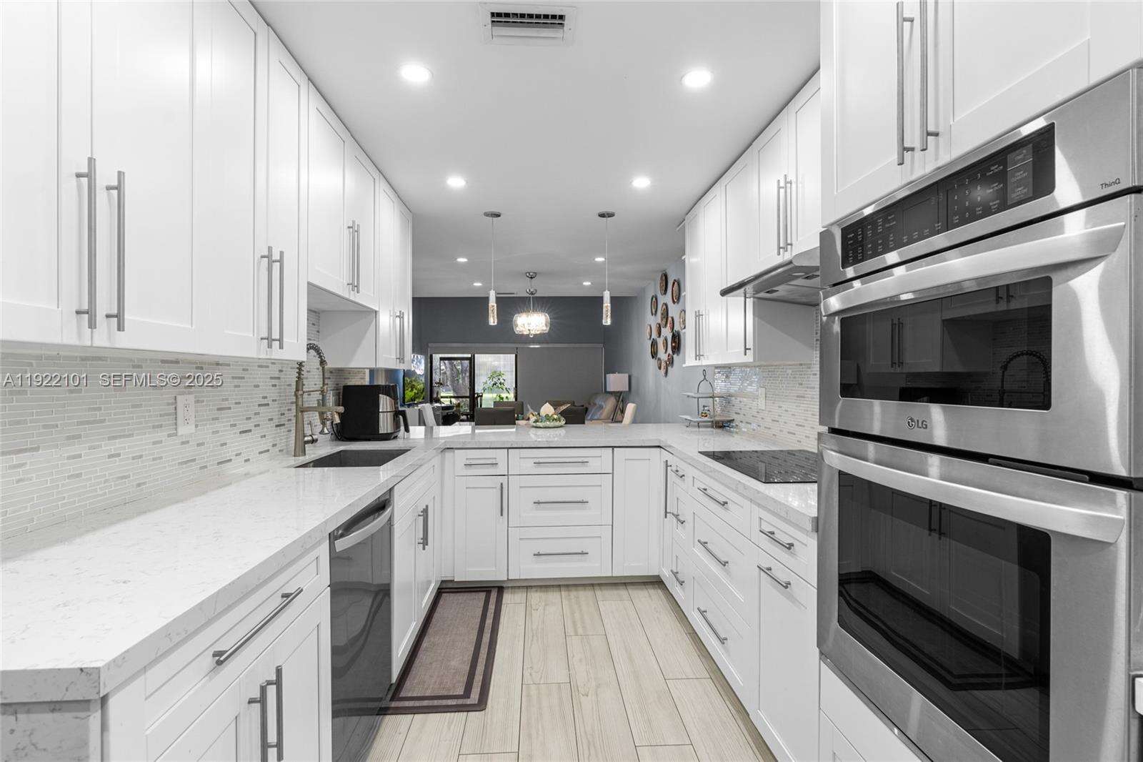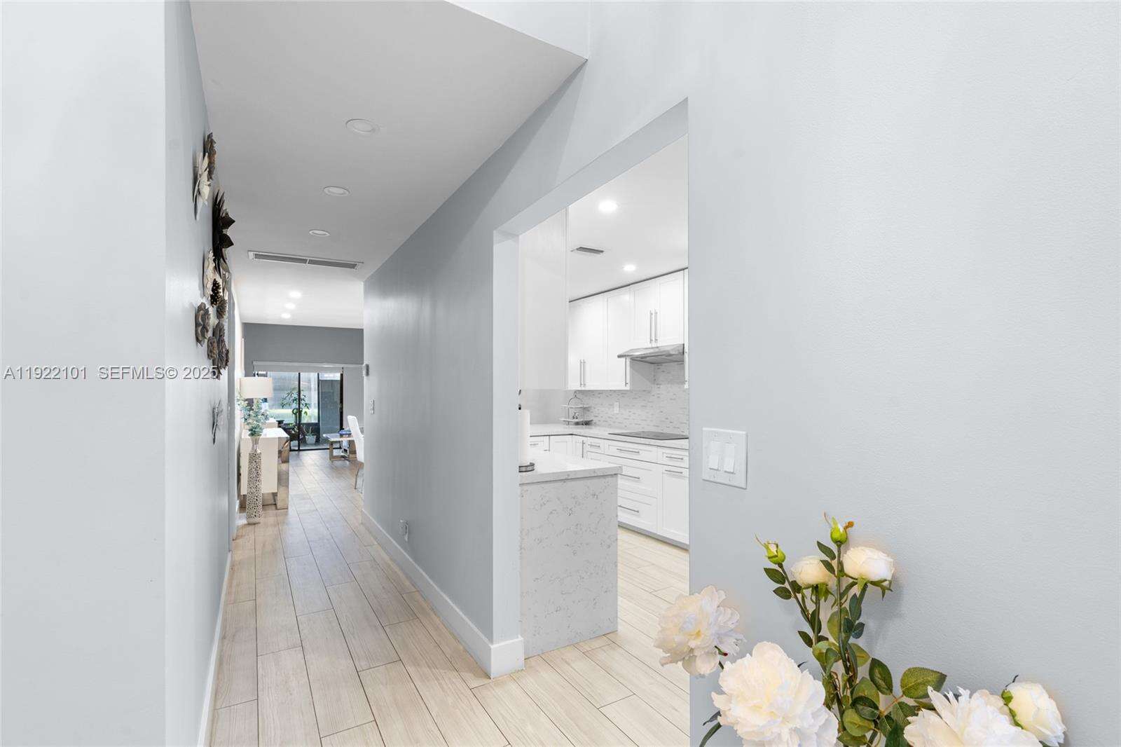 Beautiful 3-bedroom, 2-bath corner unit that feels just like a single-family home, fully renovated with high-quality finishes and modern upgrades throughout. ACTUAL SQUARE FEET ESTIMATE OF 1600. The entire property has been updated as if it were brand new, offering comfort, style, and peace of mind for the new owners. Major Renovations & Upgrades include Complete flooring replacement with modern porcelain tile. New air conditioning unit and full installation 2023, New electrical panel and full electrical installation 2022, All plumbing and water pipes replaced 2022. Kitchen fully renovated with new cabinets, finishes, and appliances, Two (2) bathrooms fully remodeled with contemporary design with Frameless glass shower enclosures in both bathrooms. Three (3) new hurricane-impact windows and two (2) impact doors installed in 2024. Additional Highlights include Enclosed patio with A/C and beautiful acrylic panels, perfect as an additional room, family space, or relaxation area, blackout shades throughout, 2 assigned parking spaces included right in front of unit, Corner unit offering extra privacy and abundant natural light, spacious layout, open feel, and comfortable design. Turn-key and ready to move in with nothing to update. Square footage is an estimate provided and should be independently verified by the buyer.