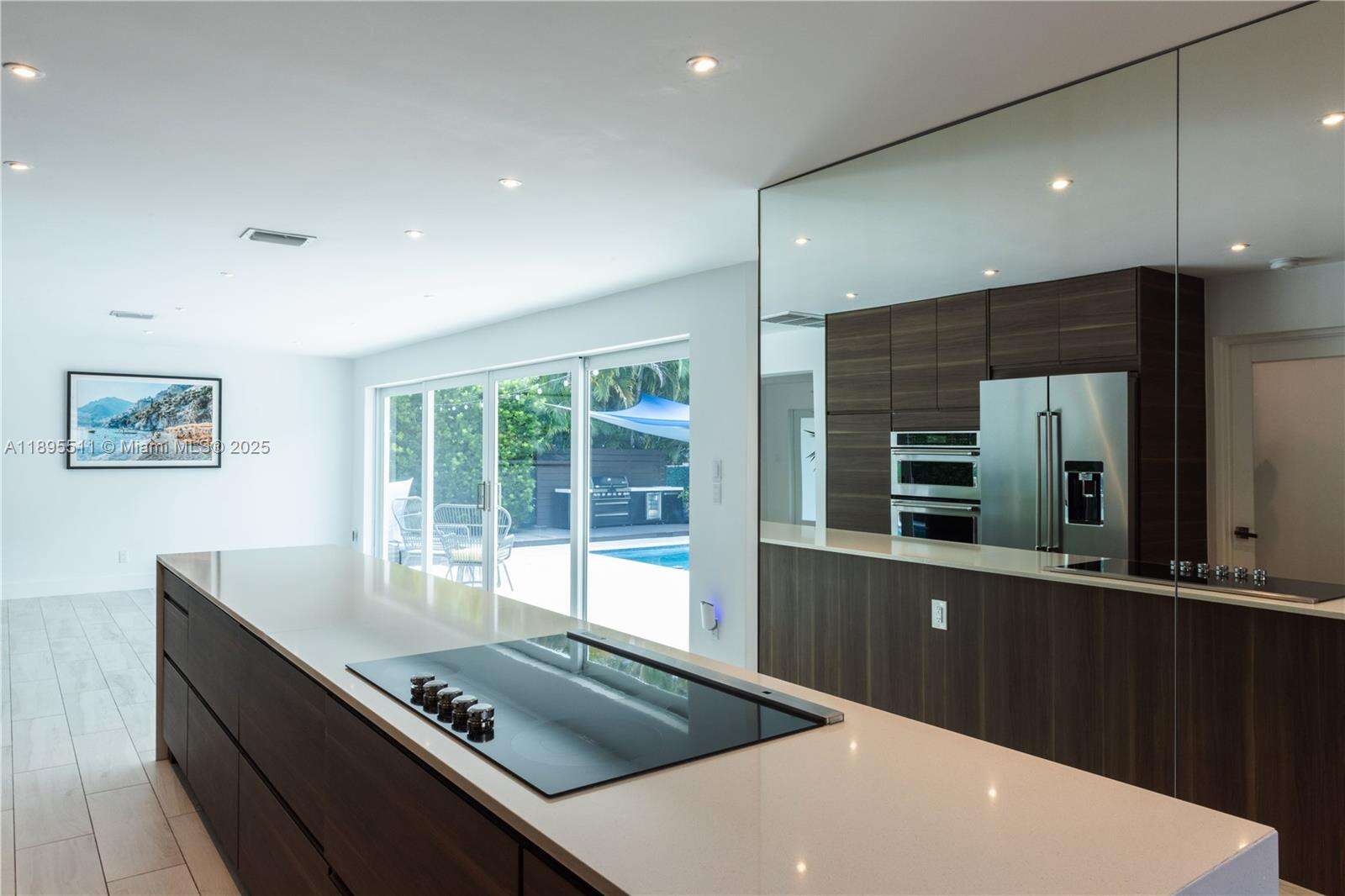 Tucked away on a quiet no-through street, this fully renovated 3-bed, 3-bath home (2020) offers the perfect blend of style, convenience, and lifestyle. Imagine waking up and walking or taking your golf cart straight over to Miami Shores Country Club, golf, dining, and community just outside your door. Inside, the open-concept layout is filled with natural light and elevated with 3M-treated impact windows and doors, electric blinds, and a full Ring camera system. The chef’s kitchen steals the show with a massive granite island ideal for cooking, gathering, and entertaining. Additional perks include a charming covered front porch, a 2-car garage with an A/C split and plenty of parking that makes hosting easy'. This home truly has it all...luxury, comfort, and unbeatable location.