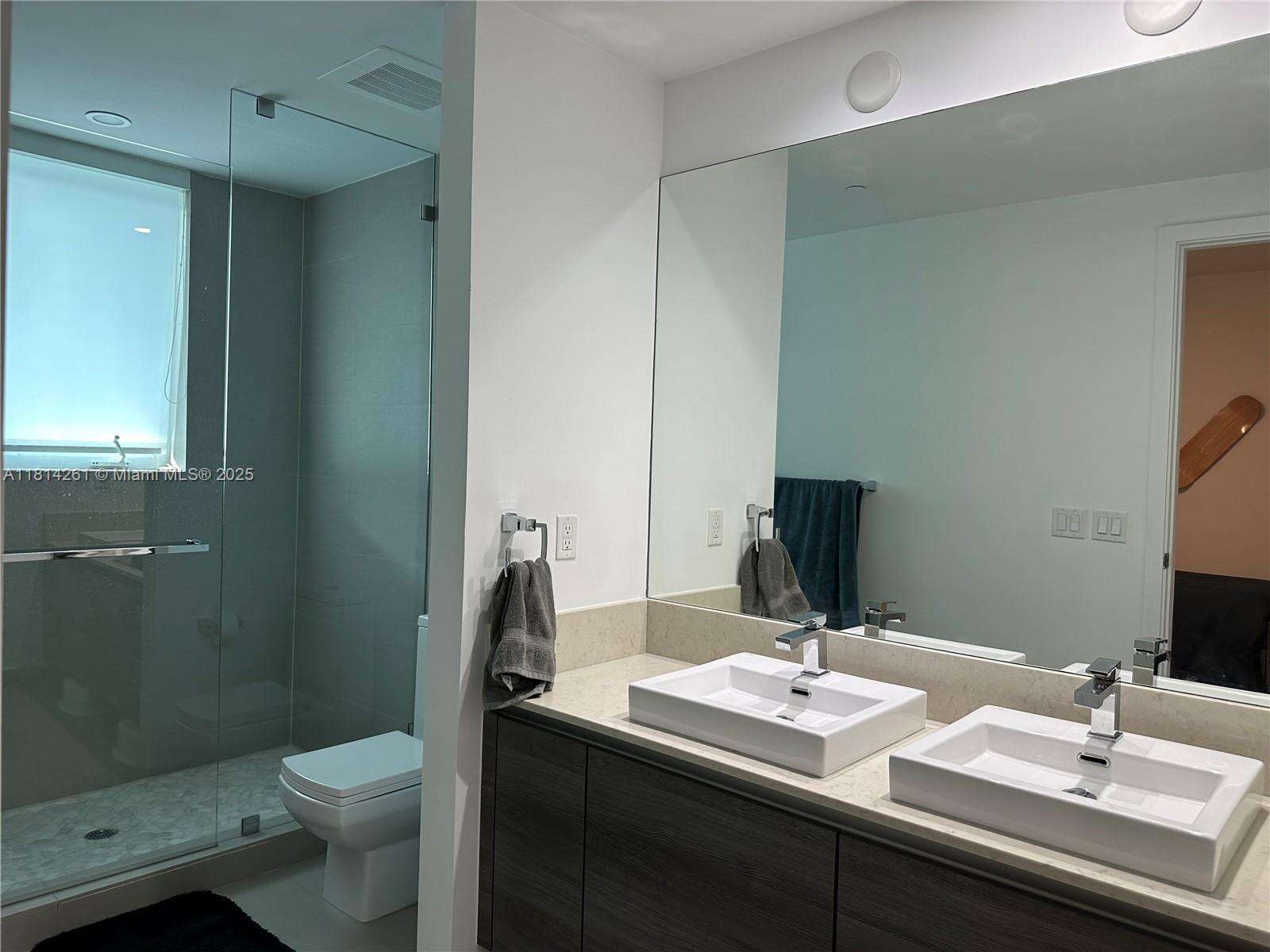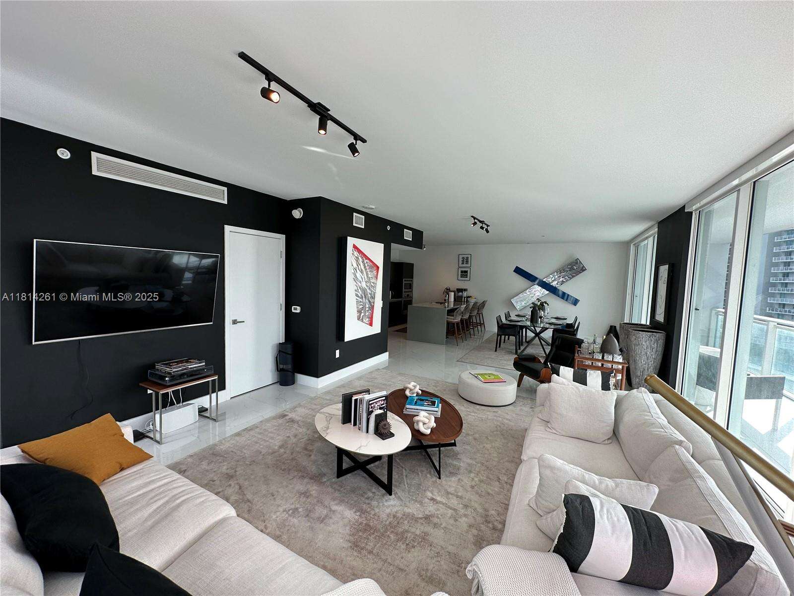 MOTIVATED SELLER The Bond is an ultra luxury residence building w/resort like pool, cabanas, state-of-the-art fitness center, clubhouse, kids playroom & more... Spectacular 2 story townhouse apartment with one-of-a-kind features. This stunning property offers 3 bedrooms, 3 1/2 bathrooms, 2 assigned parking spaces next to each other on the 1st floor and amazing views of the Brickell skyline. The interior is finished with pristine white porcelain, and the hand-crafted Nolte kitchen cabinets and Bosch appliances add a touch of elegance. Custom closets, window treatments, and an extended balcony enhance the living experience. You'll be steps away from restaurants and the vibrant Brickell lifestyle.