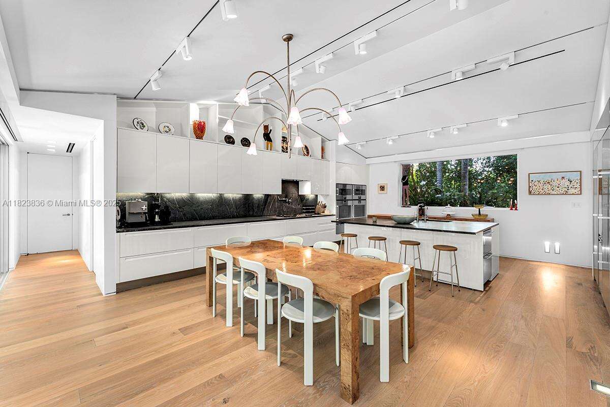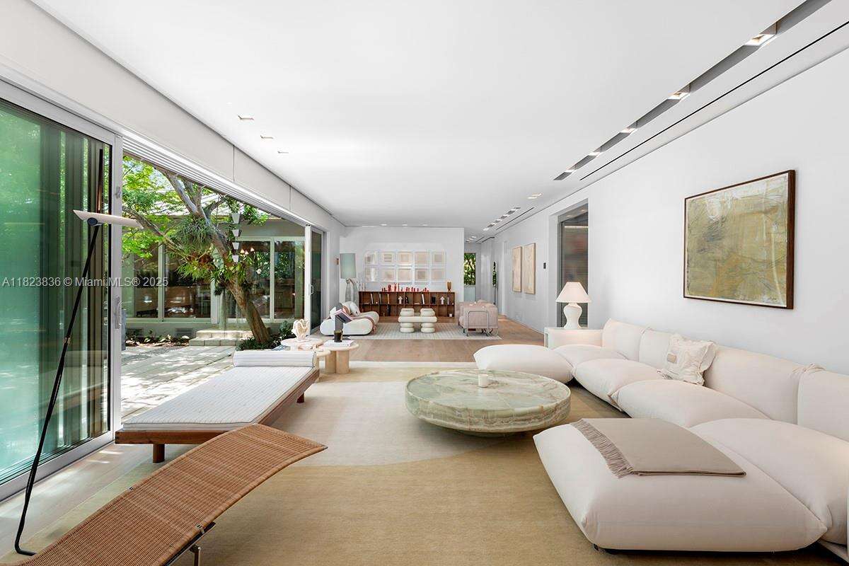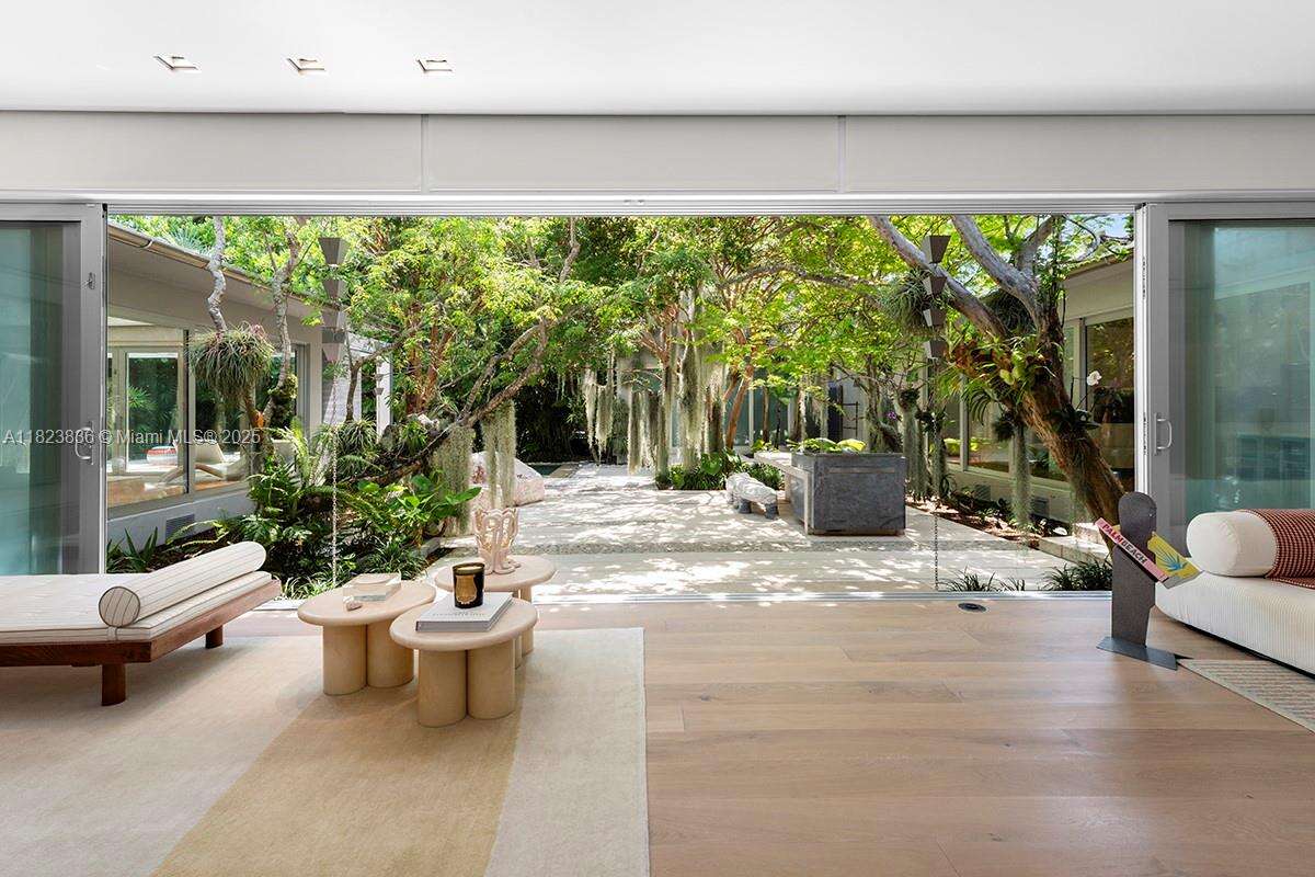 Tucked away on La Gorce Island, this artful Mid-Century Modern home offers refined living w/ tropical serenity. Envisioned by legendary landscape architect Raymond Jungles, lush gardens create a secluded oasis around the home’s iconic architecture Telescoping glass doors, oak floors, & floating walls define expansive social spaces including a great room, formal dining, 2 offices, and a state-of-the-art theater. The chef’s kitchen, framed by a picture window & arched ceiling, & equipped with sleek Gaggenau appliances. The primary suite boasts a grand spa bath with dual rain showers, tub, and lounge area. Outside, discover a whimsical retreat with koi pond, a louvered entry, and a resort-style pool w/ cabana. This is a rare corner lot in one of Miami Beach’s most coveted neighborhoods.