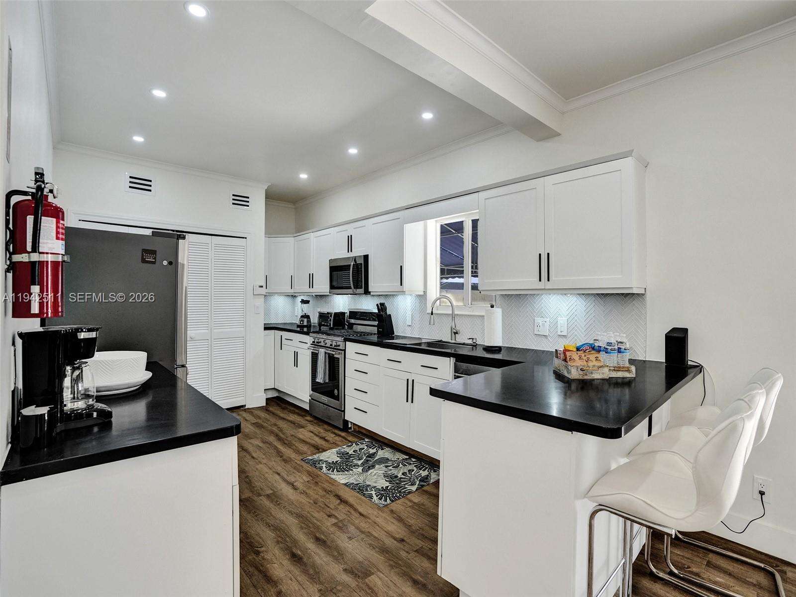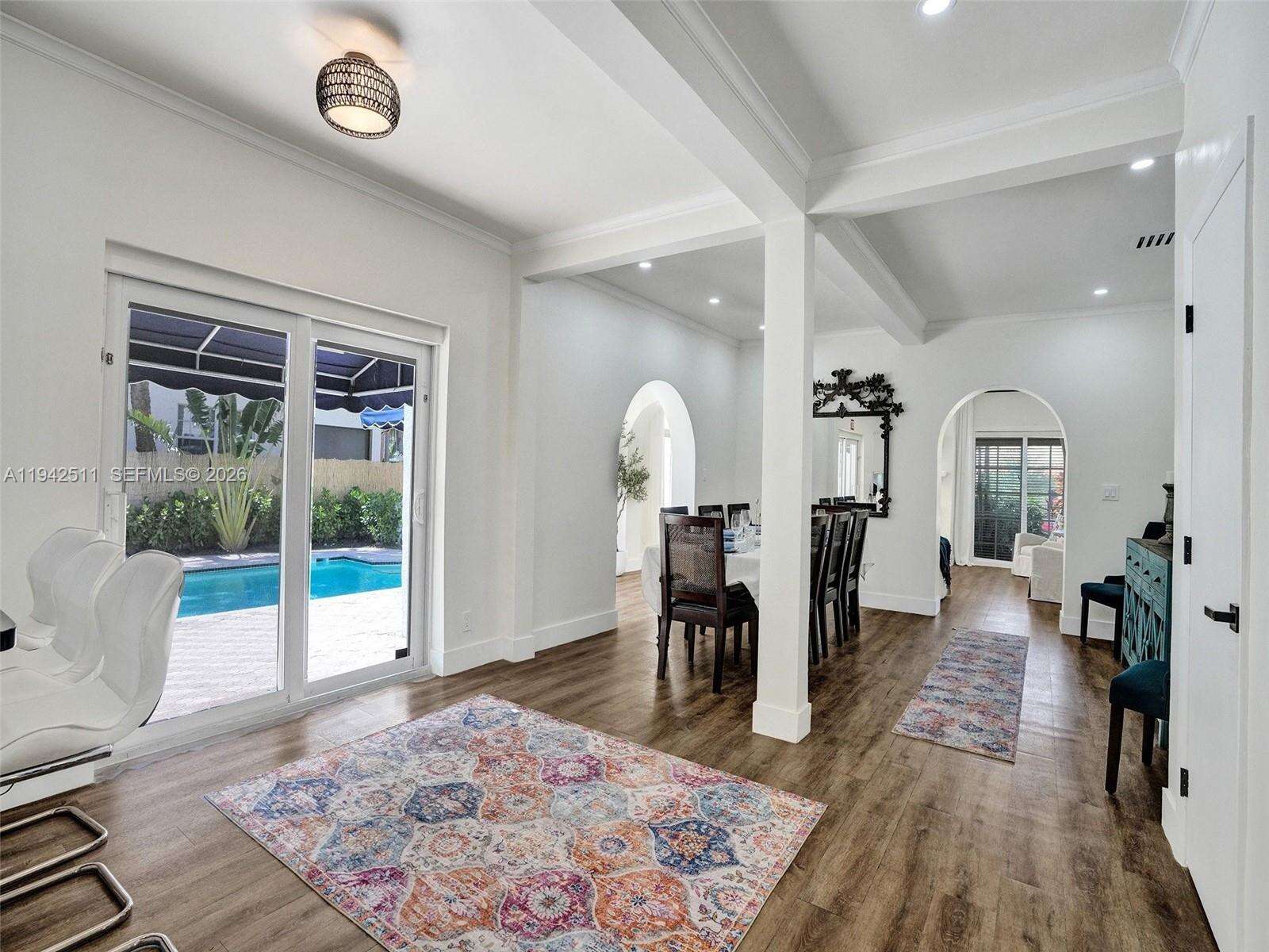 Step into the romance of Old Hollywood with this beautifully restored 1930 estate-style residence, where timeless character meets modern luxury. Set on a lush 9,500 sq ft lot, this 5-bed, 4-bath home offers approx 2,800 sq ft of elegant living space. The home features smooth plaster walls and ceilings, upgraded spa-inspired bathrooms, and abundant natural light throughout. A large upstairs primary suite serves as a private retreat, offering elevated separation, generous proportions, and a serene escape reminiscent of a classic Hollywood hideaway. Hurricane-impact windows provide modern peace of mind while preserving the home’s original architectural charm. Outdoors, your private sanctuary awaits. The expansive backyard showcases a huge resort-style swimming pool, a brand-new pool heater for year-round enjoyment, and beautiful landscaping and covered patio area to truly transform the space into a personal oasis inspired by a bygone Hollywood era. Enhancing the home’s versatility is a separate in-law / guest residence, ideal for hosting visitors, extended family, a private studio, or refined home office. A two-car garage and generous outdoor space complete this exceptional property. Ideally located just minutes from Hollywood Beach, downtown Hollywood, dining, shopping, and cultural attractions. 1128 Tyler Street is more than a home—it’s a lifestyle, presenting a rare opportunity to own a piece of Hollywood’s storied past, thoughtfully reimagined for modern living.