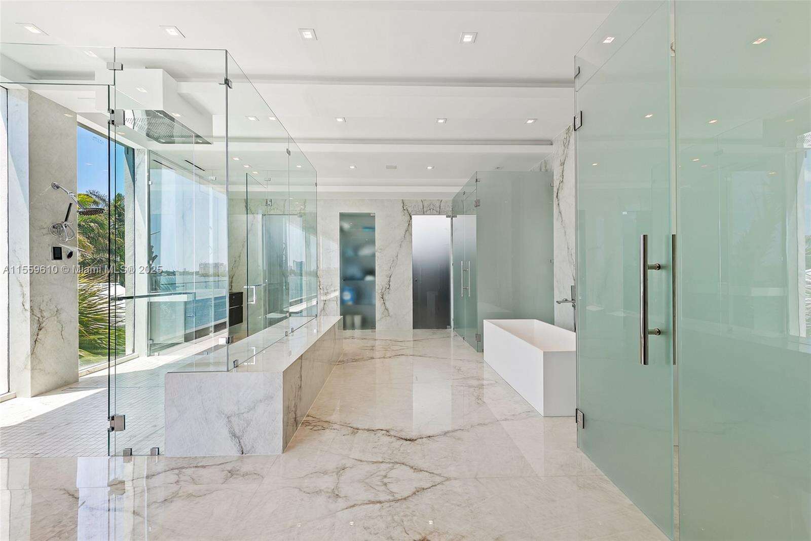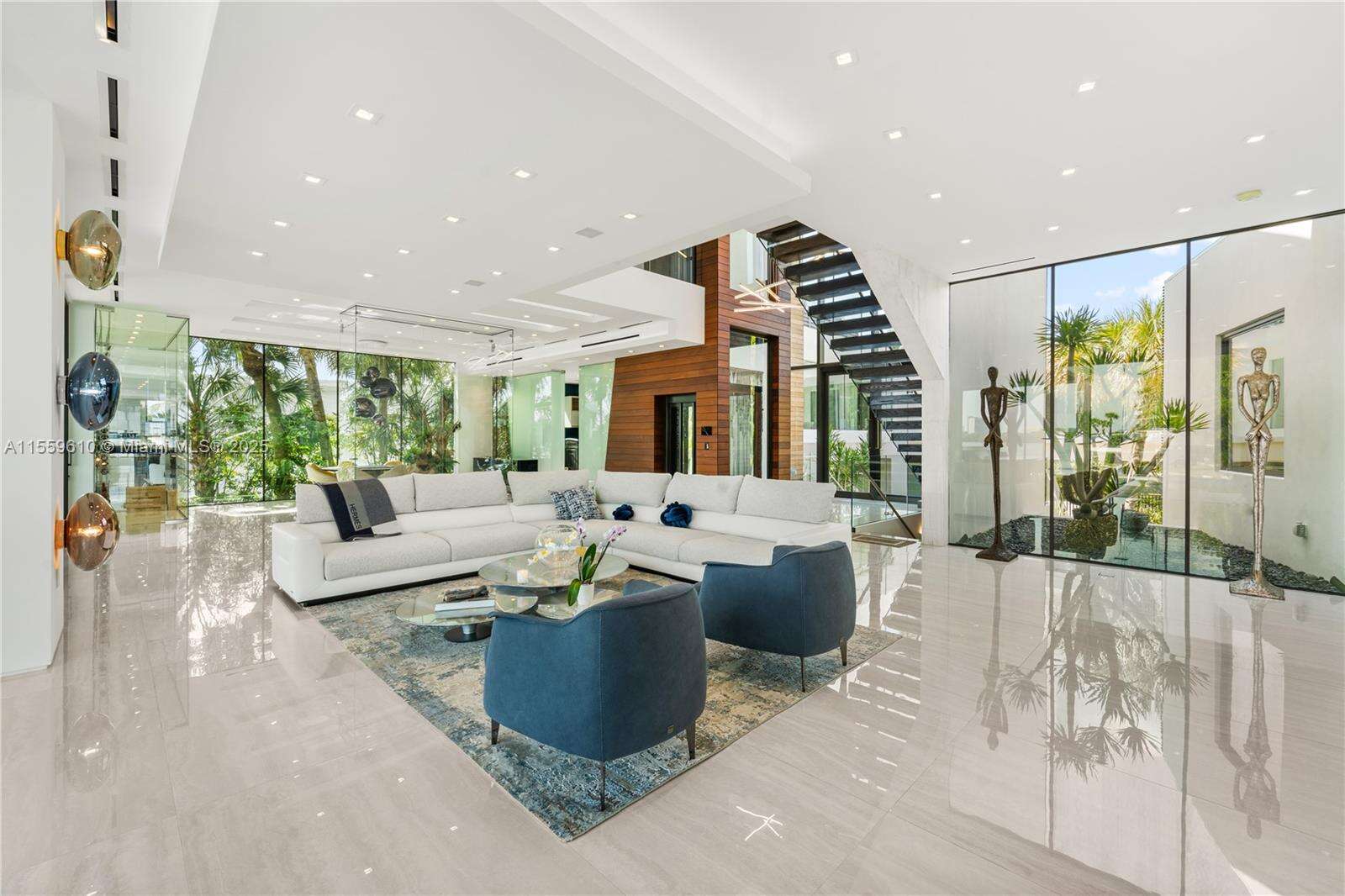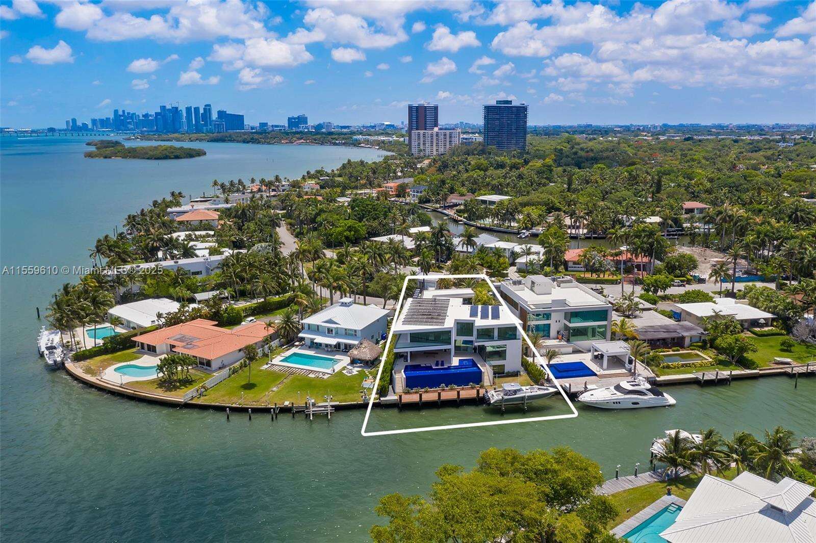 Stunning Bay/Canal Contemporary Residence- 100+ ft on deep water - New Construction (total of 12,924 SF under A/C). Loaded with ultra luxury finishes and very little use - 35KM solar electric generator w/six Tesla power walls & Travertine exterior walls. All custom lighting & sound throughout. Unique glass elevator to all three levels. Generous sized rooms and large closets. Art Gallery, Office-Library, amazing 12 car garage, play room & wine cellar. Breathtaking views of the Open Bay, City lights and tropical gardens from all rooms. Huge covered Patio + Summer Kitchen w/50ft infinity edge pool. Full dock & Boat Lift. Double gated 24/7 Island in the heart of Miami. Minutes to Design District, Beaches, Downtown Miami & Bal Harbour. Owner Financing Available.