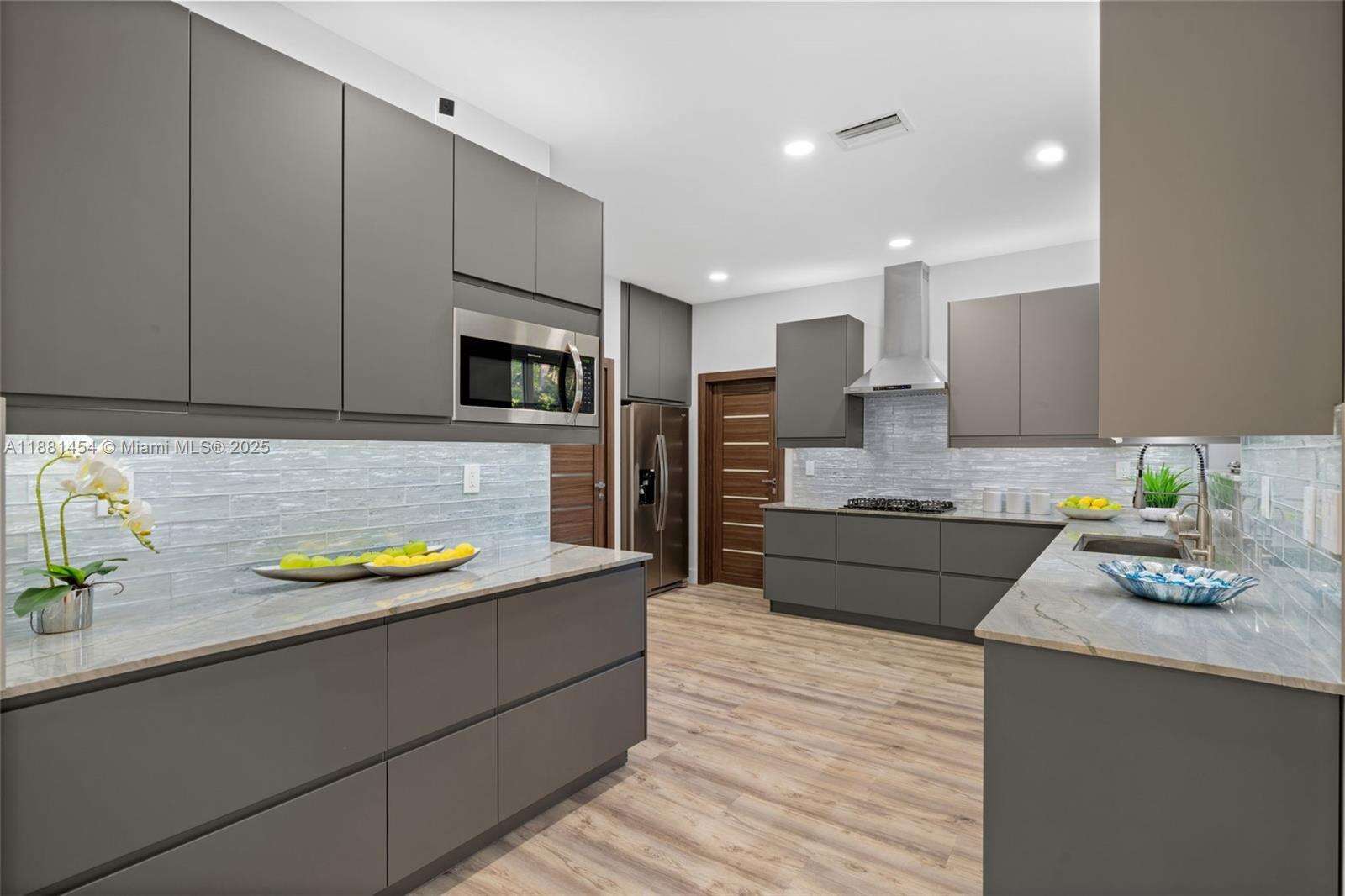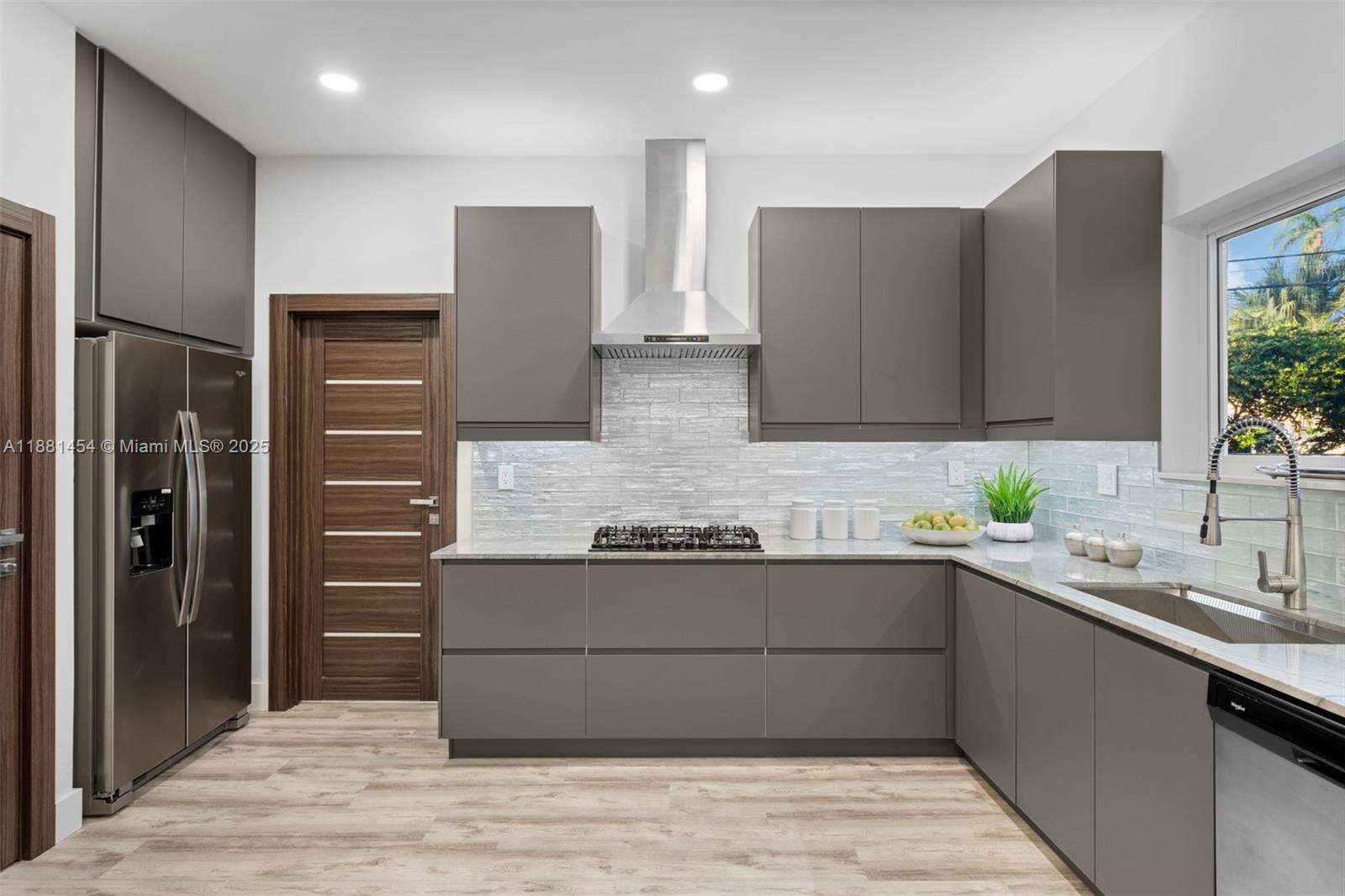 Discover this rare gem in the heart of Hollywood Lakes! Elevated on a double corner lot, this 3BR/3BA home has been completely reimagined with a modern open layout, soaring 9.5’ ceilings, smart home features & impact windows.The spacious living&dining areas are filled with natural light. The chef’s kitchen boasts sleek custom cabinetry, striking Kalahari marble counters & premium stainless appliances with a gas range.Enjoy peace of mind with all major systems recently 2022, including plumbing, electrical & dual A/C units. Additional highlights: 6-car driveway, new fencing, laundry with custom storage, an insulated A/C garage ideal for gym, studio or playroom. A thoughtfully designed City APPROVED pool project is ready.A true move-in ready retreat in one of the most desirable neighborhoods!