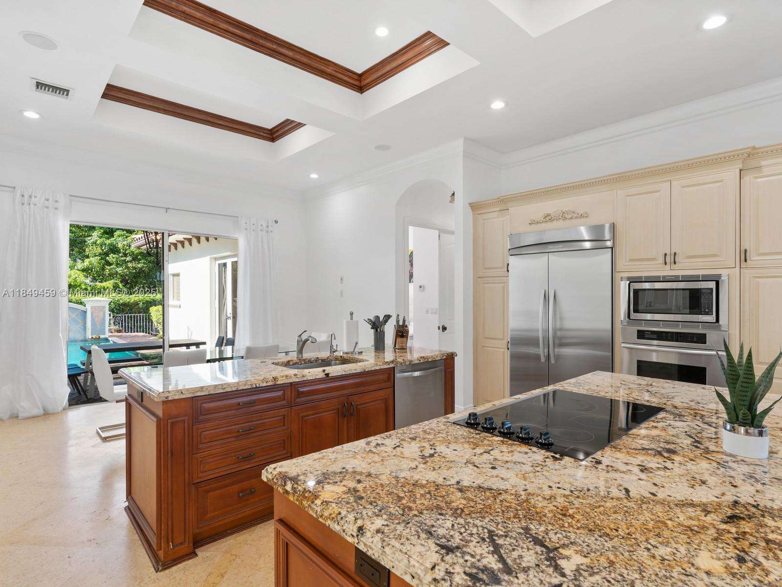 Privileged location! Stunning Views of South Lake/Intercoastal waterway! Mediterranean-style home in the heart of the prestigious Hollywood Lakes. Featuring 5 spacious bedrooms, 3 luxurious bathrooms, this residence offers timeless elegance and comfort. Step inside the grand foyer to find soaring ceilings, elegant finishes, and Brazilian cherry wood floors throughout the bedrooms. The gourmet kitchen features custom wood cabinetry, granite countertops, and premium stainless steel appliances. Perfect for entertaining, enjoy a private heated pool with waterfall, beautifully paved patio, and serene Southlake views—all just moments from beaches, dining, and vibrant downtown Hollywood.