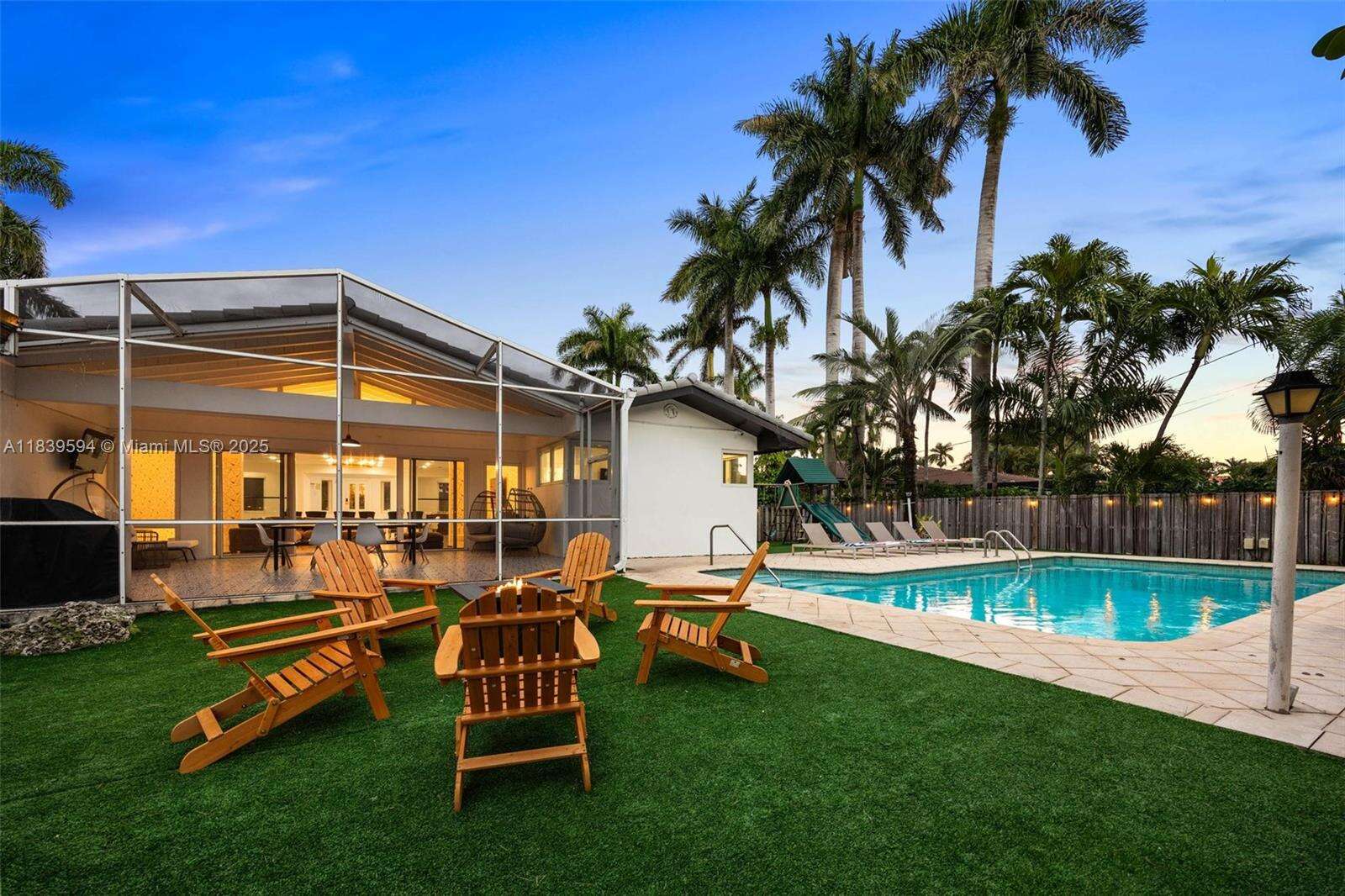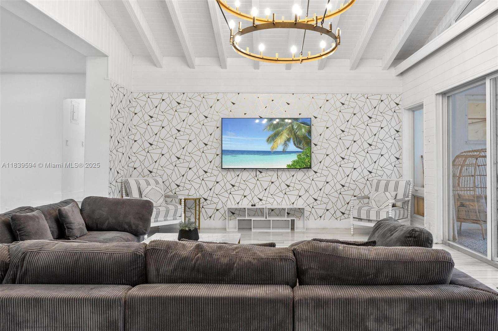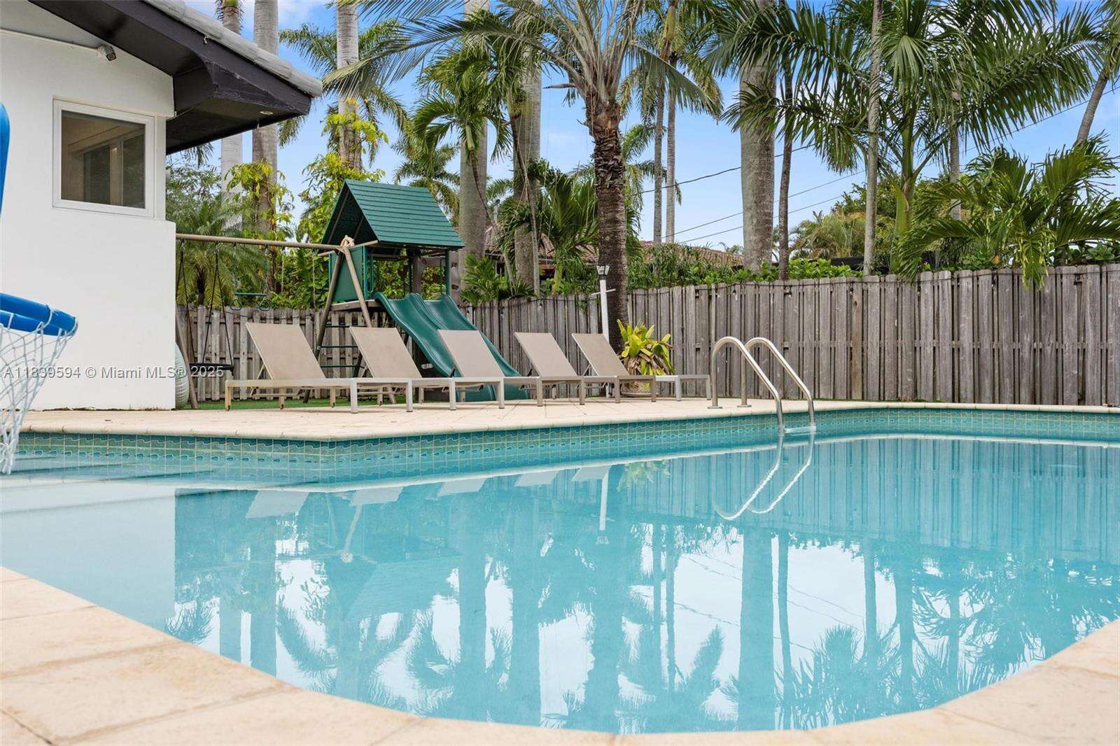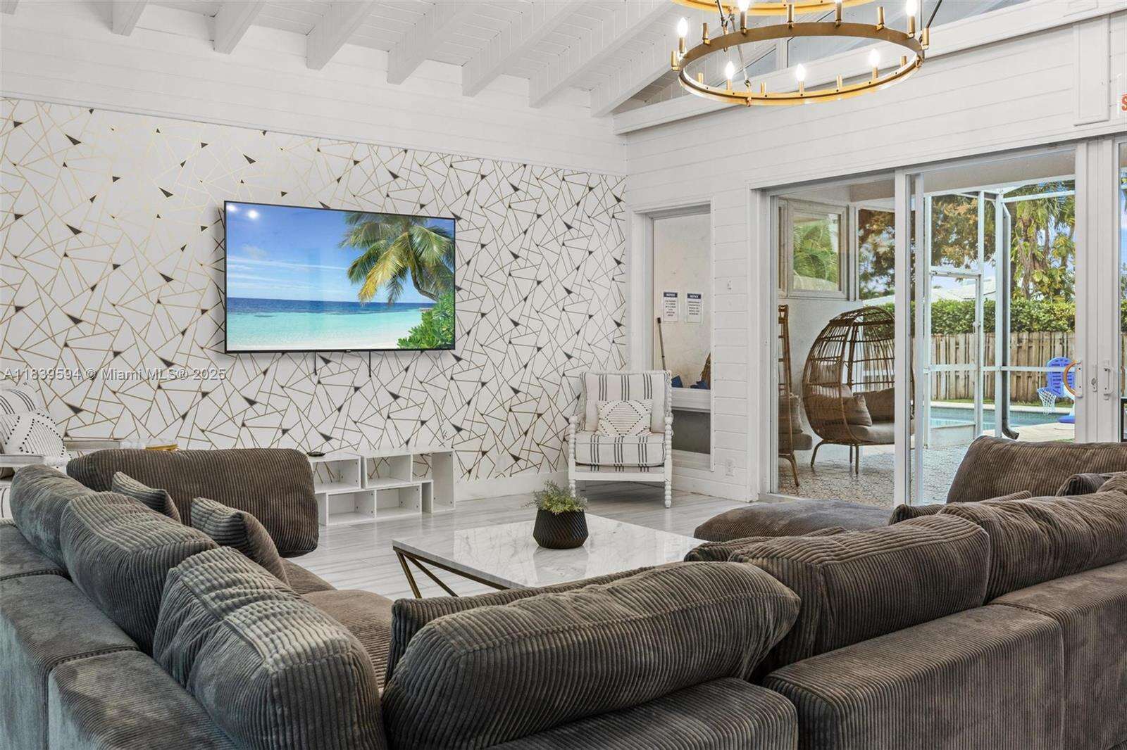 Stunning and elegant mid-century estate nestled in the prestigious Hollywood Lakes neighborhood. This distinctive 6-bedroom, 4-bath residence with huge open floor plan and soaring ceilings, beautiful bathrooms and chef kitchen with stainless steel appliances and massive island made for incredible dining with our beautiful dining room area and table this house is ready to move in great out door space and deck and pool in huge double lot with brand new roof just 2 years old and all furniture included for this incredible price. This is the best priced 6 bedroom in the hollywood market and wont last.