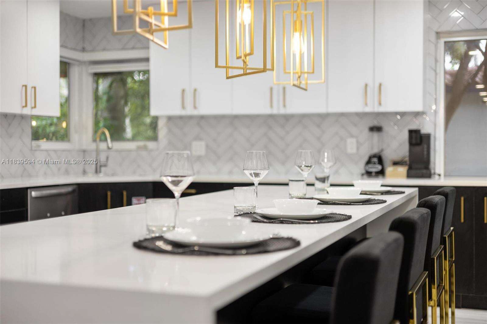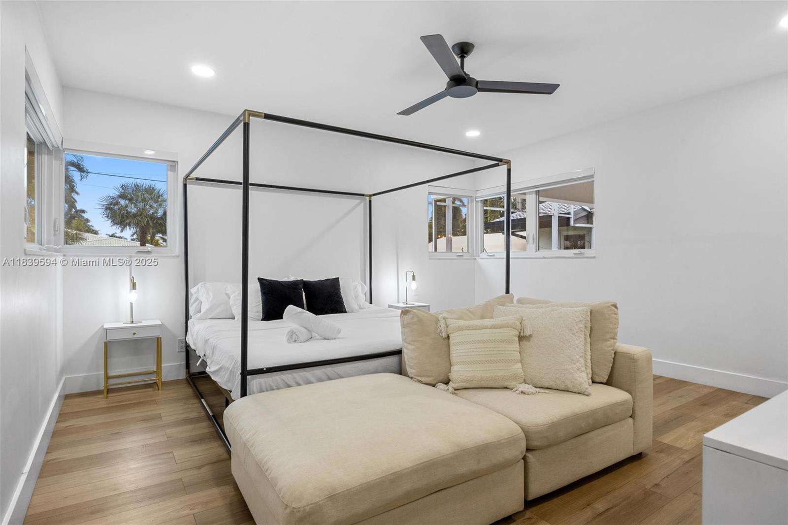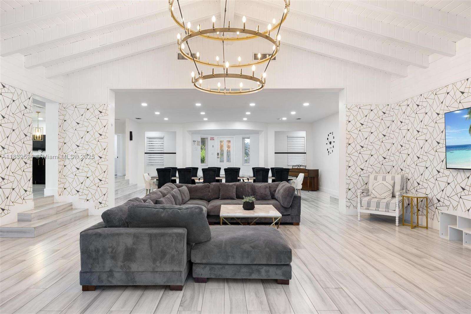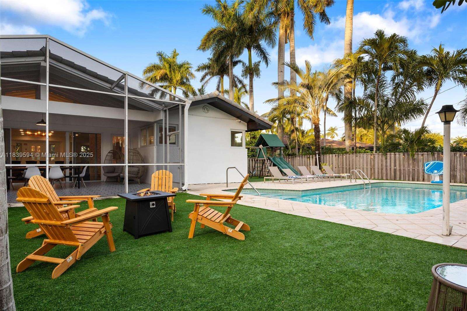 Stunning and elegant mid-century estate nestled in the prestigious Hollywood Lakes neighborhood. This distinctive 6-bedroom, 4-bath residence with huge open floor plan and soaring ceilings, beautiful bathrooms and chef kitchen with stainless steel appliances and massive island made for incredible dining with our beautiful dining room area and table this house is ready to move in great out door space and deck and pool in huge double lot with brand new roof just 2 years old and all furniture included for this incredible price. This is the best priced 6 bedroom in the hollywood market and wont last.