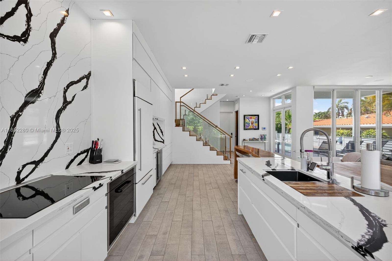 Live in a contemporary, upgraded home with the finest finishes, custom lighting and smart home features. Over $200,000 of upgrades added in the last 2 yrs. 2019 ultra-modern, saltwater filtration pool elevated with a glass wall. Two-stories w/ 3 beds, & 3.5 baths with a 2nd floor upstairs laundry room. Clean lines & open spaces are complemented by elegant finishes, including Panda Marble countertops Wolf and Thermador appliances. 10-foot ceilings enhance the home’s airy, refined ambiance. Primary suite has a dropdown TV from the ceiling – built-out closets throughout, designed for the best use of space. Serene outdoor spaces feature a sleek covered patio, two 2nd floor balconies, and fully air A/C garage with finished epoxy floors & workstations. Cycle to the Hollywood beach in 10 minutes