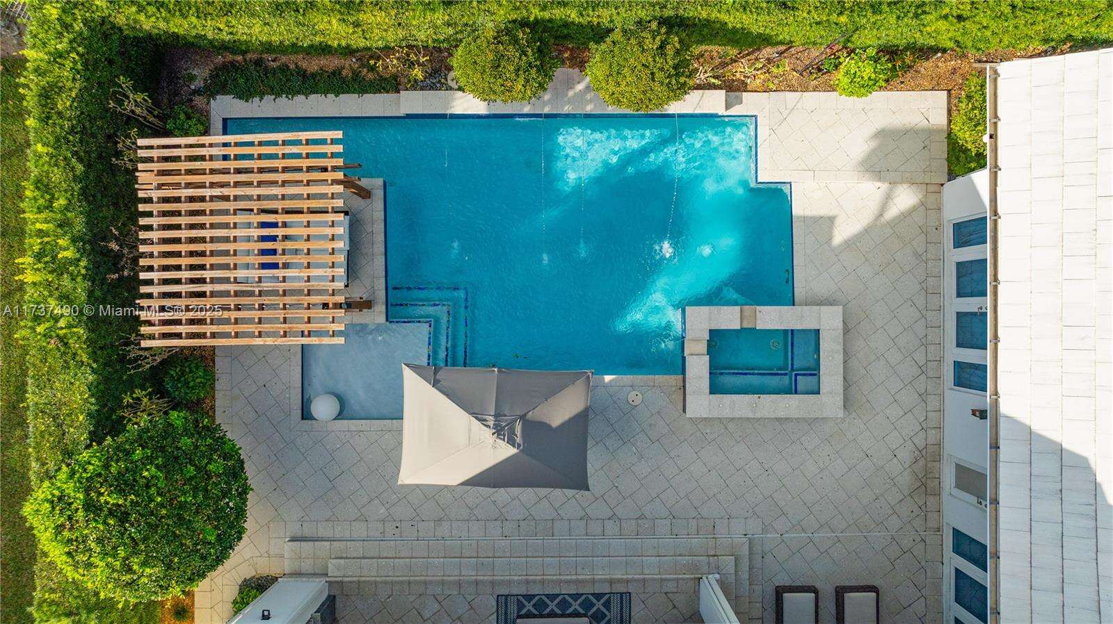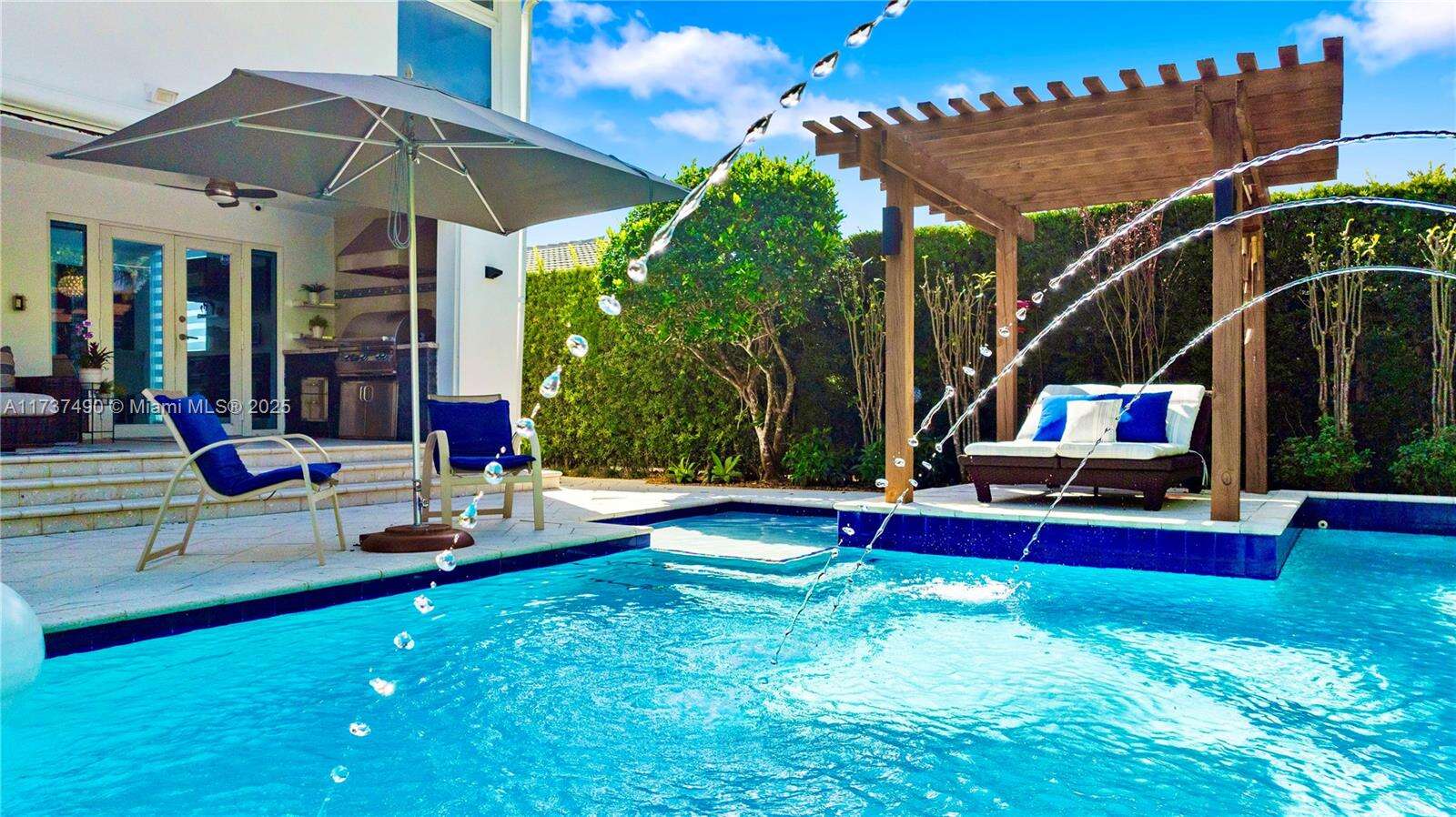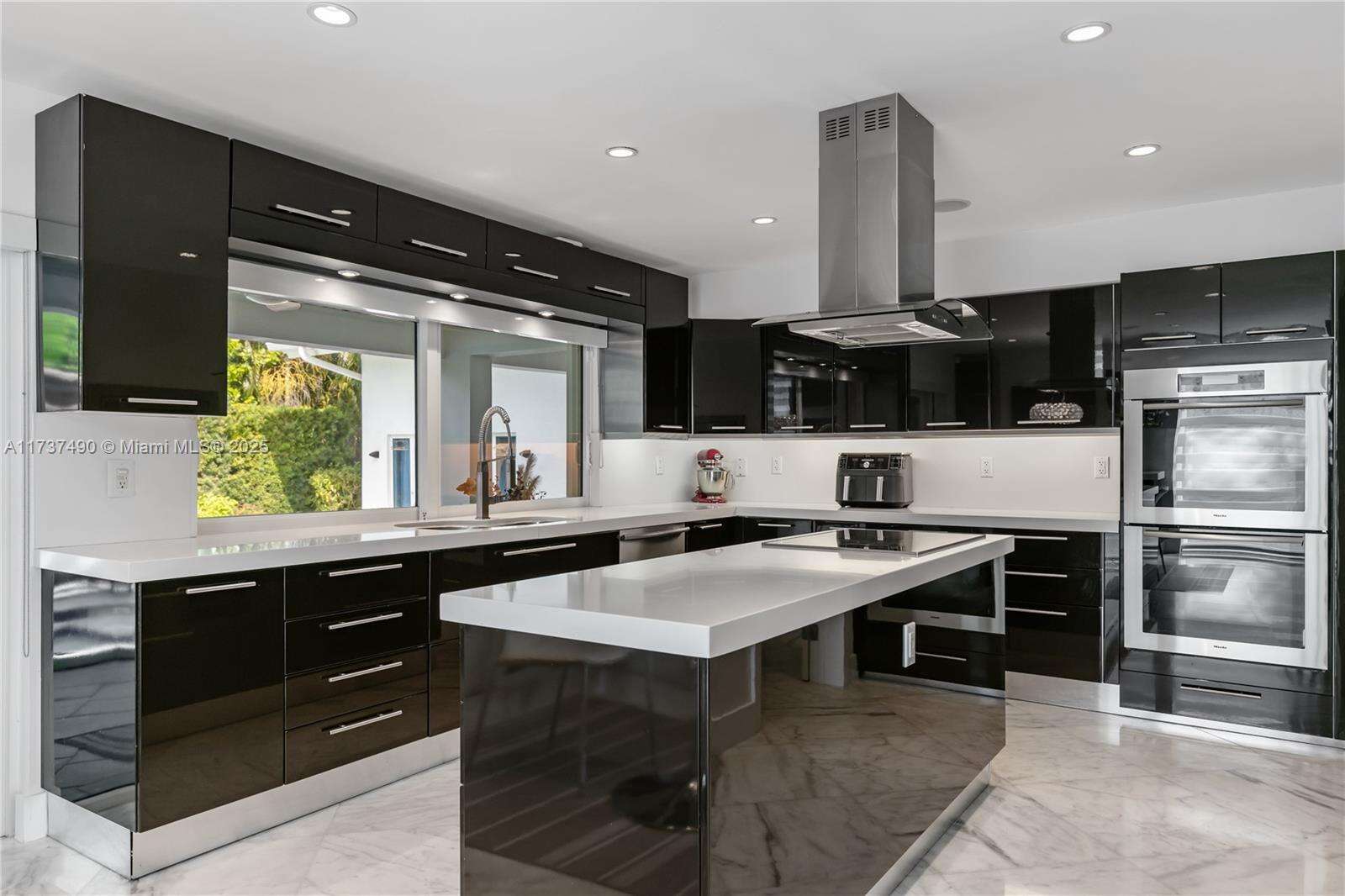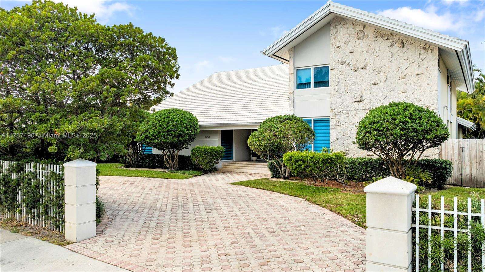 Located in Bay Harbor Islands, one of the most coveted neighborhoods in Miami, is this 5090sqft mid-century modern home rebuilt in 2009! This exquisite property has 4 large ensuite bedrooms, an expansive office and a spacious den. Other features include high ceilings, impact windows, natural woods, stone accents, smart home technology, surround sound, electric blinds, and redone electric & plumbing. The chef's kitchen has top-of-the-line Miele and Subzero appliances. The primary suite includes 3 closets, a spa-like bath with a multi jetted shower and a balcony. Paradise is in the backyard with a custom pool, jacuzzi, sun shelf, summer kitchen, pergola, pool bath, lush landscaping & a butterfly garden. Amazing location: walk to the beach, cafes, shopping, A+ schools, tennis & parks. NO HOA