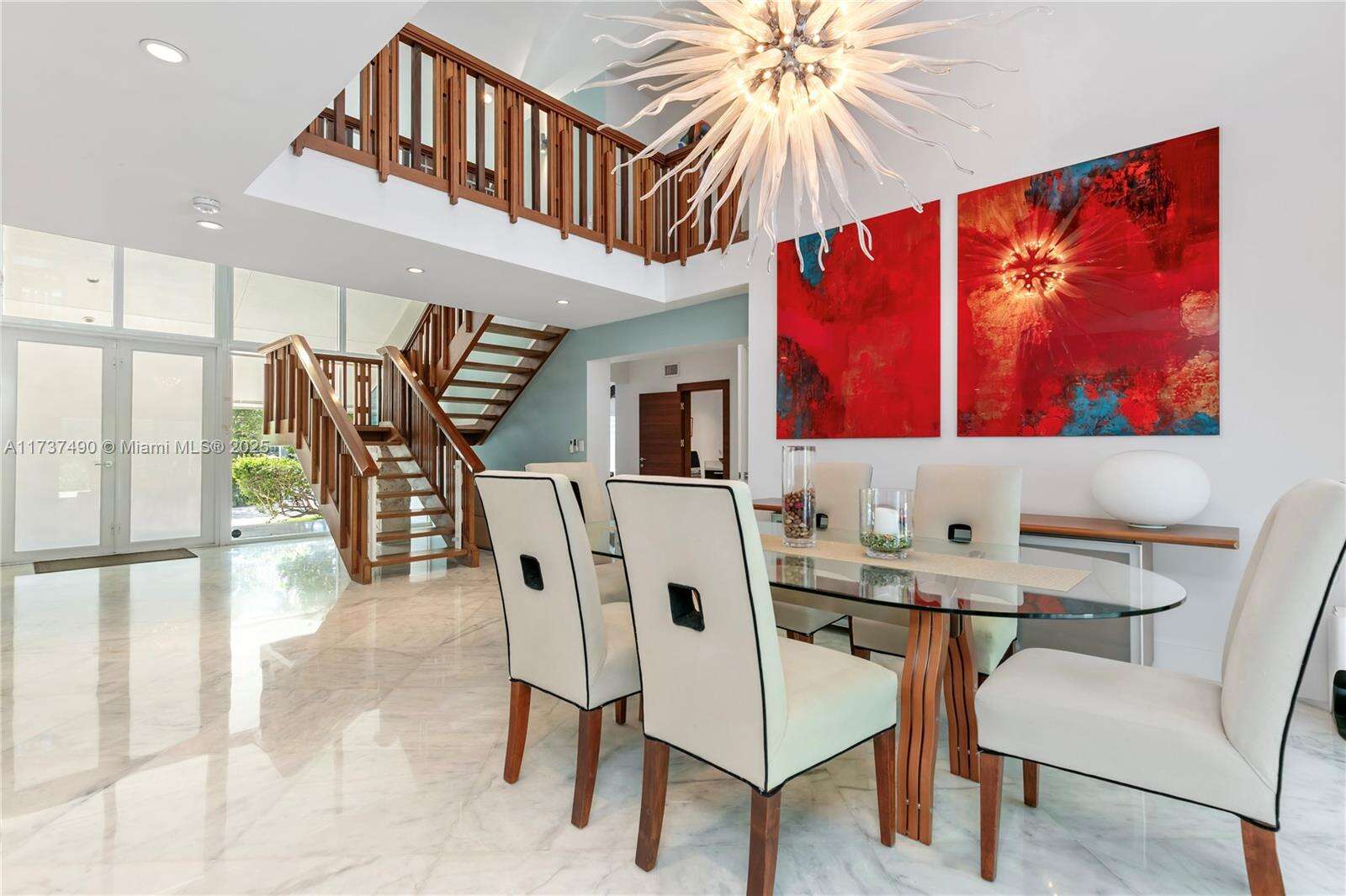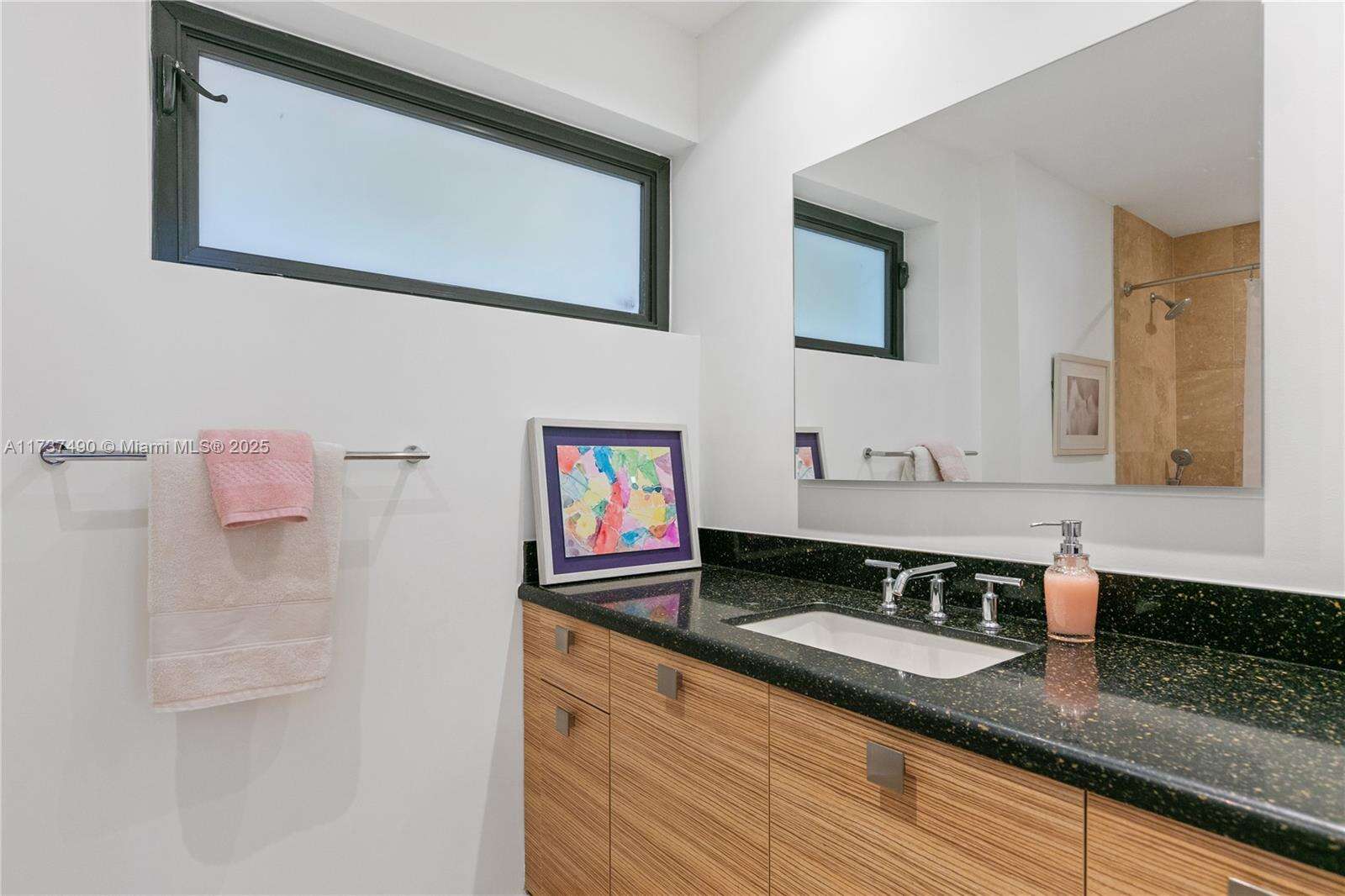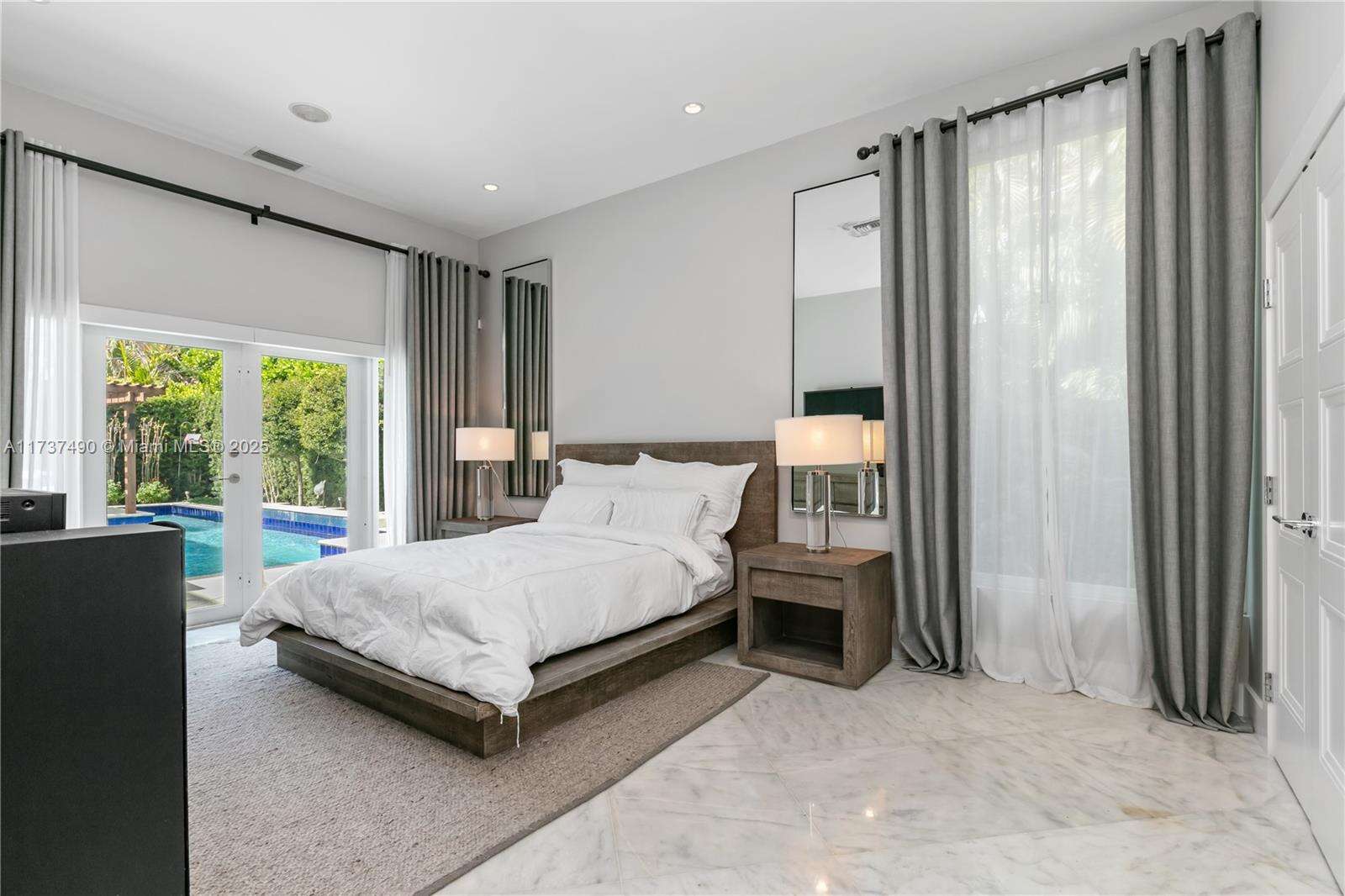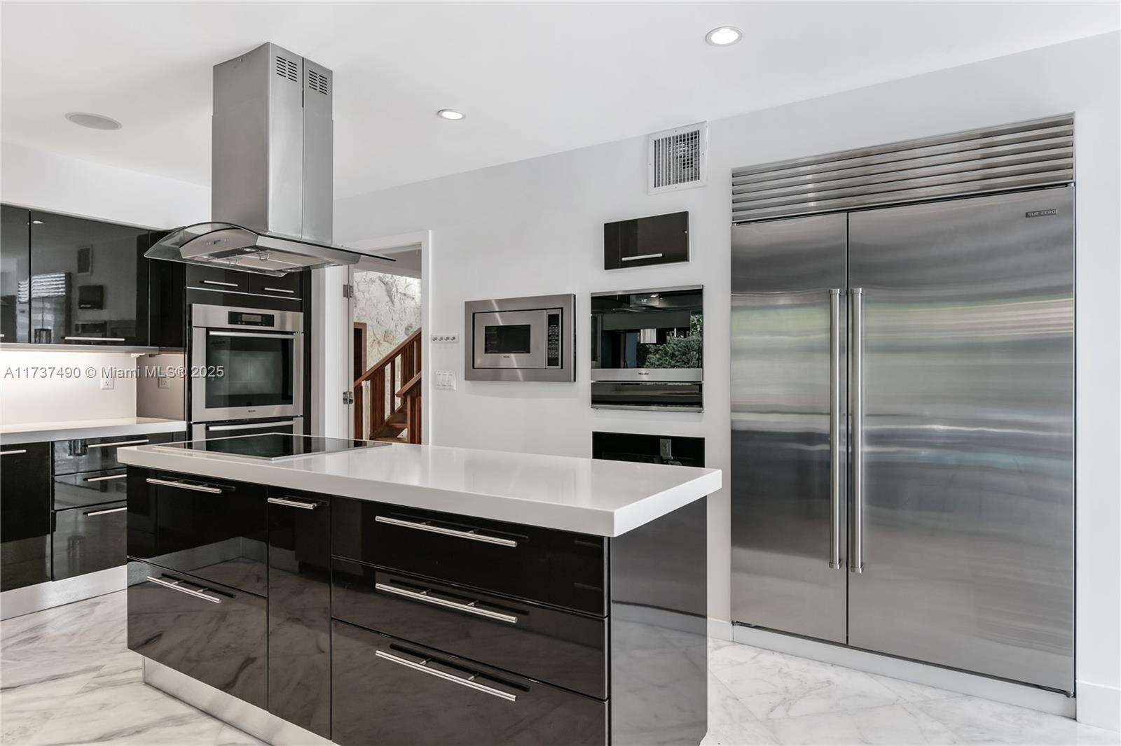 Located in Bay Harbor Islands, one of the most coveted neighborhoods in Miami, is this 5090sqft mid-century modern home rebuilt in 2009! This exquisite property has 4 large ensuite bedrooms, an expansive office and a spacious den. Other features include high ceilings, impact windows, natural woods, stone accents, smart home technology, surround sound, electric blinds, and redone electric & plumbing. The chef's kitchen has top-of-the-line Miele and Subzero appliances. The primary suite includes 3 closets, a spa-like bath with a multi jetted shower and a balcony. Paradise is in the backyard with a custom pool, jacuzzi, sun shelf, summer kitchen, pergola, pool bath, lush landscaping & a butterfly garden. Amazing location: walk to the beach, cafes, shopping, A+ schools, tennis & parks. NO HOA