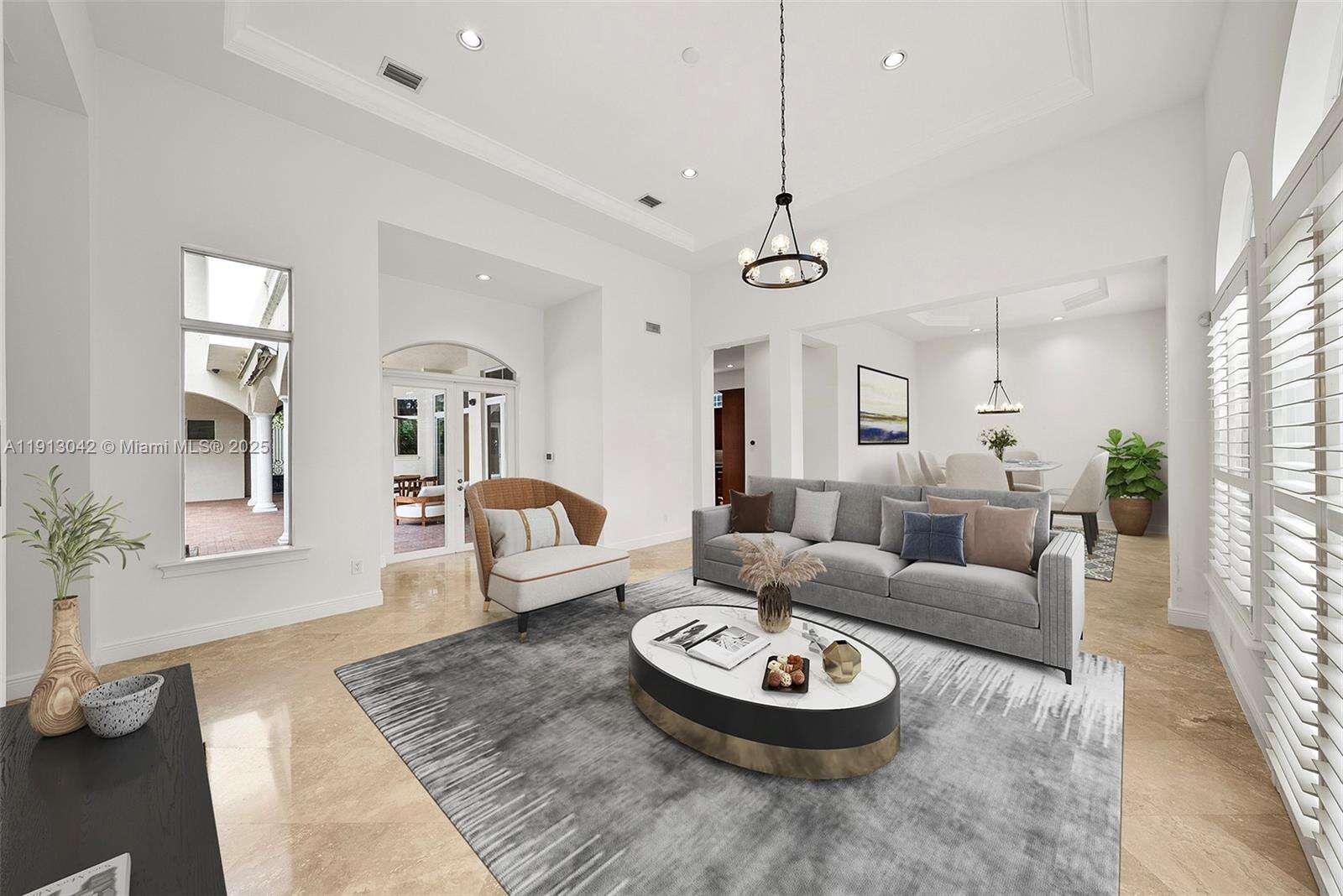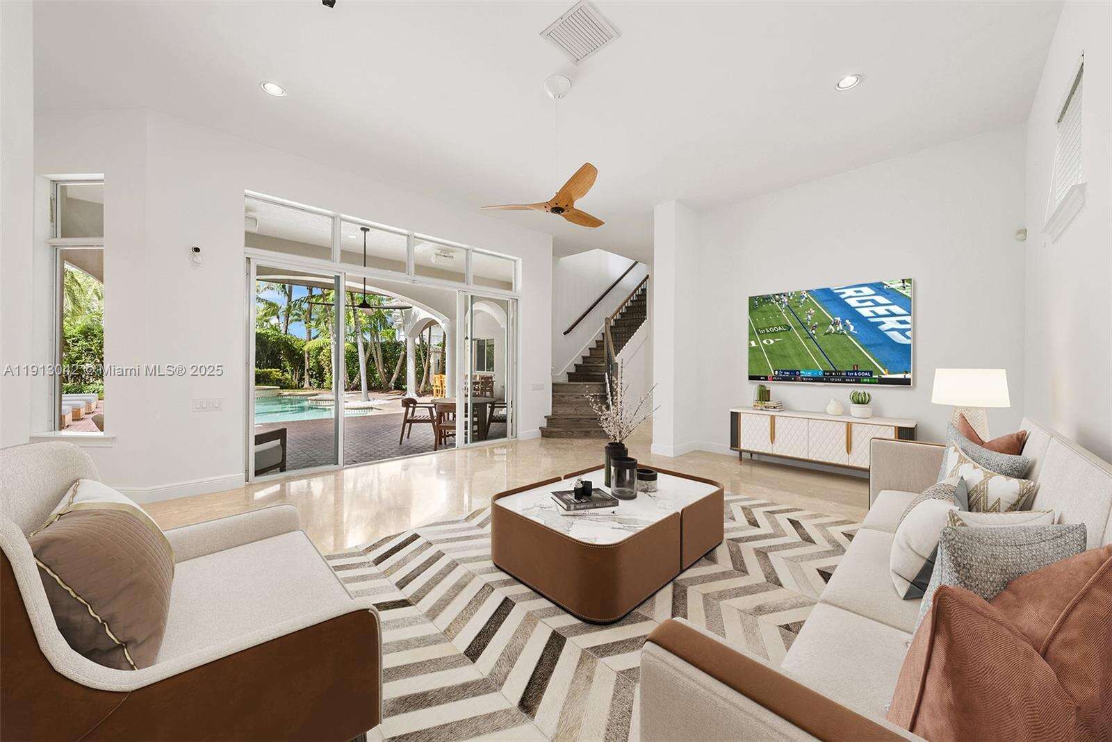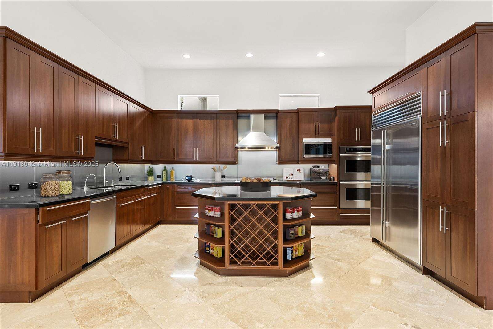 A private oasis in Harbor Islands. This elegant one-of-a-kind 6BR/6.5BA home boasts a uniquely private setting ideal for indoor-outdoor living. Custom entry doors flow into a picturesque large outdoor setting, lush landscaping, covered terraces, heated pool/spa, BBQ area and 1BR/1BA guest cottage (included in bedroom count). Modern luxury & comfort, large open gourmet kitchen and breakfast area, primary suite with private balcony overlooking pool and gardens for serene morning views; every bedroom is a suite, volume ceilings, impact windows/doors. A true family sanctuary. Nestled within gated community of Harbor Islands with resort-style of amenities including marina, fitness center, clubhouse and more.