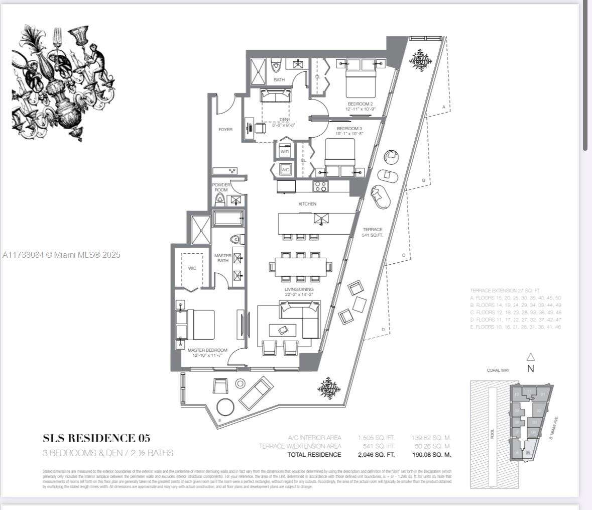 Stunning 3 Bedroom + Den / 2.5 Bath, 2046 SQF total (1,505 sqf interior , 541 sqf terrace ) as per official floor plan (in photos), at DUA, former SLS Brickell. Open kitchen, great layout, full of natural light. Washer/dryer in unit. Amenities include : state-of-the-art fitness center, rooftop pool for residents only, spa, pool terrace with 200 foot-long pool and private cabanas, kids room, party room and new on site amazing Mexican Steakhouse, RosaNegra.