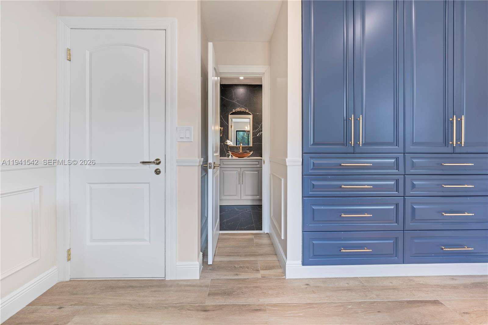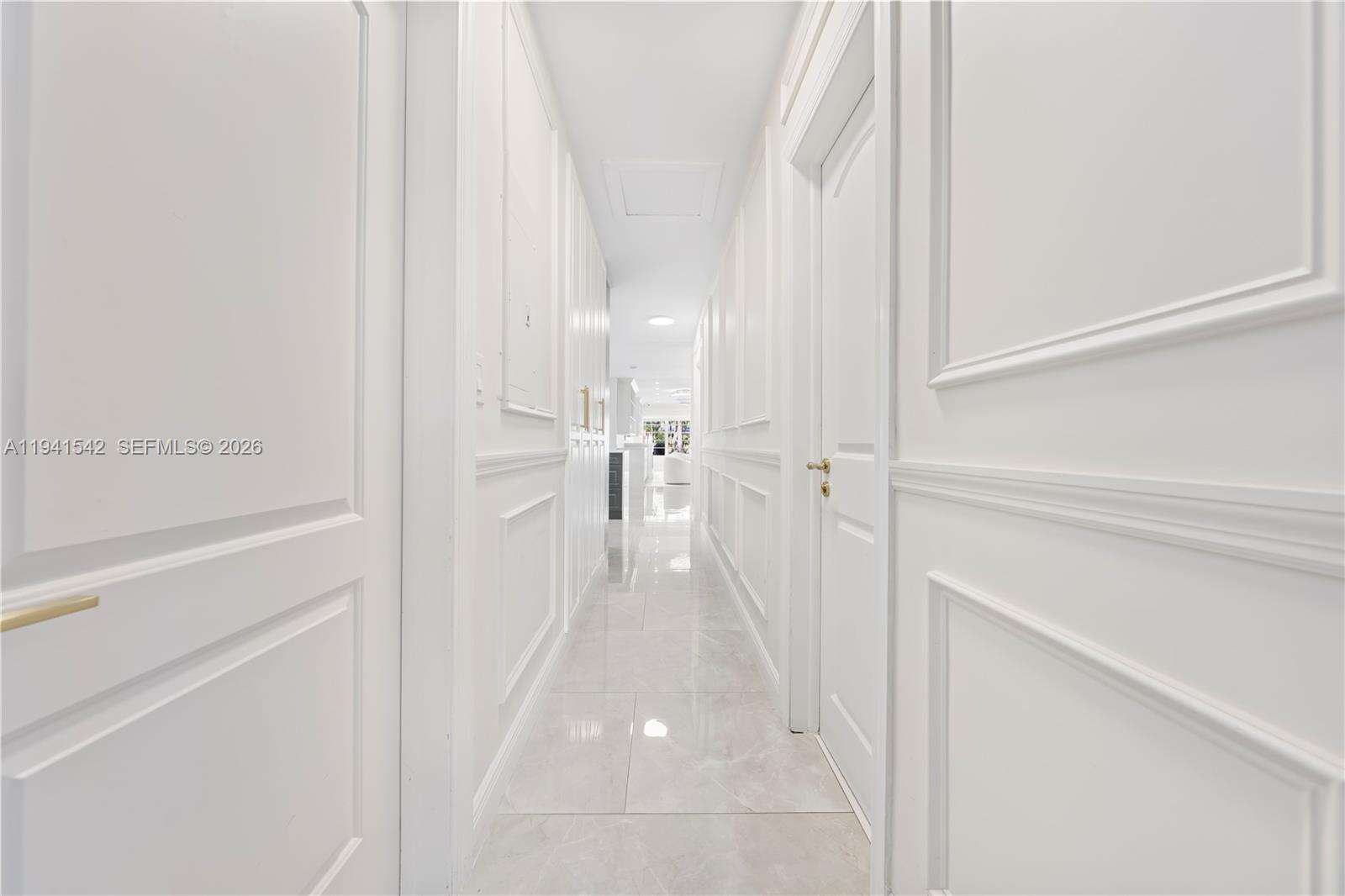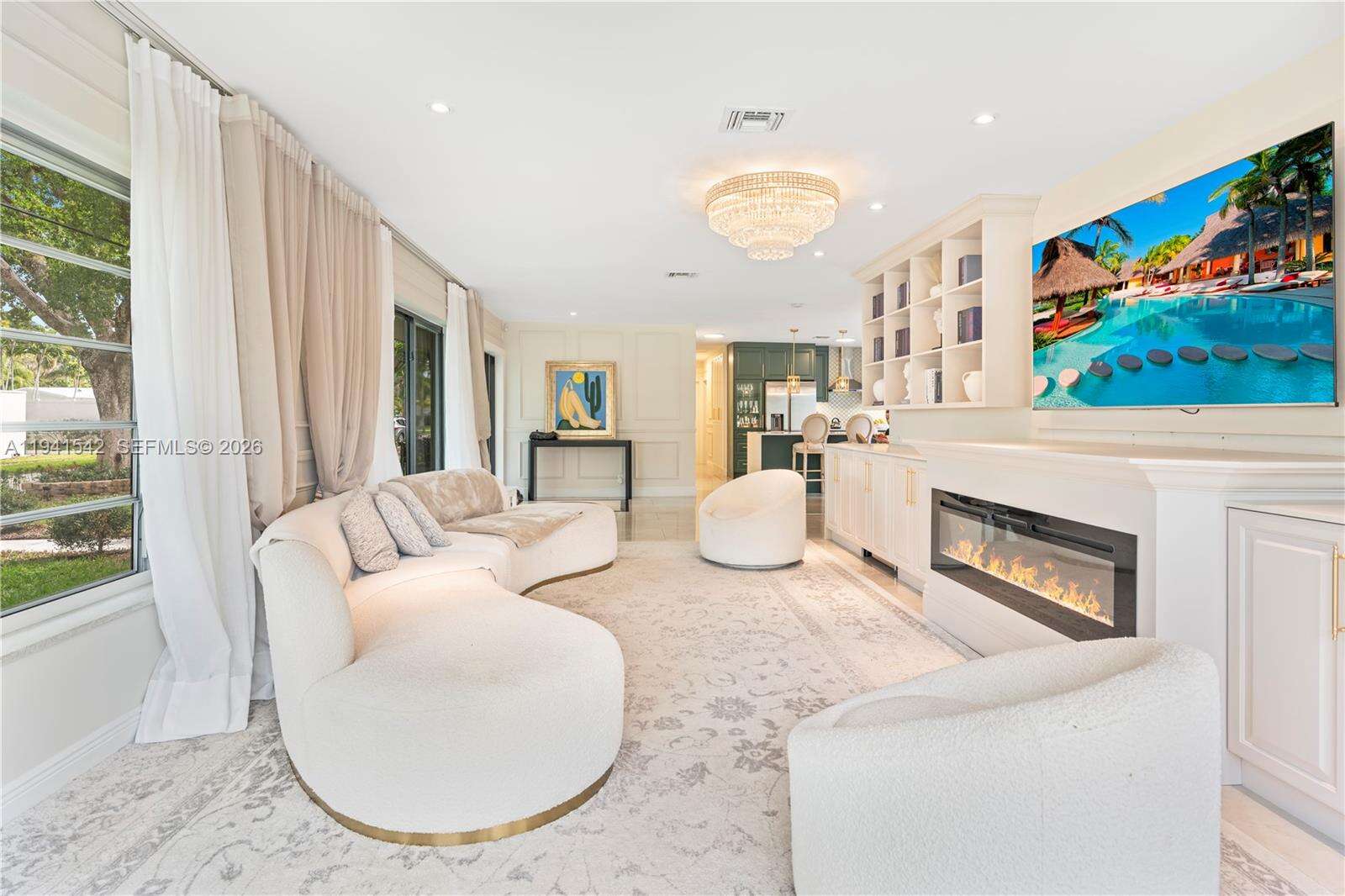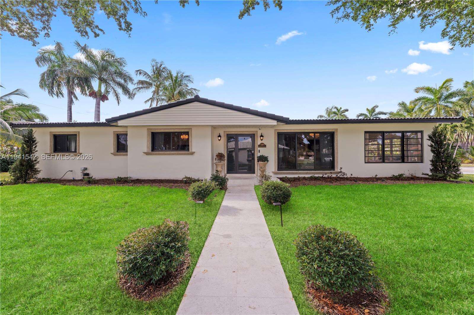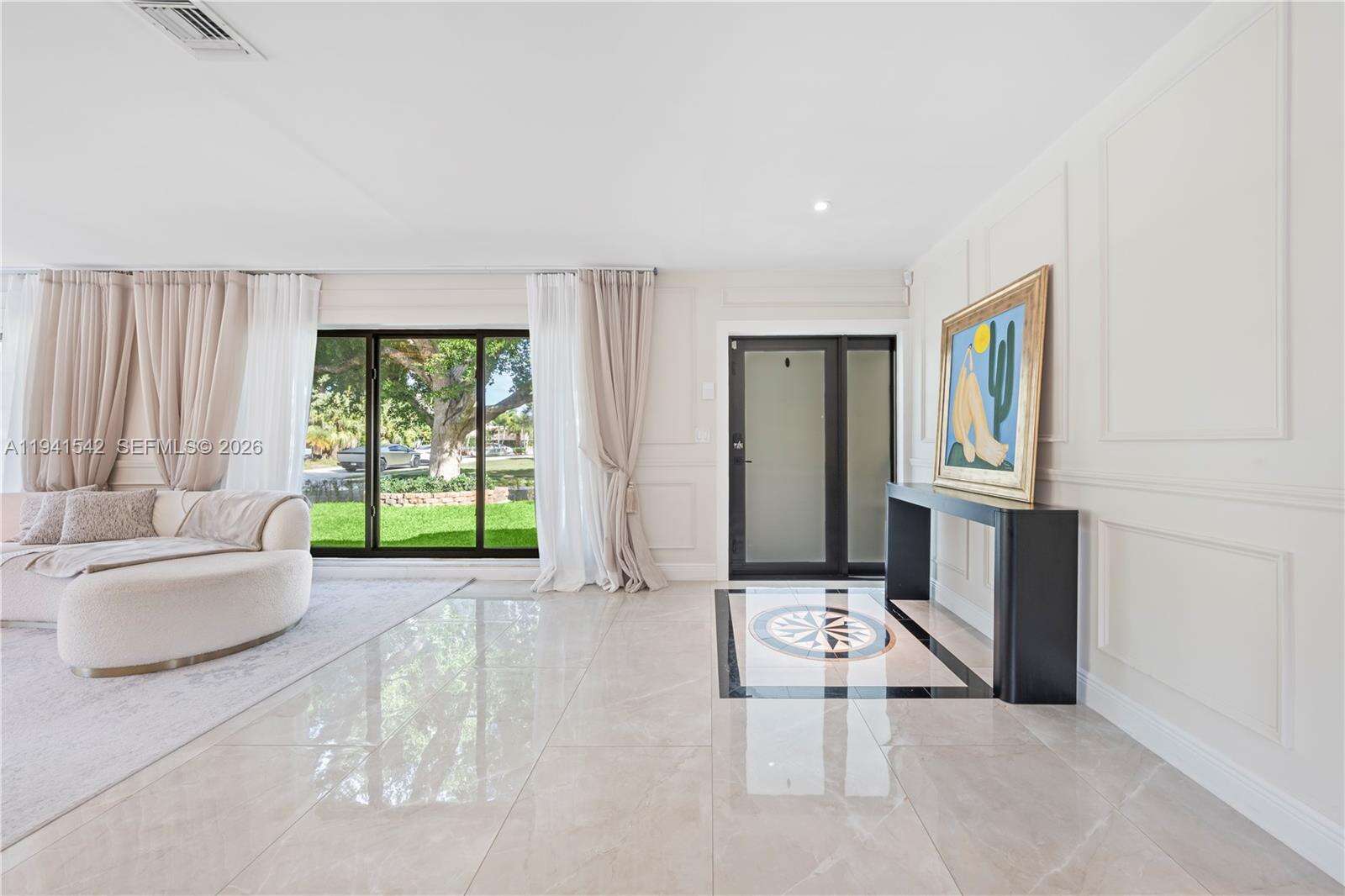 Located in Hollywood Lakes, one of Hollywood’s most sought-after and exclusive neighborhoods, this beautifully curated residence showcases refined craftsmanship, timeless design, and exceptional future potential. Designer-grade finishes include oversized polished porcelain flooring with natural stone veining, a striking decorative stone inlay at the entry, and custom millwork, wall paneling, and detailed trim throughout. The living area features custom built-in shelving, a sleek modern fireplace, and elegant lighting that enhances both warmth and sophistication. The kitchen offers custom furniture-style cabinetry, brushed brass hardware, a distinctive patterned tile backsplash, stainless steel appliances, and a sculptural hood. The sale includes preliminary architectural plans for a future expansion featuring additional living space, a second level, outdoor entertaining areas, and a pool concept. Plans are provided for buyer convenience; execution and permitting to be completed by purchaser if desired.