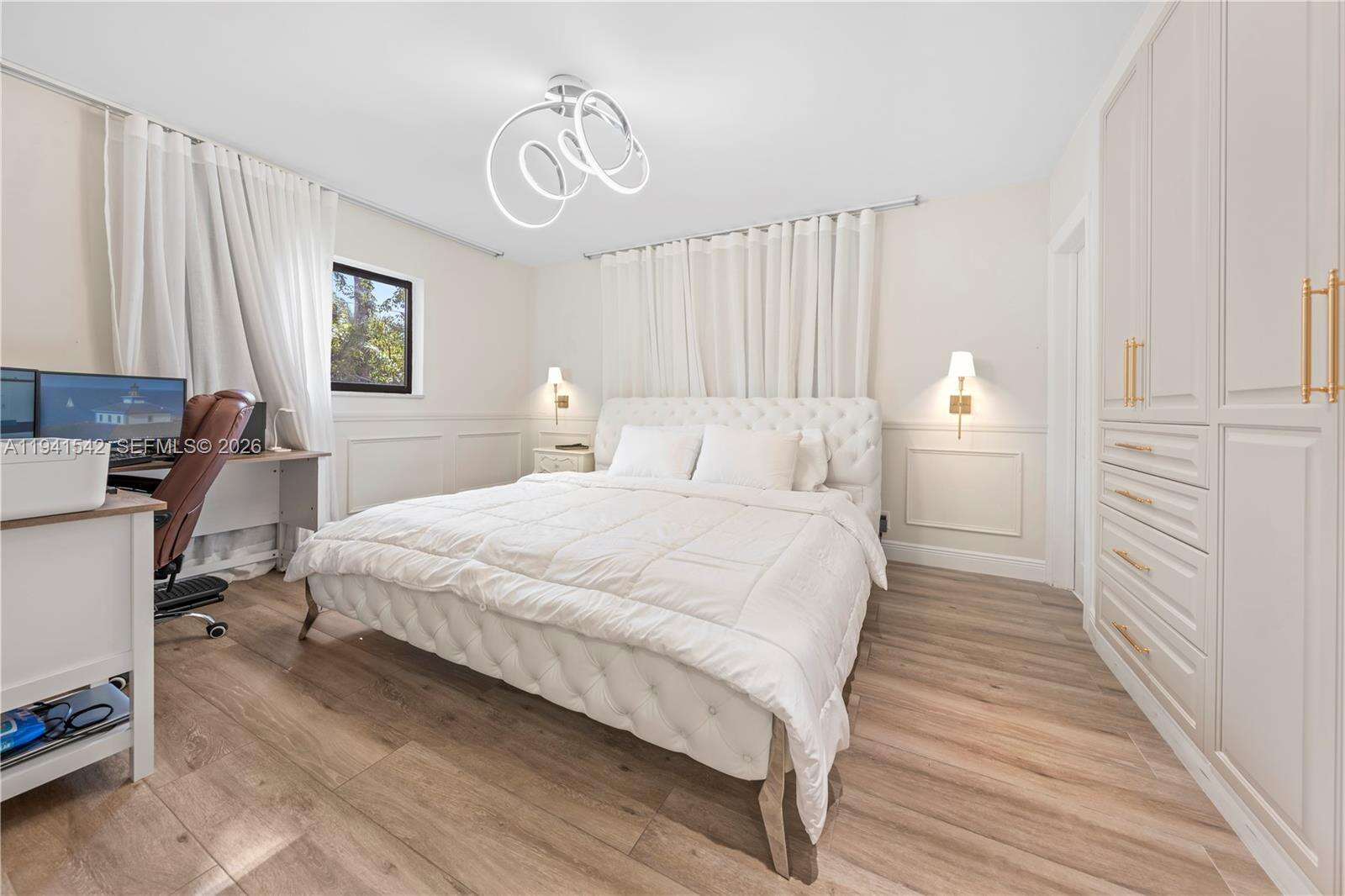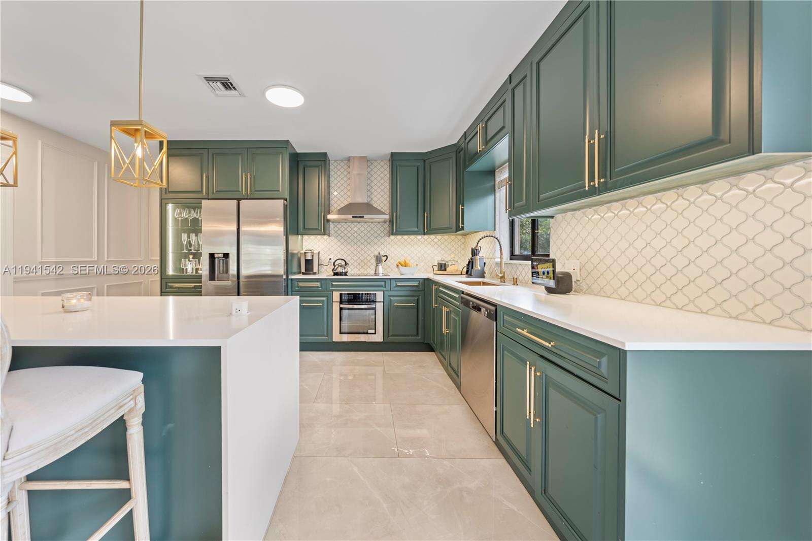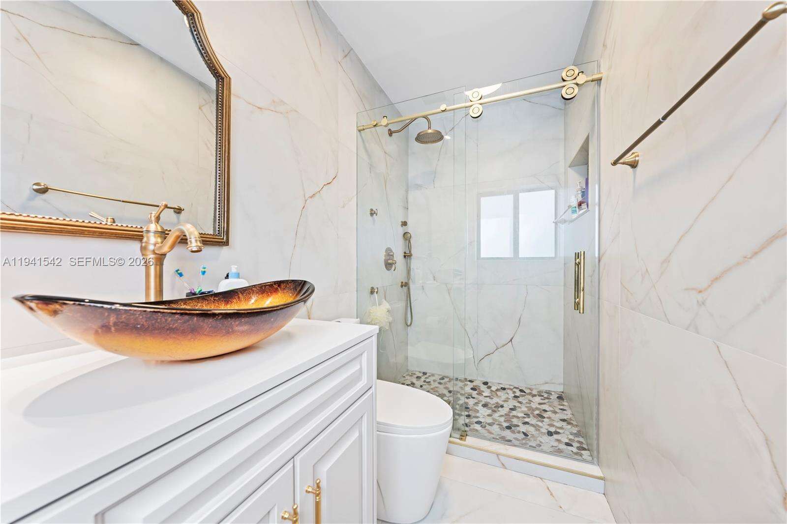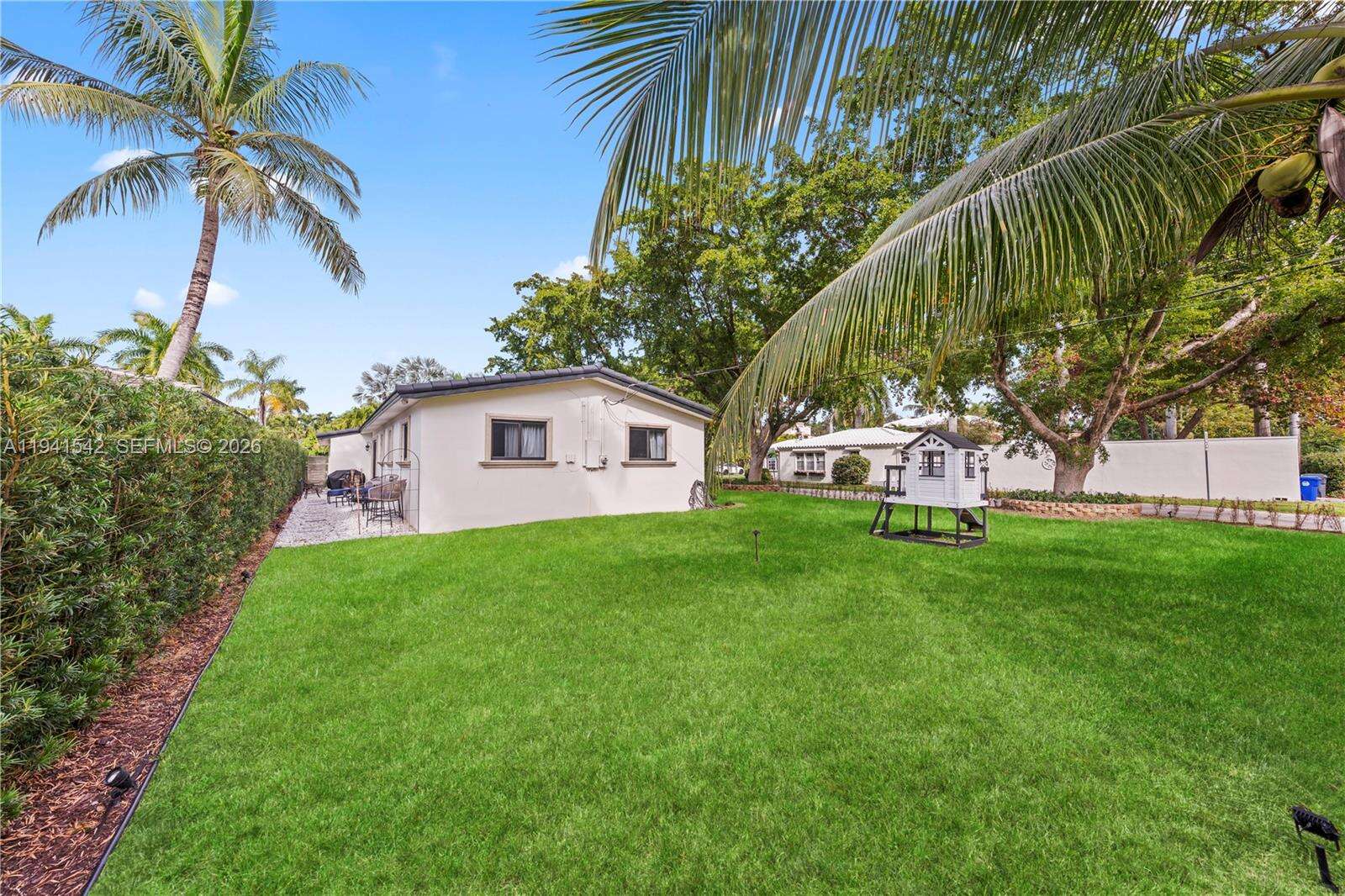 Located in Hollywood Lakes, one of Hollywood’s most sought-after and exclusive neighborhoods, this beautifully curated residence showcases refined craftsmanship, timeless design, and exceptional future potential. Designer-grade finishes include oversized polished porcelain flooring with natural stone veining, a striking decorative stone inlay at the entry, and custom millwork, wall paneling, and detailed trim throughout. The living area features custom built-in shelving, a sleek modern fireplace, and elegant lighting that enhances both warmth and sophistication. The kitchen offers custom furniture-style cabinetry, brushed brass hardware, a distinctive patterned tile backsplash, stainless steel appliances, and a sculptural hood. The sale includes preliminary architectural plans for a future expansion featuring additional living space, a second level, outdoor entertaining areas, and a pool concept. Plans are provided for buyer convenience; execution and permitting to be completed by purchaser if desired.