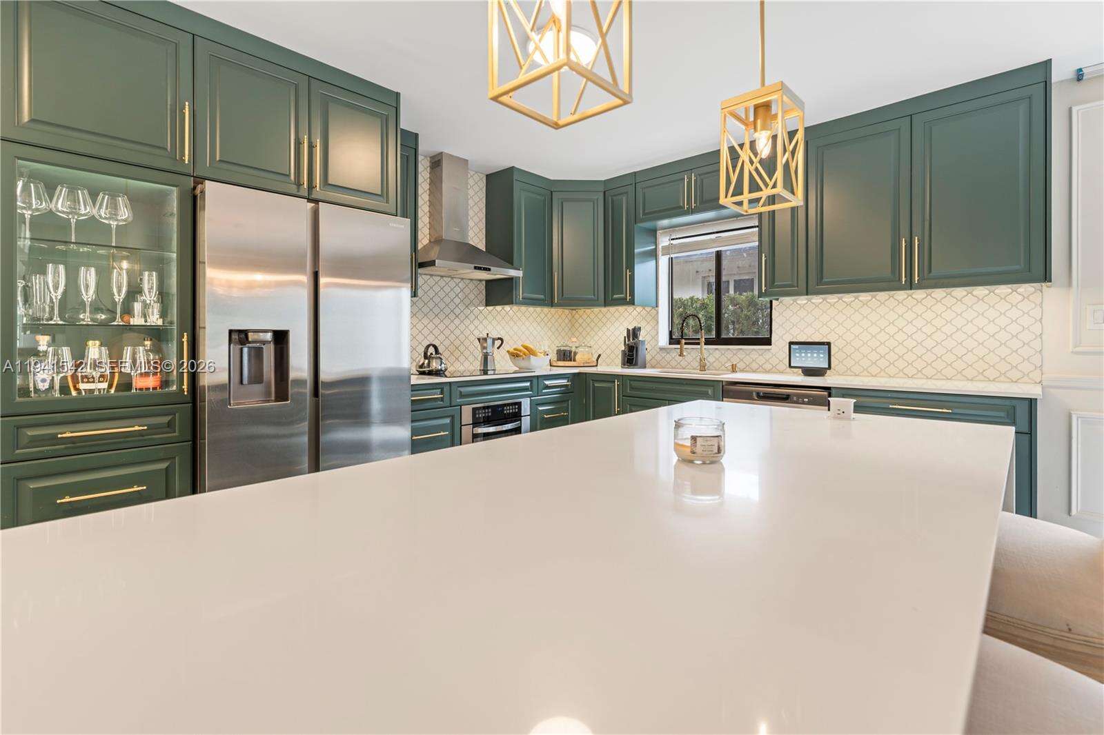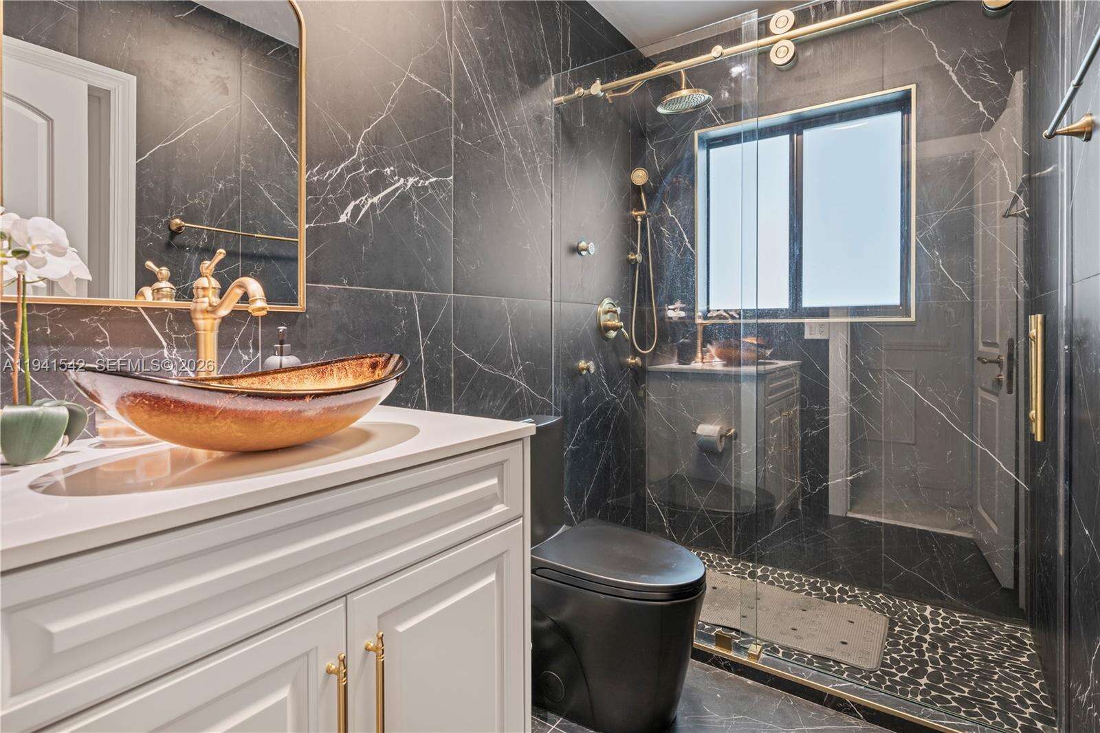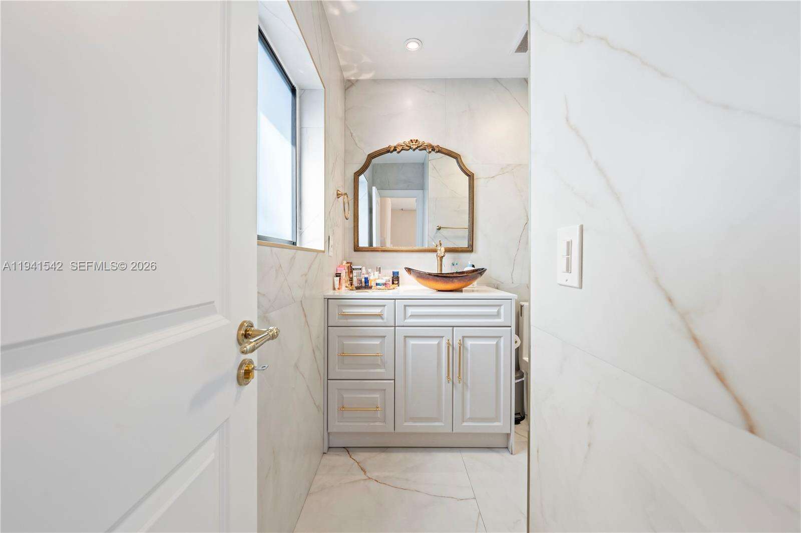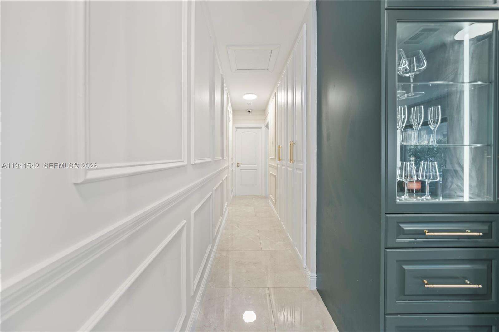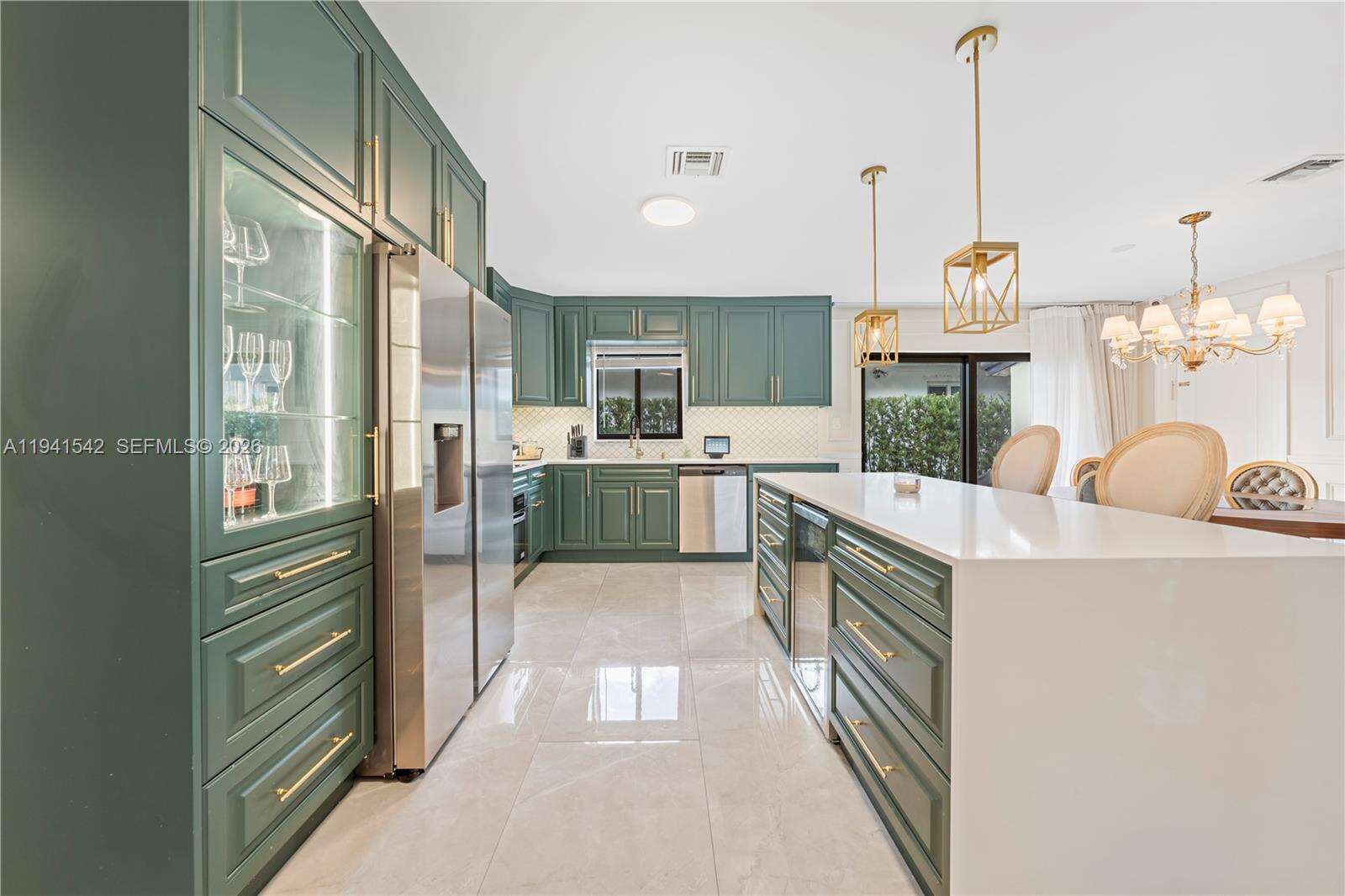 Located in Hollywood Lakes, one of Hollywood’s most sought-after and exclusive neighborhoods, this beautifully curated residence showcases refined craftsmanship, timeless design, and exceptional future potential. Designer-grade finishes include oversized polished porcelain flooring with natural stone veining, a striking decorative stone inlay at the entry, and custom millwork, wall paneling, and detailed trim throughout. The living area features custom built-in shelving, a sleek modern fireplace, and elegant lighting that enhances both warmth and sophistication. The kitchen offers custom furniture-style cabinetry, brushed brass hardware, a distinctive patterned tile backsplash, stainless steel appliances, and a sculptural hood. The sale includes preliminary architectural plans for a future expansion featuring additional living space, a second level, outdoor entertaining areas, and a pool concept. Plans are provided for buyer convenience; execution and permitting to be completed by purchaser if desired.